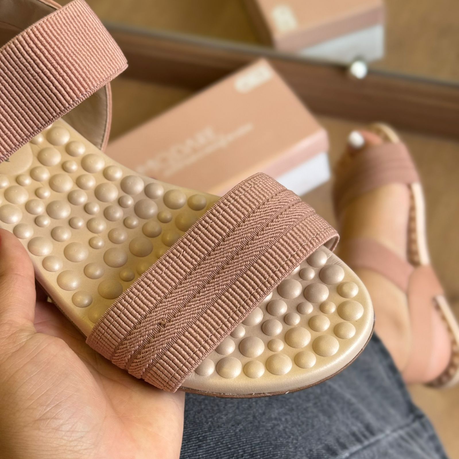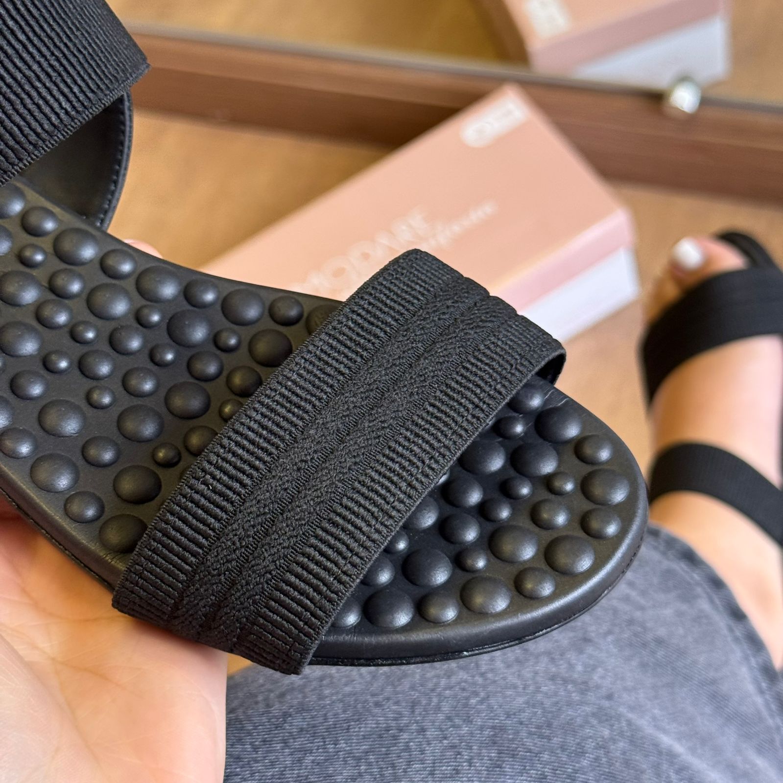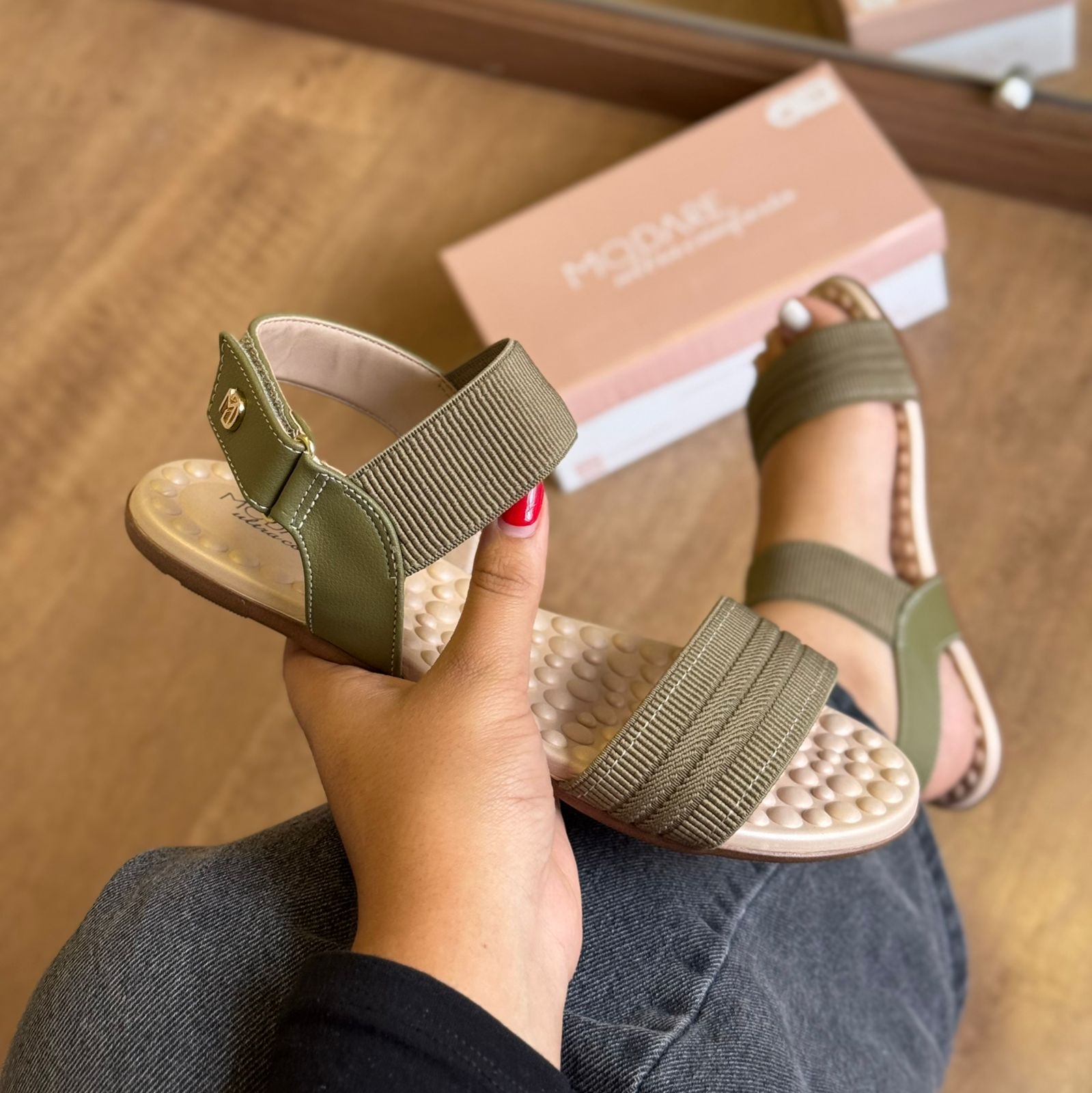 A Sandália Modare Pontos de Conforto Detalhe Marca Logo combina design moderno com tecnologias pensadas para o cuidado dos pés. Seu cabedal em material sintético macio proporciona ajuste confortável e delicado, enquanto o detalhe com o logo da marca agrega um toque sofisticado ao visual.