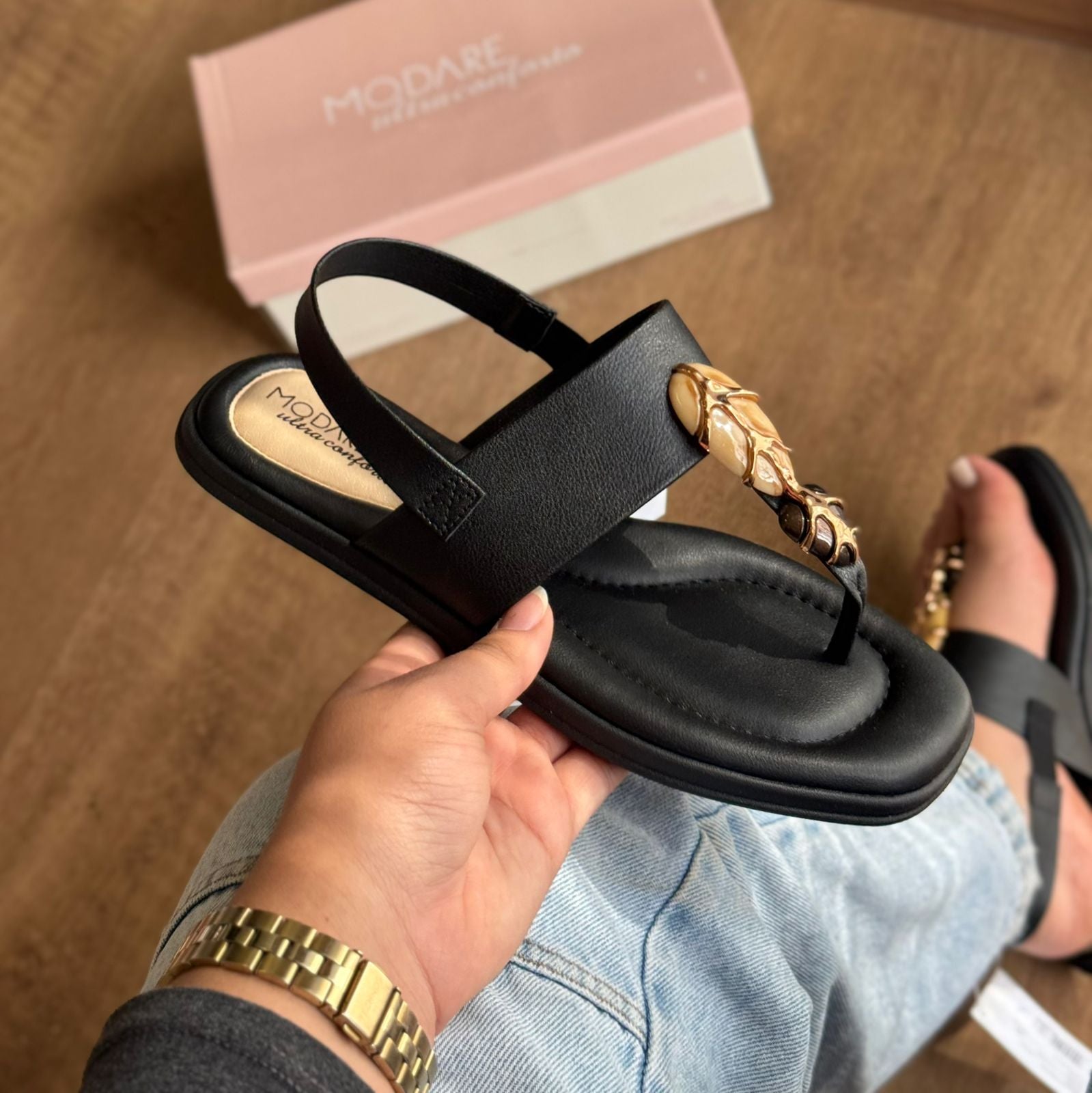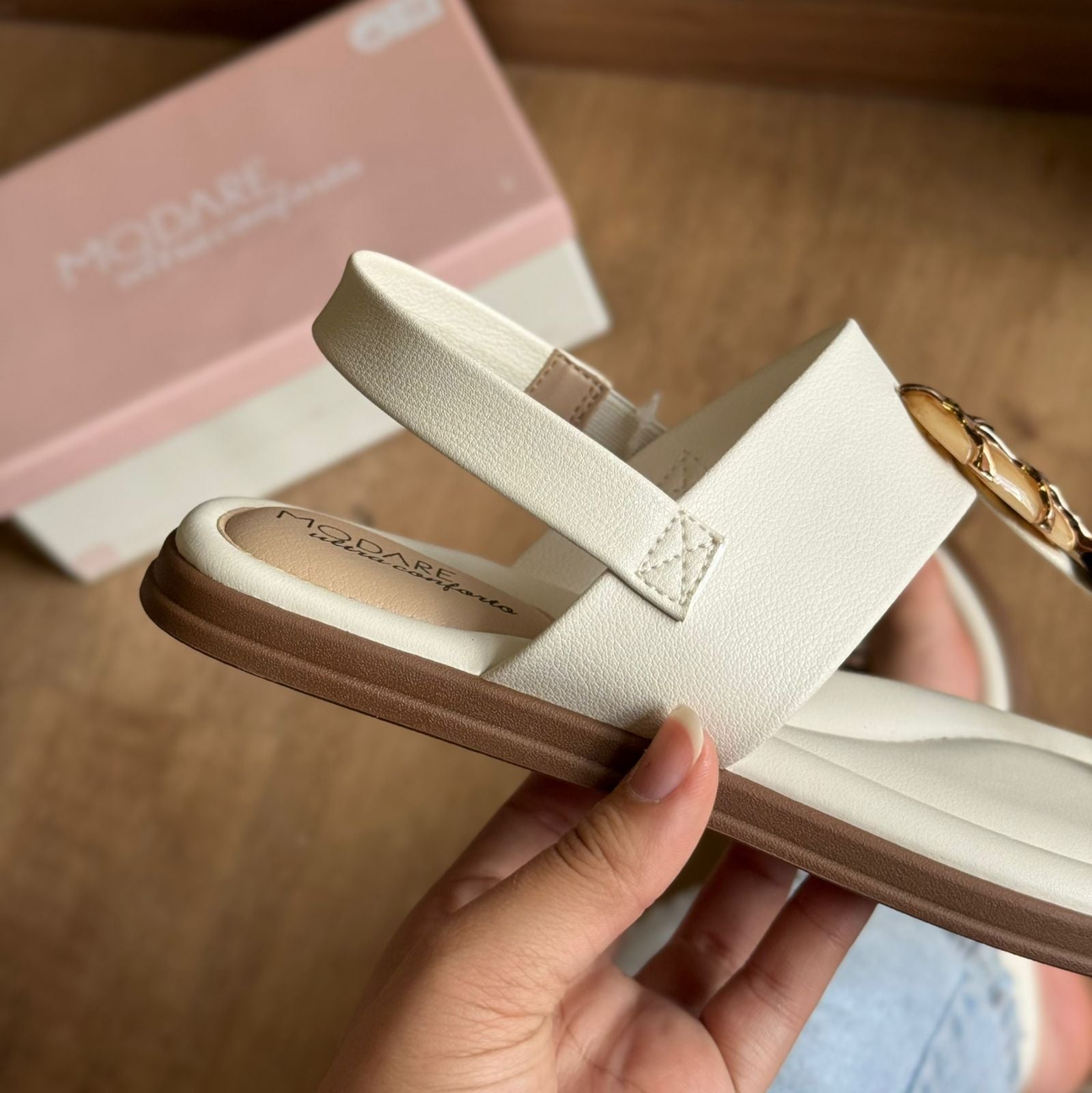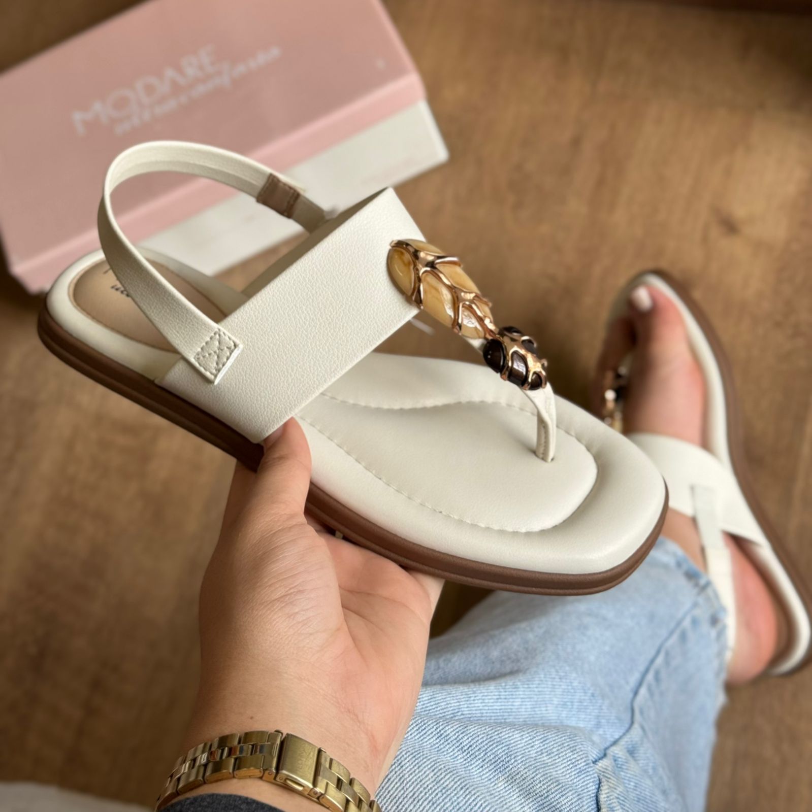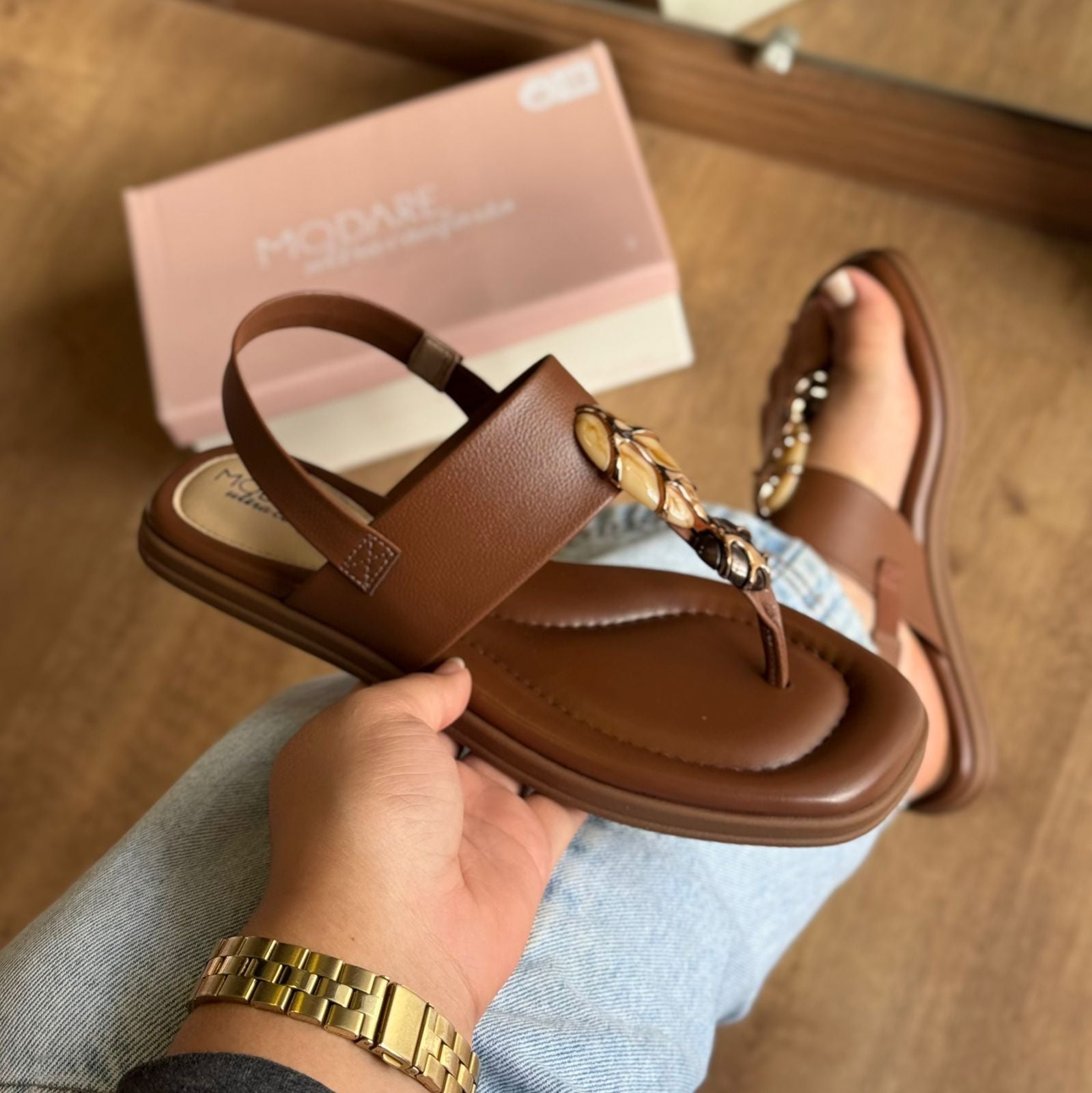 Sandália rasteira Modare que combina conforto e elegância com detalhes em pedrarias. Desenvolvida com tecnologia de amortecimento, oferece suporte adequado para o uso prolongado. O design sofisticado com aplicações de pedrarias torna este modelo versátil para diferentes ocasiões, desde passeios casuais até eventos mais refinados. Ideal para quem busca qualidade e estilo em um único produto.