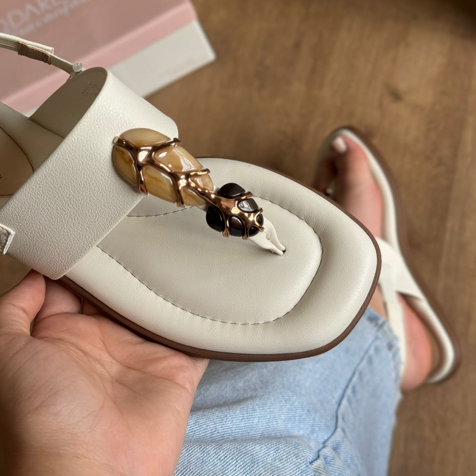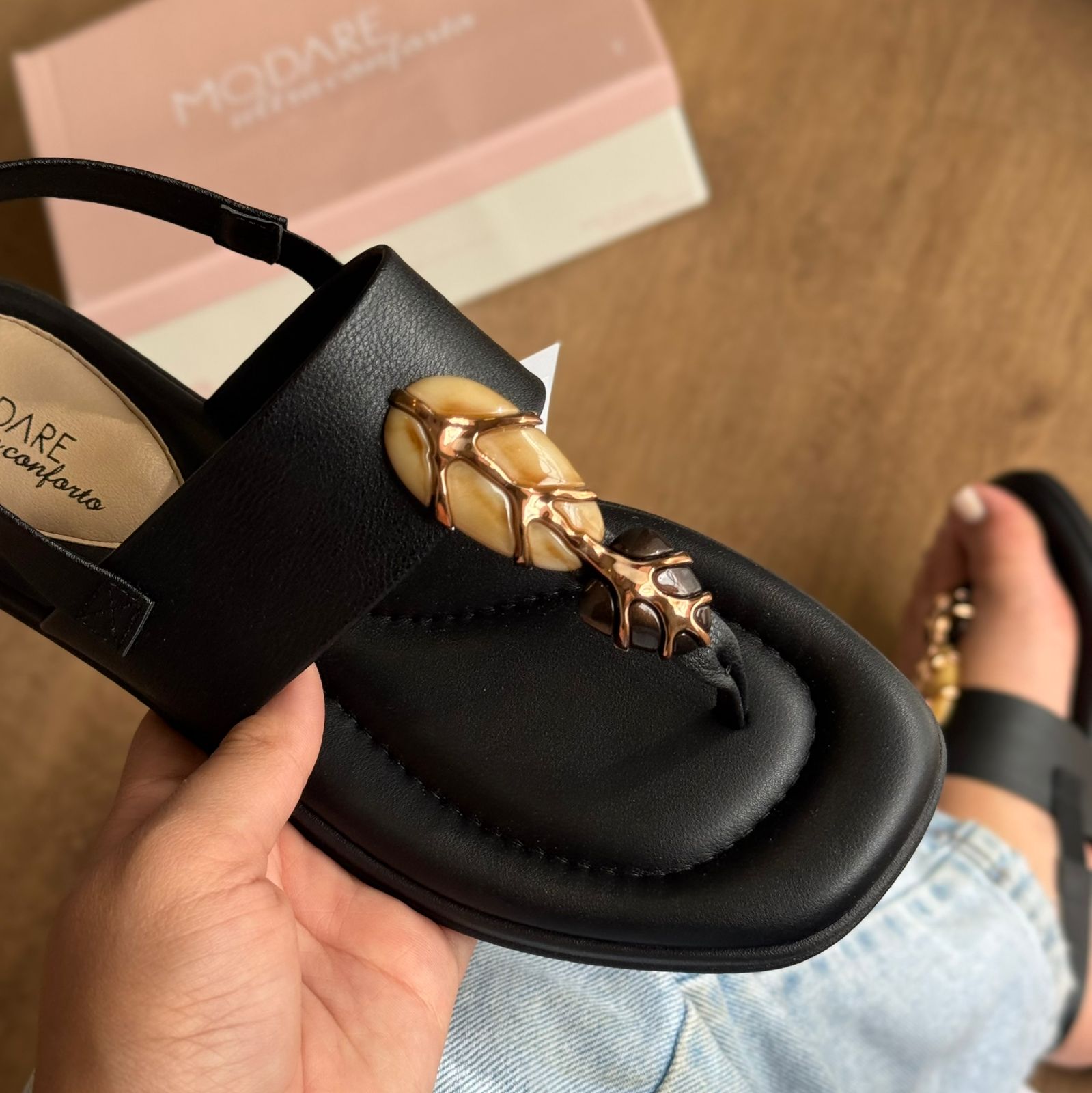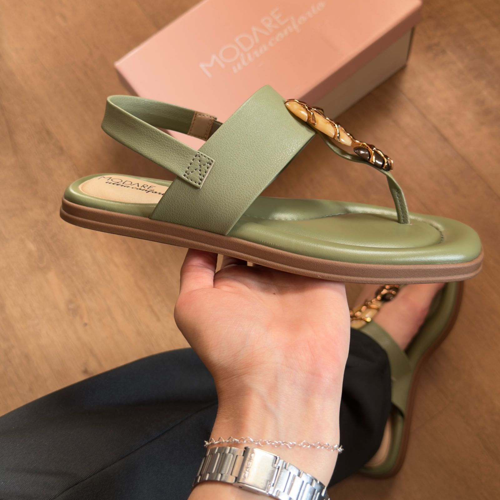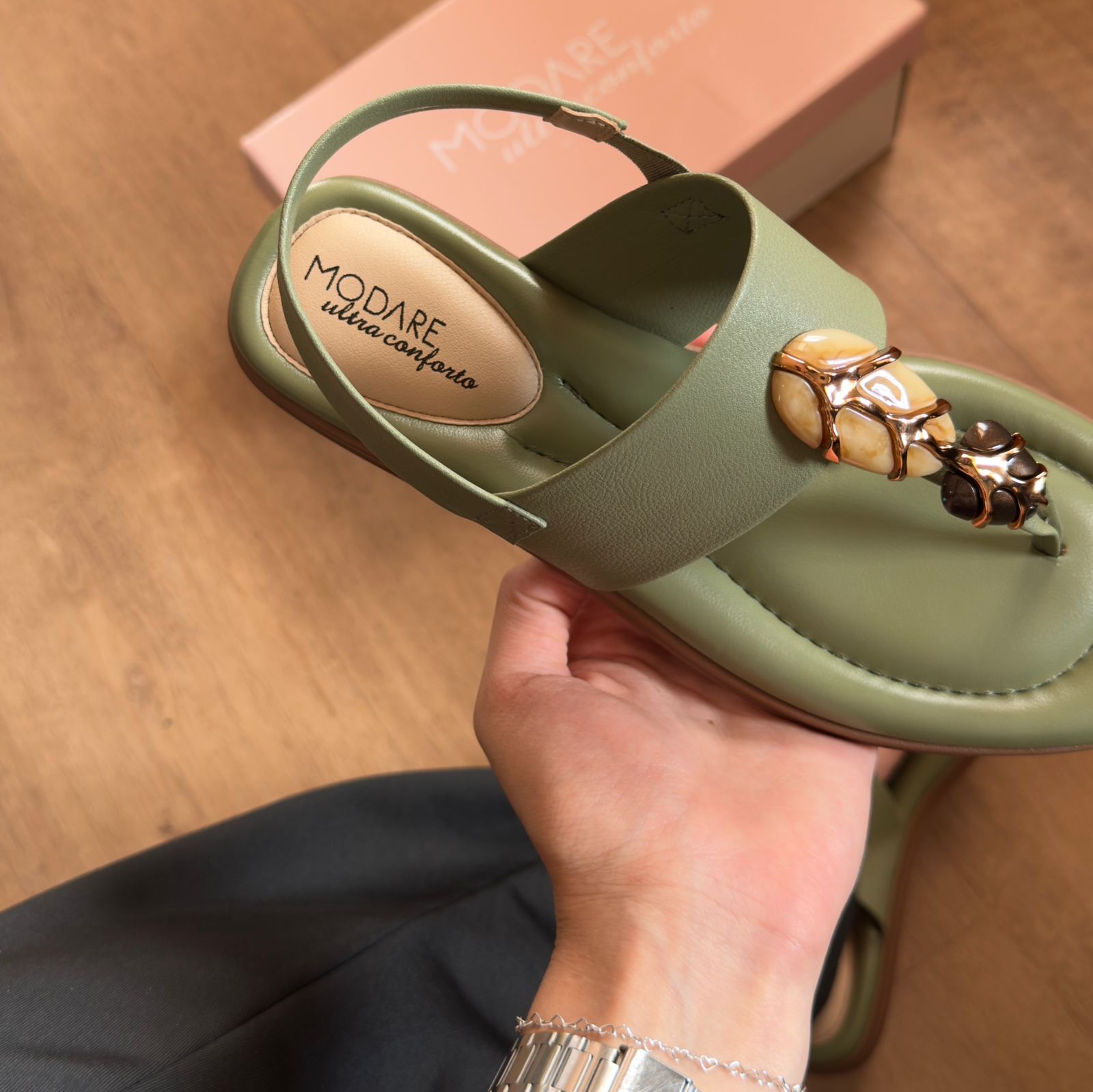 Sandália rasteira Modare que combina conforto e elegância com detalhes em pedrarias. Desenvolvida com tecnologia de amortecimento, oferece suporte adequado para o uso prolongado. O design sofisticado com aplicações de pedrarias torna este modelo versátil para diferentes ocasiões, desde passeios casuais até eventos mais refinados. Ideal para quem busca qualidade e estilo em um único produto.