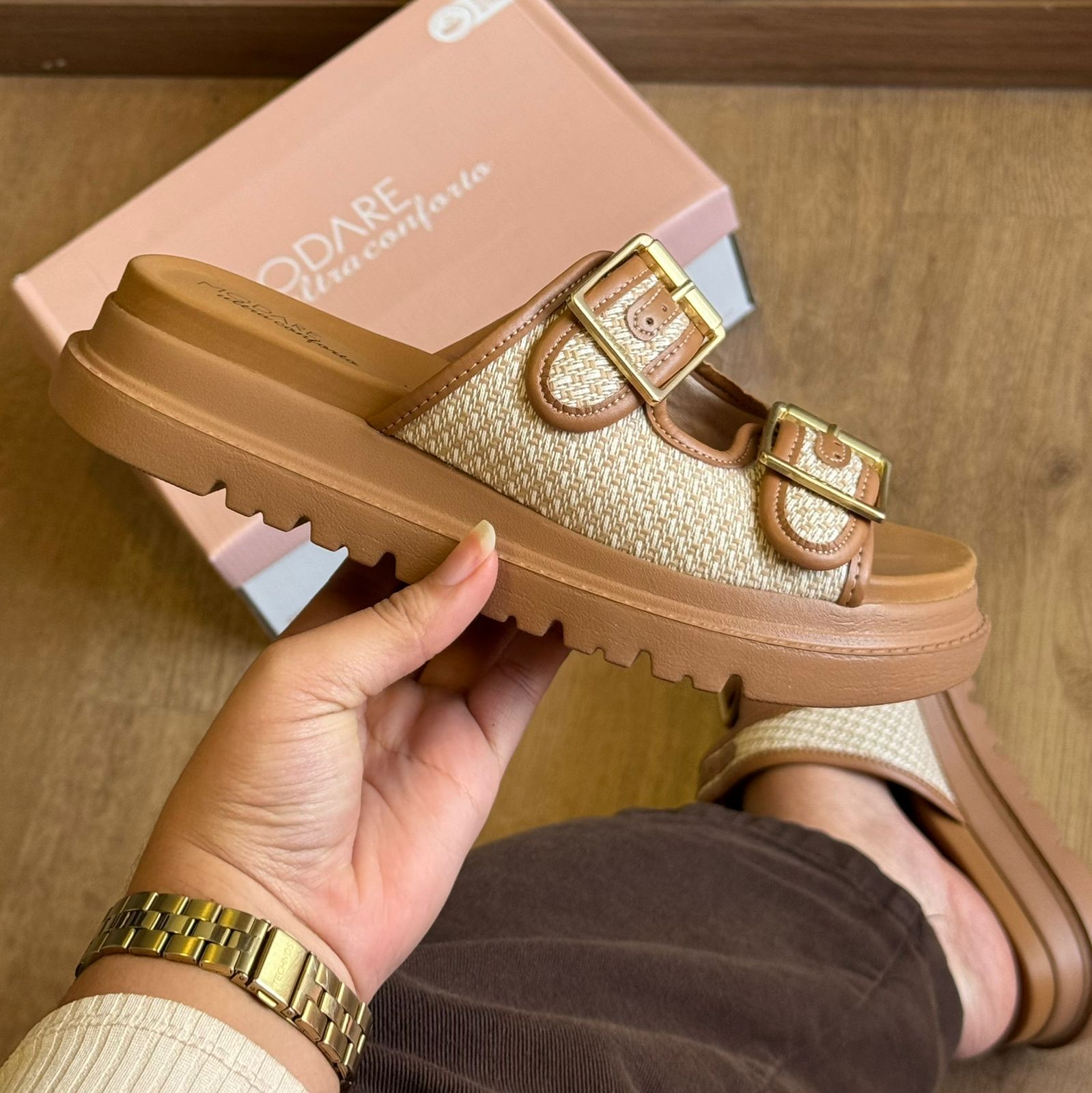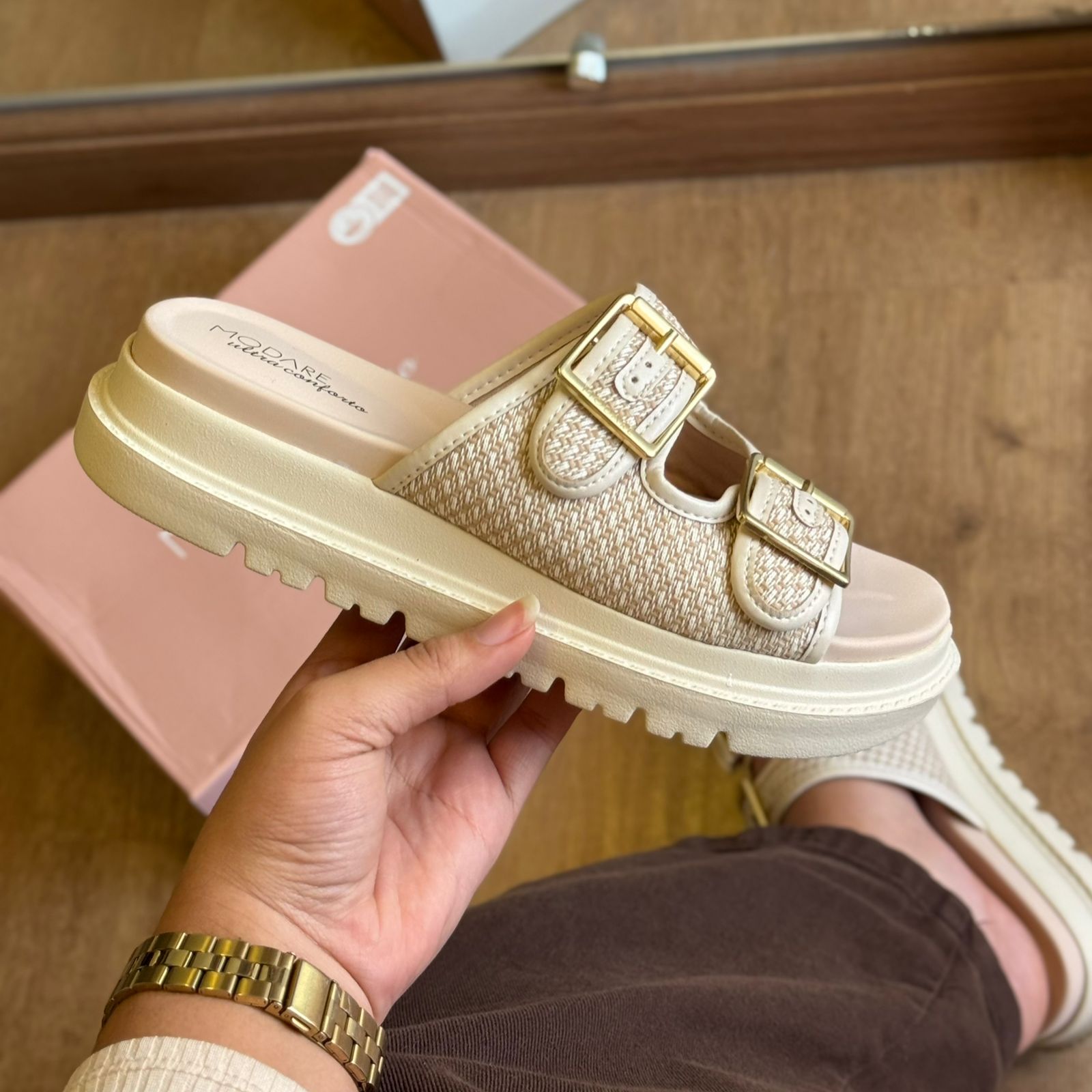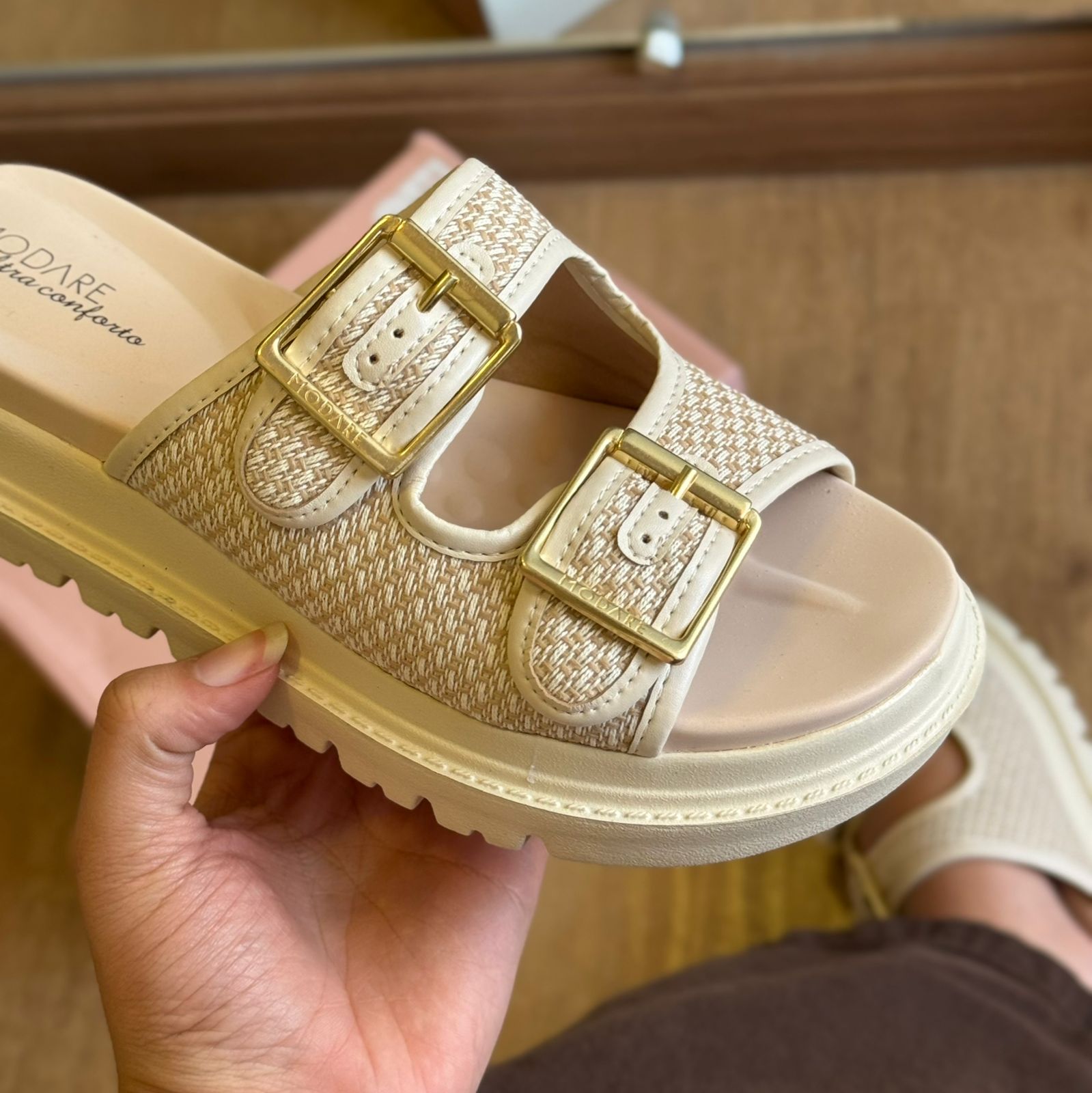 Conforto, estilo e charme artesanal definem a Sandália Modare Tiras de Crochê 7200.104. Com um design moderno e acolhedor, ela traz tiras com textura que remete ao crochê, além de fivelas douradas ajustáveis que garantem firmeza e sofisticação. O solado tratorado proporciona estabilidade, enquanto a palmilha com tecnologia de conforto da Modare oferece suavidade ao caminhar. Ideal para quem busca leveza e elegância nos momentos de lazer ou no dia a dia.