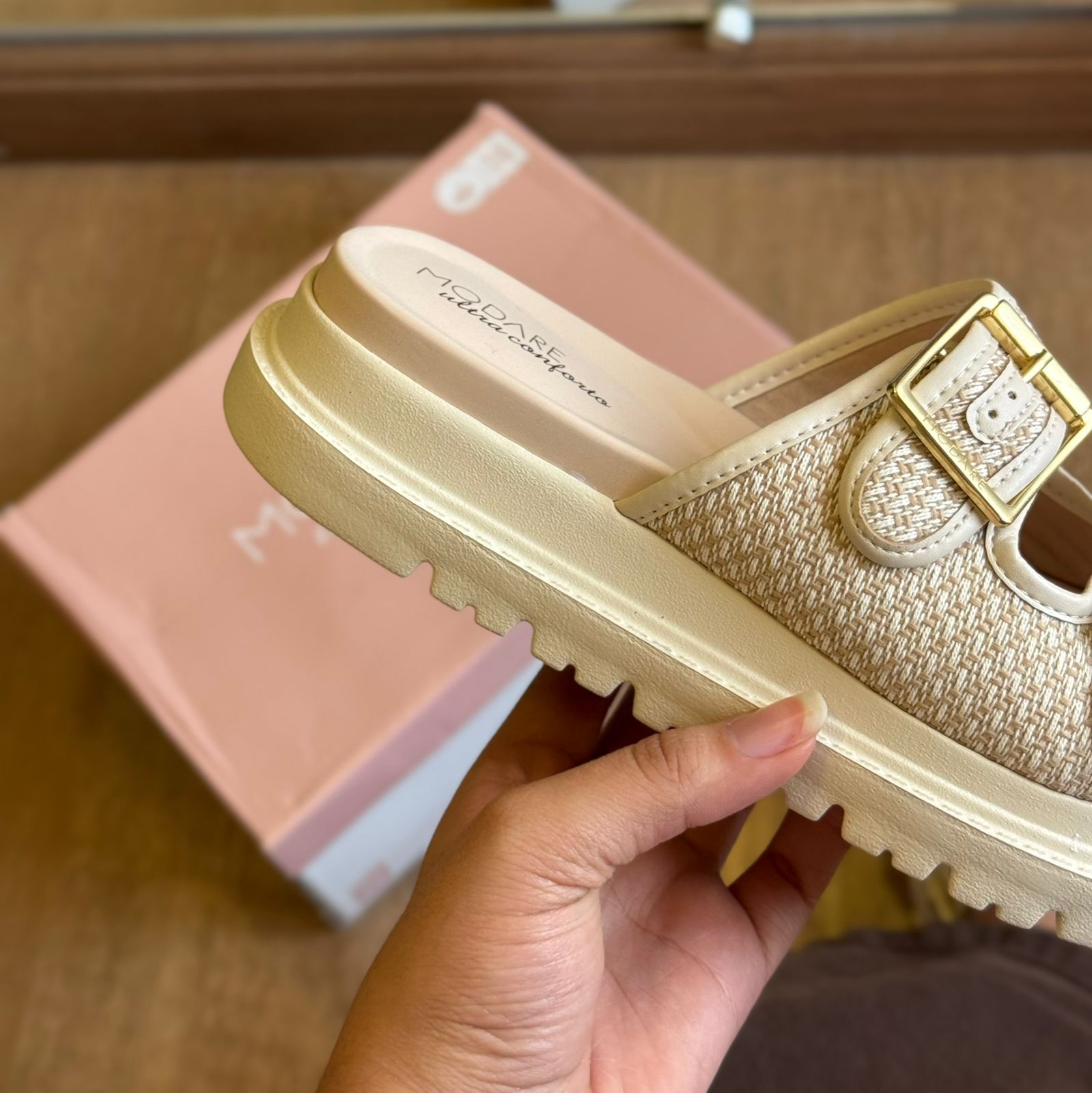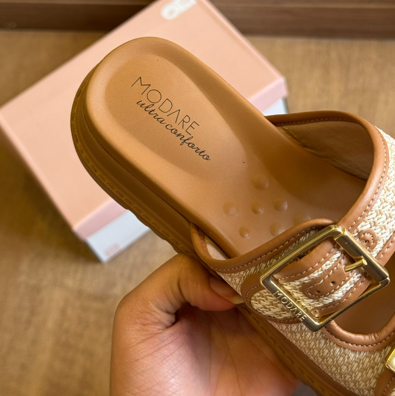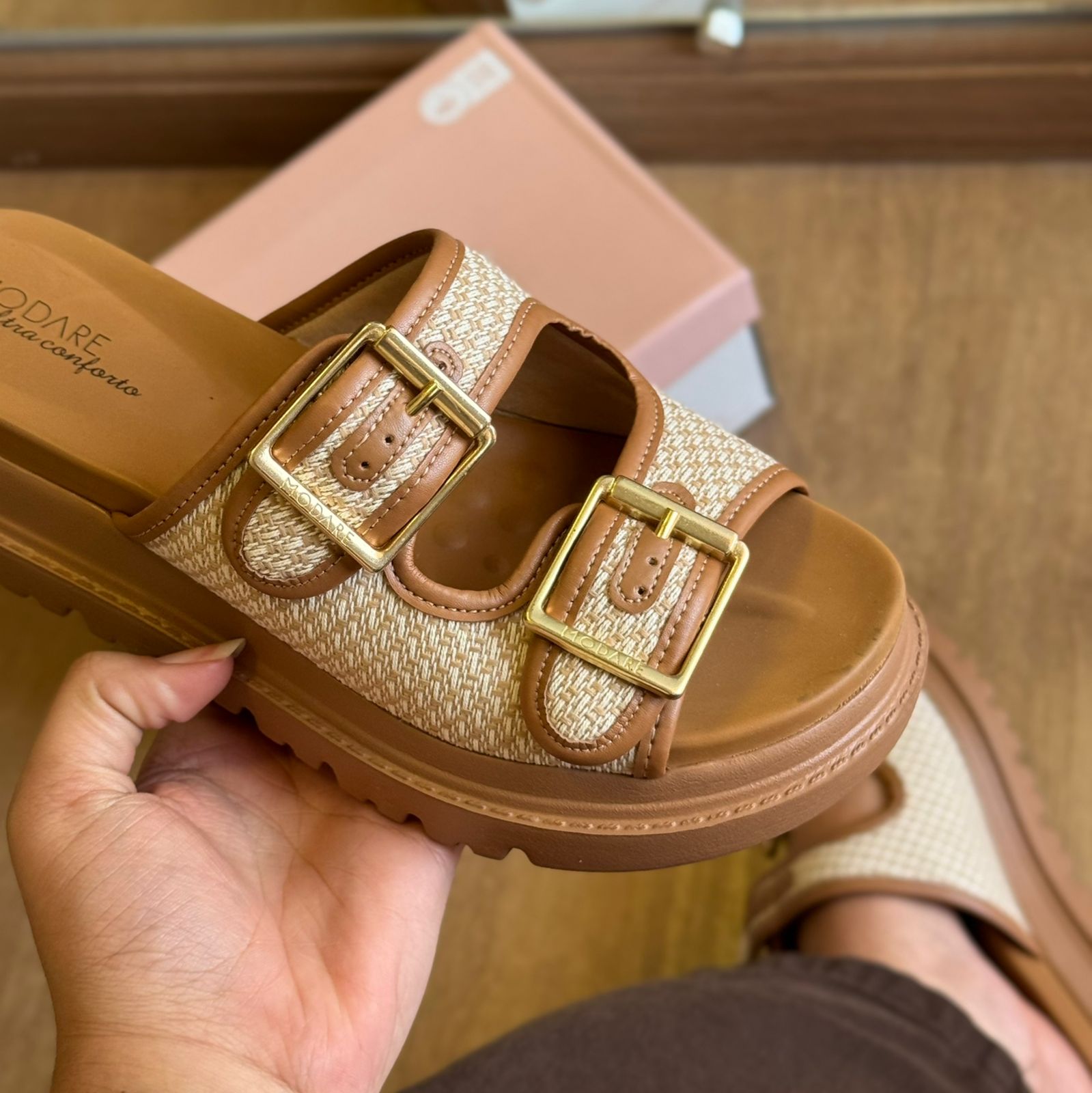 Conforto, estilo e charme artesanal definem a Sandália Modare Tiras de Crochê 7200.104. Com um design moderno e acolhedor, ela traz tiras com textura que remete ao crochê, além de fivelas douradas ajustáveis que garantem firmeza e sofisticação. O solado tratorado proporciona estabilidade, enquanto a palmilha com tecnologia de conforto da Modare oferece suavidade ao caminhar. Ideal para quem busca leveza e elegância nos momentos de lazer ou no dia a dia.