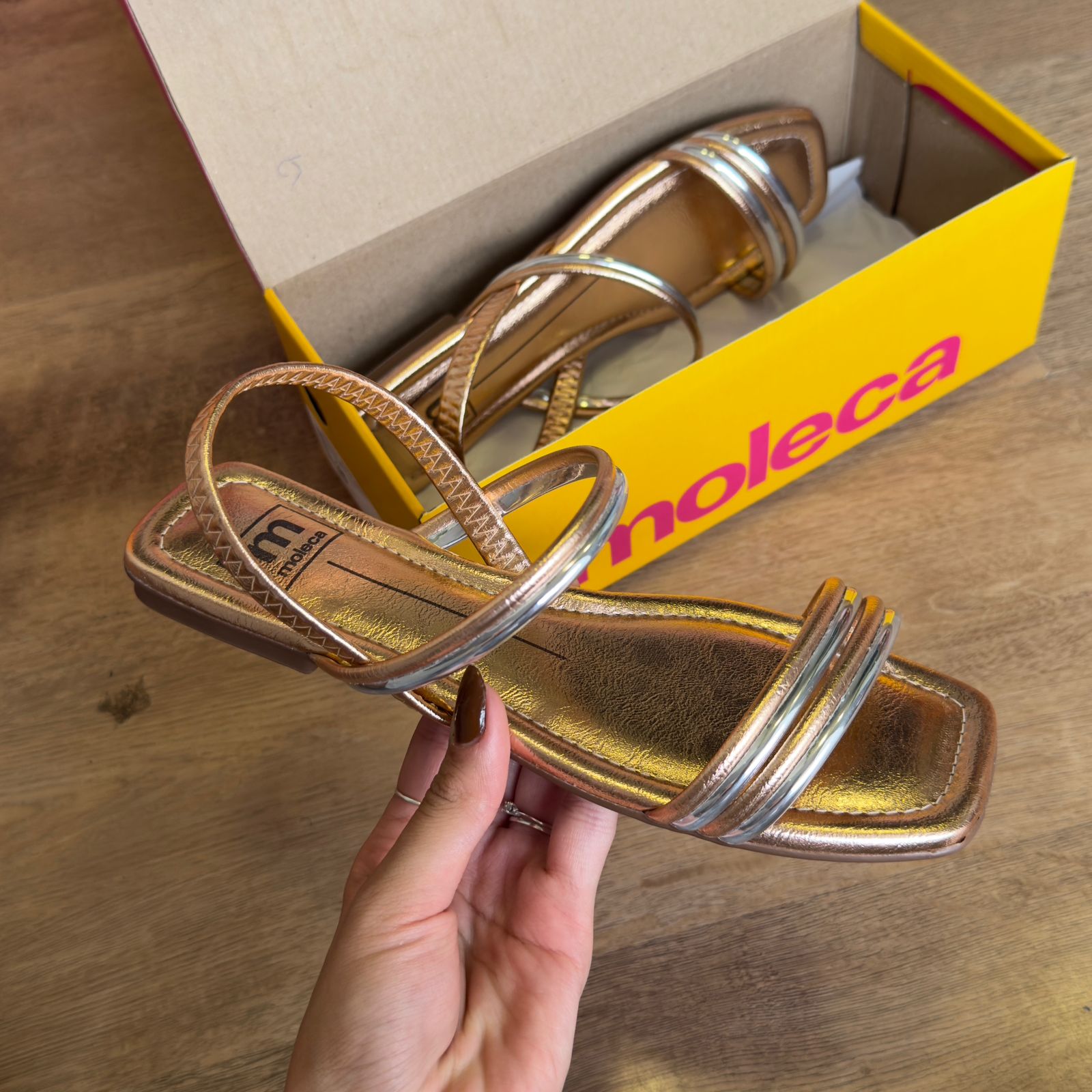 Descubra o conforto de caminhar com a Sandália Moleca. Com seu design elegante e exclusivo, esta sandália possui materiais de alta qualidade e um acabamento impecável. Desfrute de uma experiência luxuosa e sofisticada ao andar com esta peça que combina perfeitamente com qualquer look.