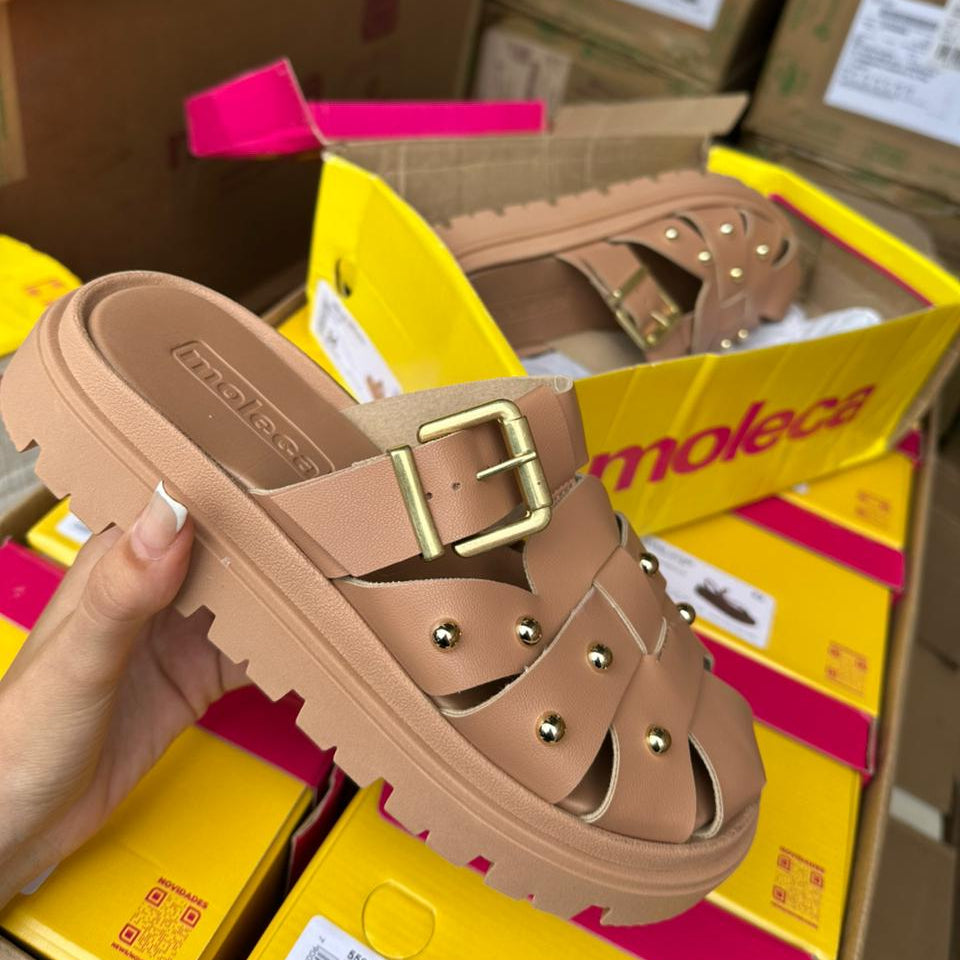 A Sandália Moleca Casual 5504.118 combina conforto e praticidade com seu design de calcanhar aberto e fivela regulável, garantindo ajuste personalizado e ventilação ideal. Ideal para uso diário, proporciona leveza e facilidade ao caminhar, perfeito para quem busca aliara estilo e funcionalidade em uma sandália versátil.
