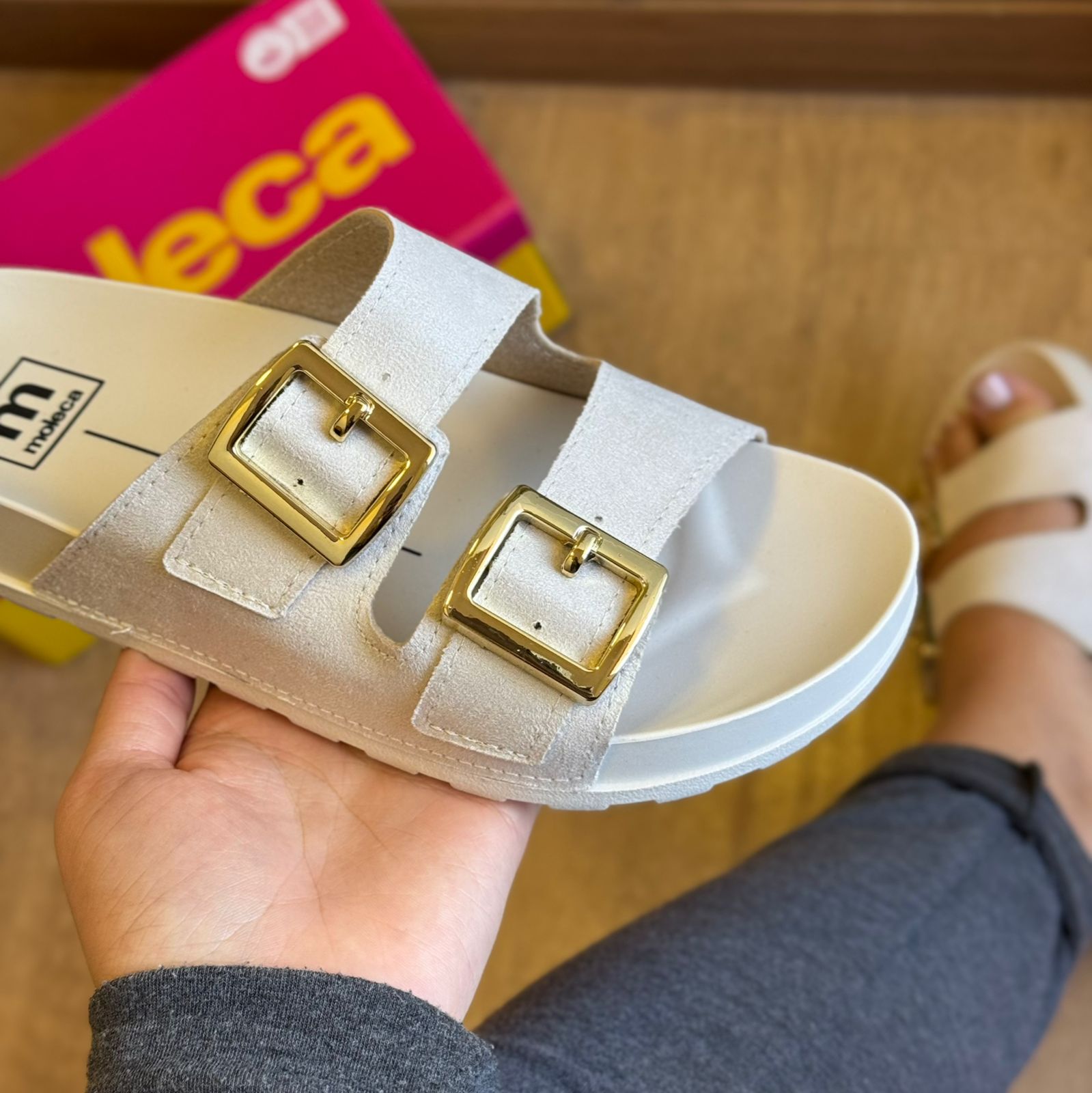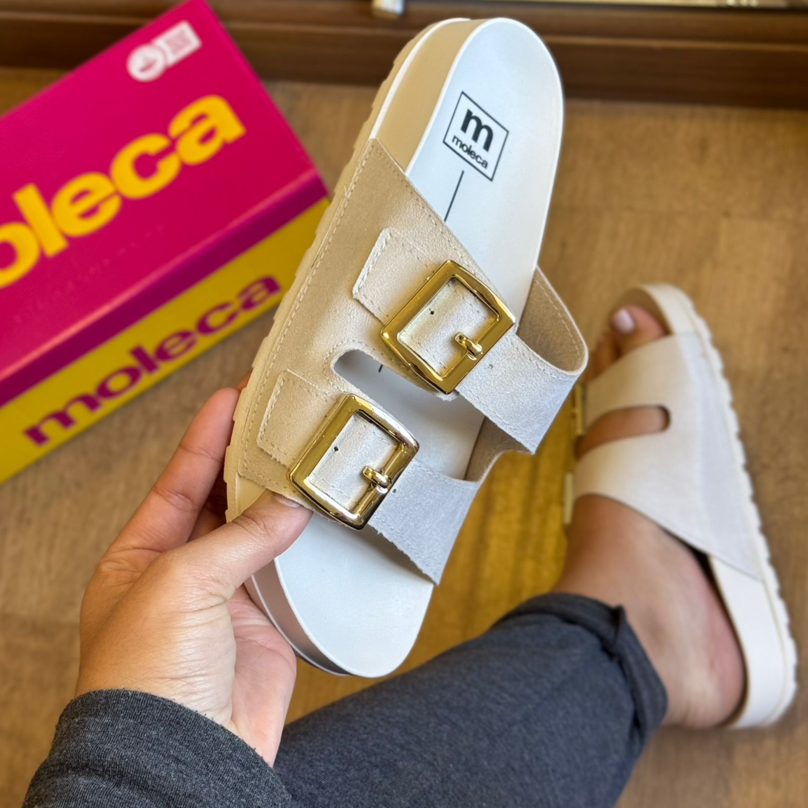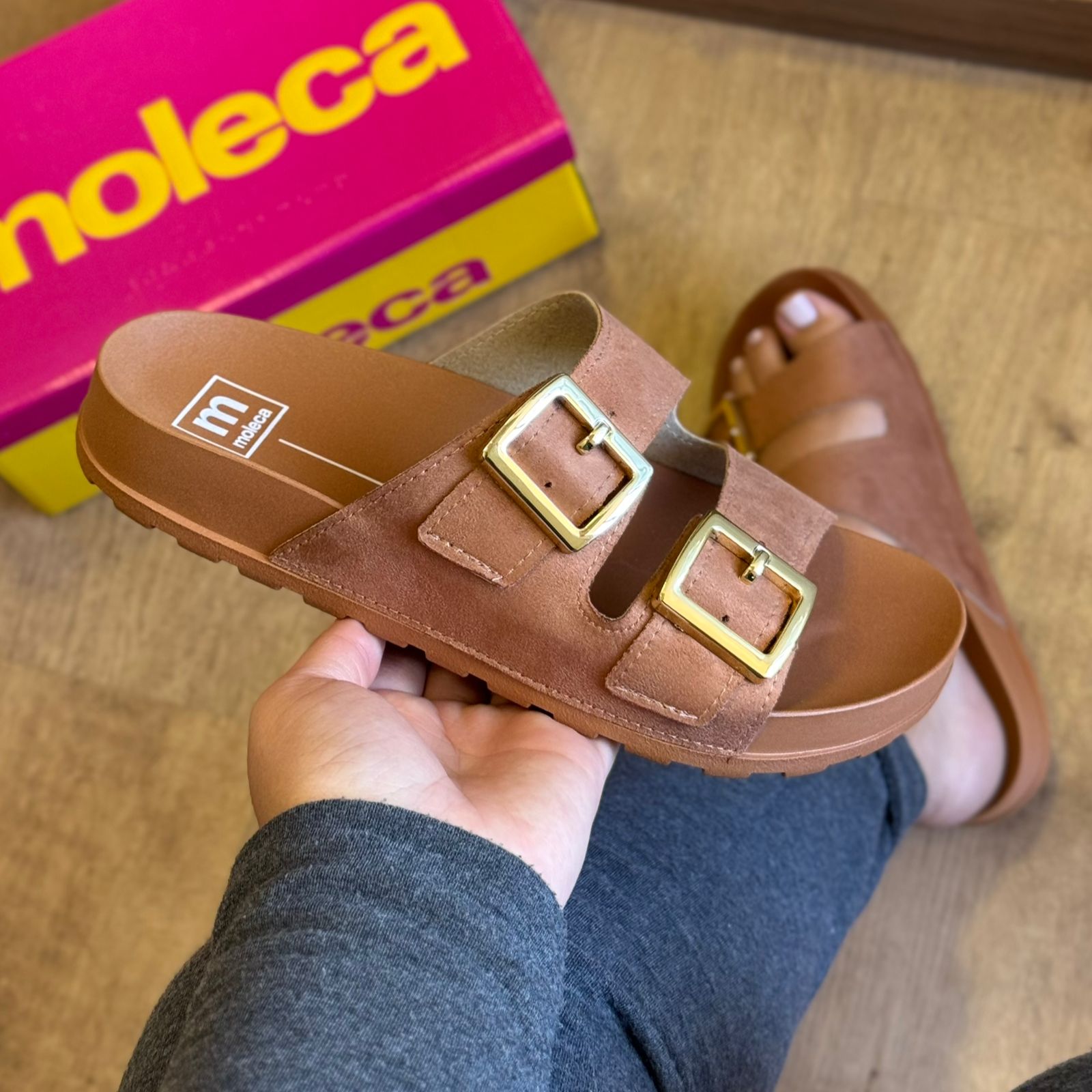 A Sandália Moleca 5436.401.5881 traz o equilíbrio perfeito entre conforto e estilo para os dias mais leves. Com design casual e moderno, conta com duas tiras em camurça sintética e fivelas douradas ajustáveis, que garantem charme e praticidade. A palmilha macia e o solado emborrachado oferecem bem-estar durante o uso. Ideal para compor looks despojados com um toque fashion no cotidiano.