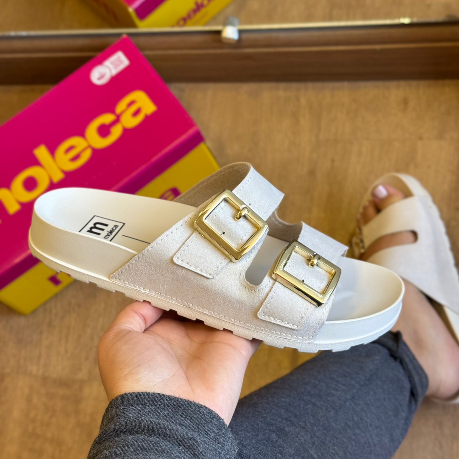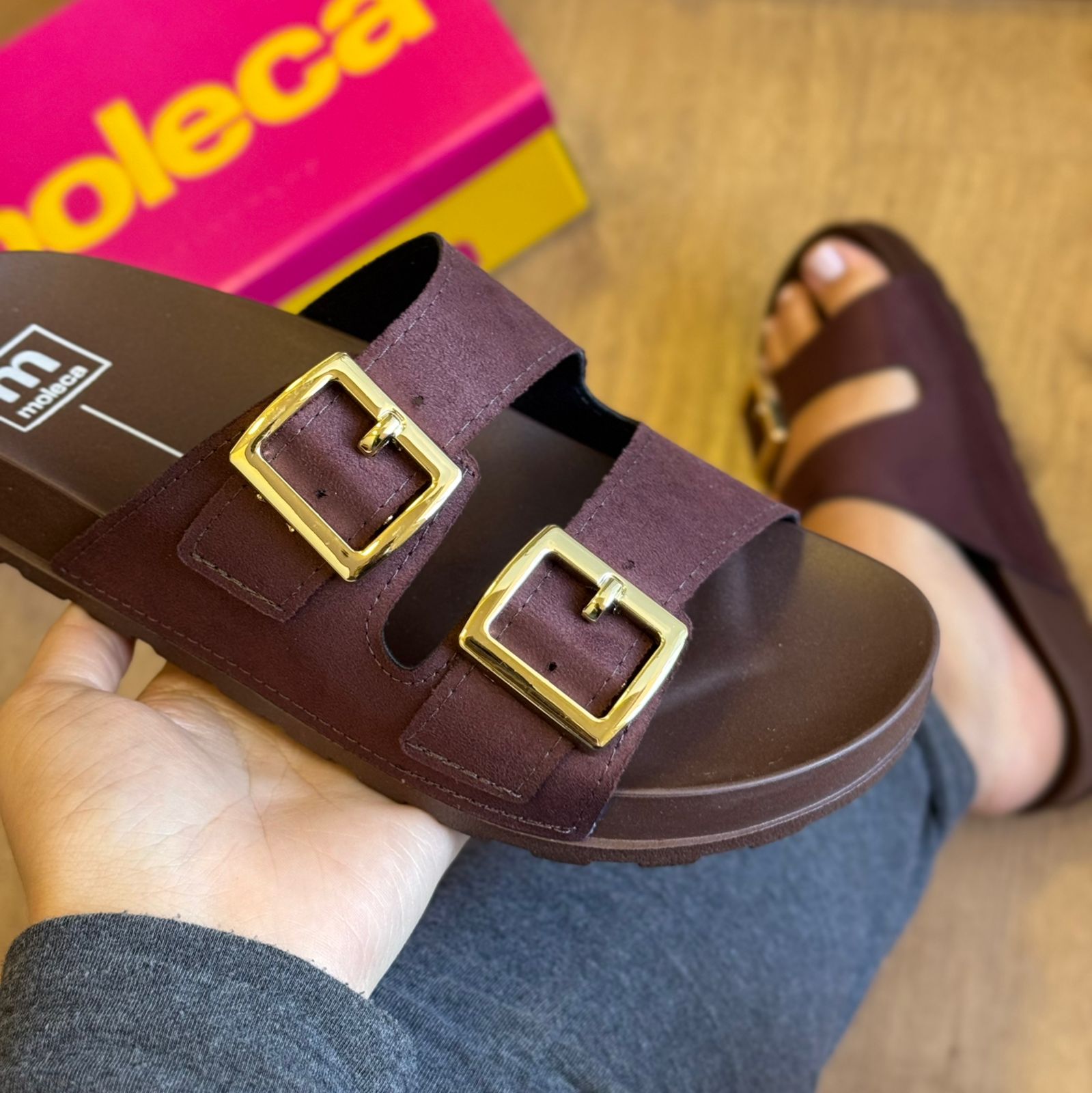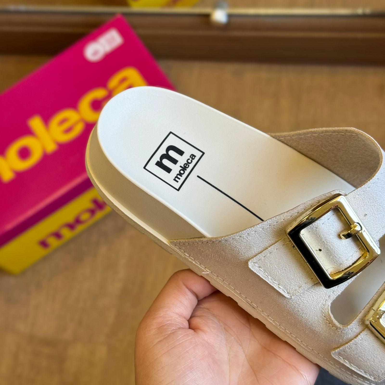 A Sandália Moleca 5436.401.5881 traz o equilíbrio perfeito entre conforto e estilo para os dias mais leves. Com design casual e moderno, conta com duas tiras em camurça sintética e fivelas douradas ajustáveis, que garantem charme e praticidade. A palmilha macia e o solado emborrachado oferecem bem-estar durante o uso. Ideal para compor looks despojados com um toque fashion no cotidiano.