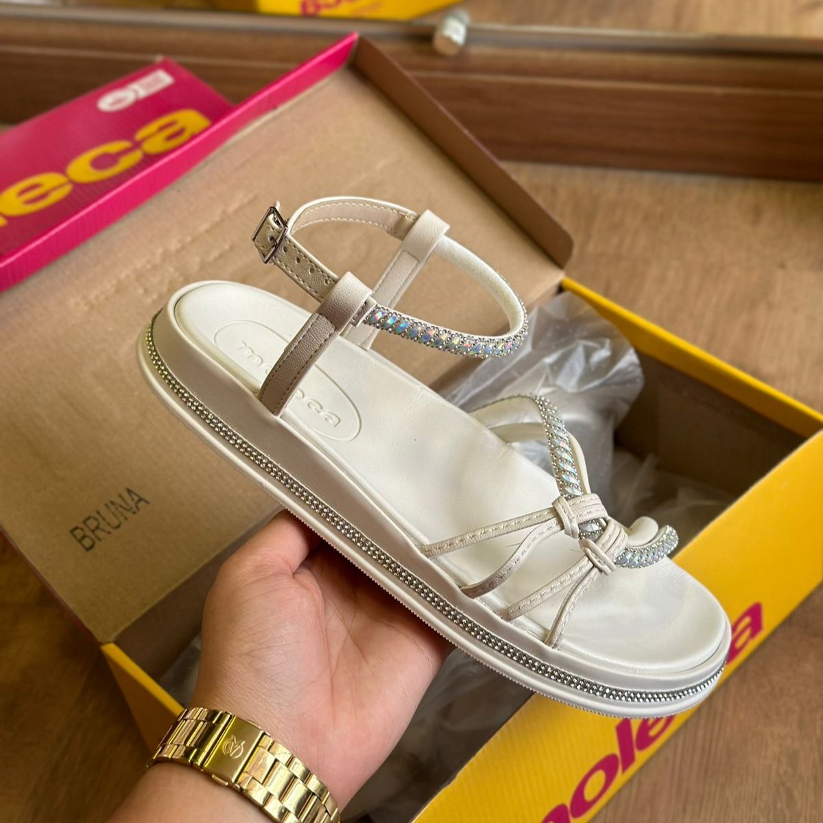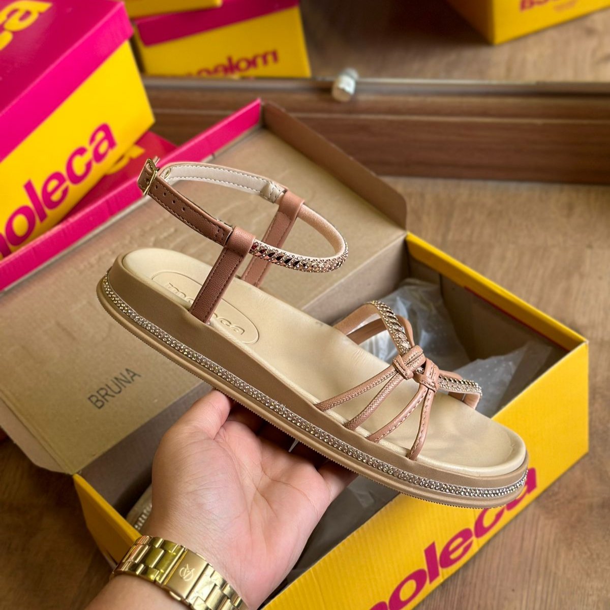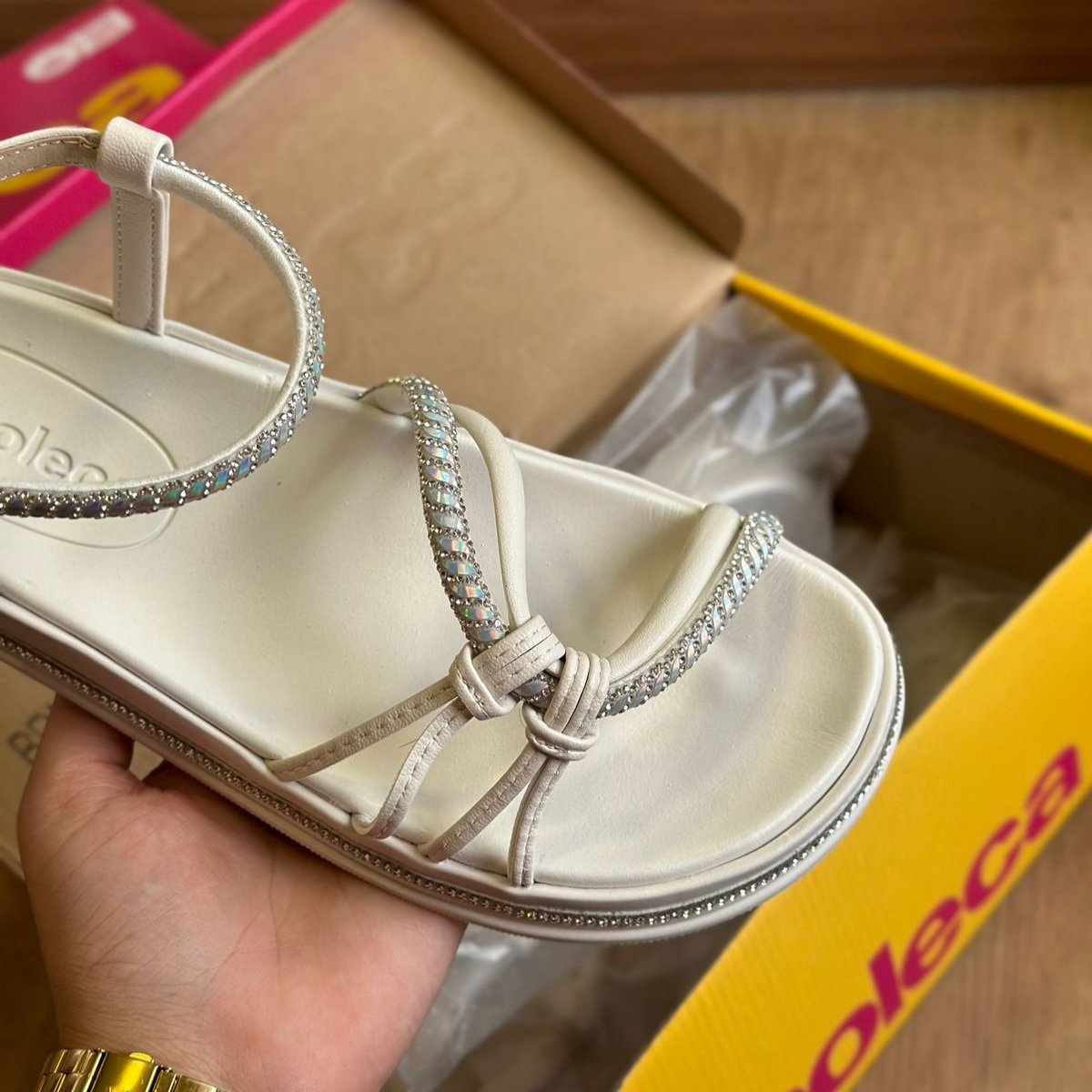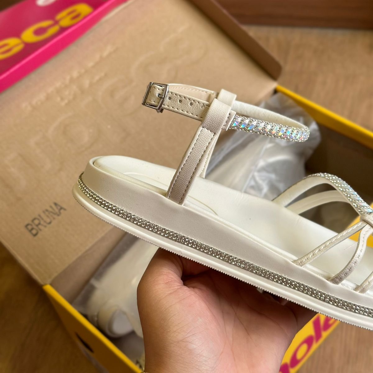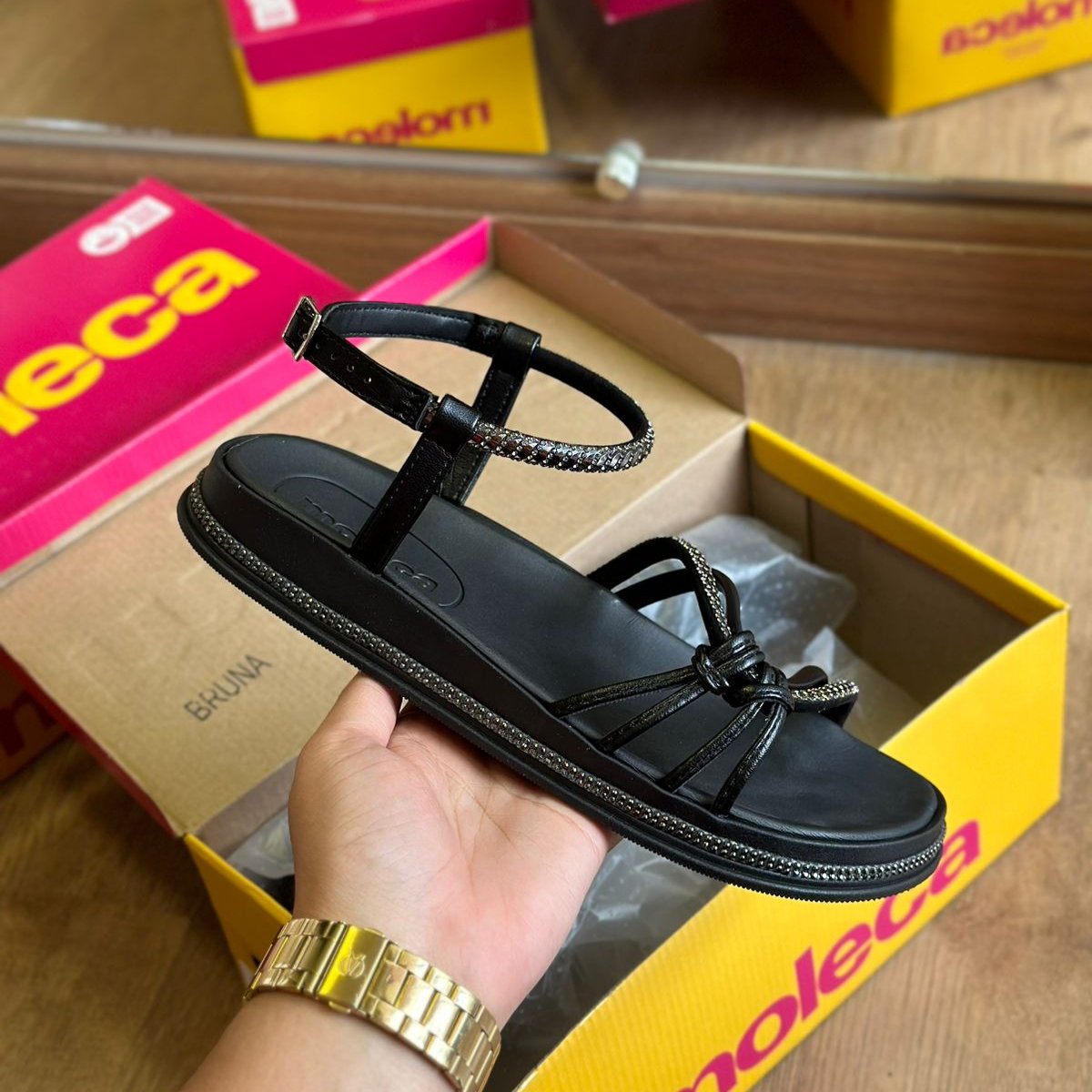 É uma peça versátil e confortável, com cabedal feito em material sintético e detalhes com tiras em strass, conferindo um toque de glamour ao design casual. A palmilha é acolchoada e super confortável, garantindo conforto ao longo do dia. O solado é emborrachado, proporcionando aderência e segurança. O bico arredondado assegura o conforto dos dedos, e o fechamento em fivela facilita o calce. Com acabamento cuidadoso e excelente respirabilidade, essa sandália é perfeita para quem busca estilo e funcionalidade em uma peça única. Altura da sola 2,5 cm.