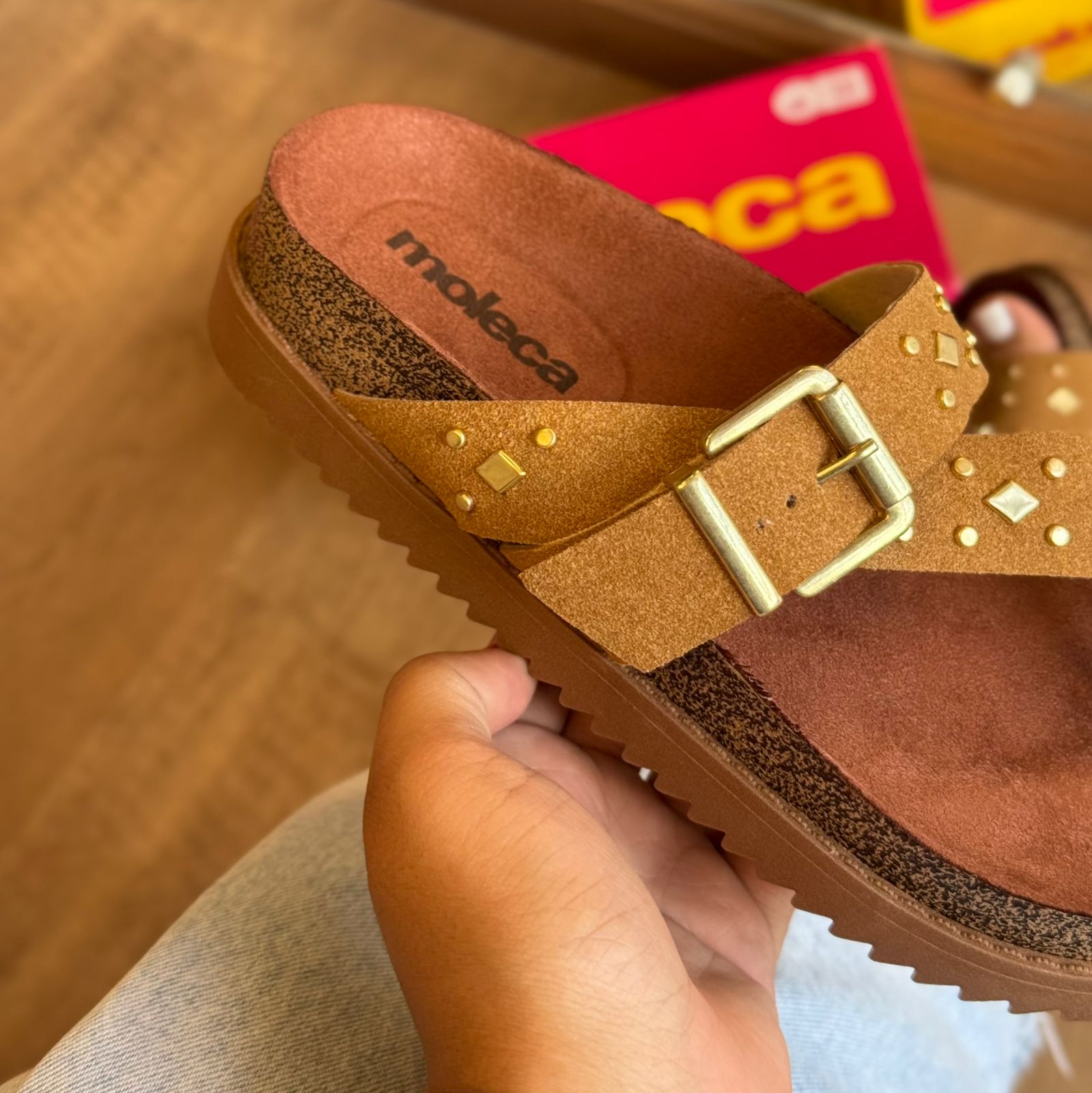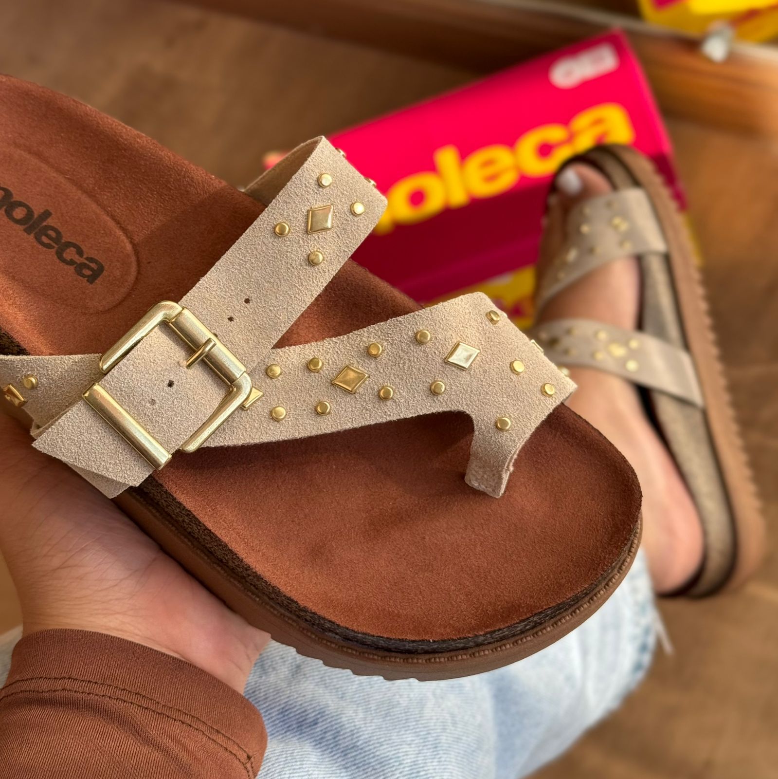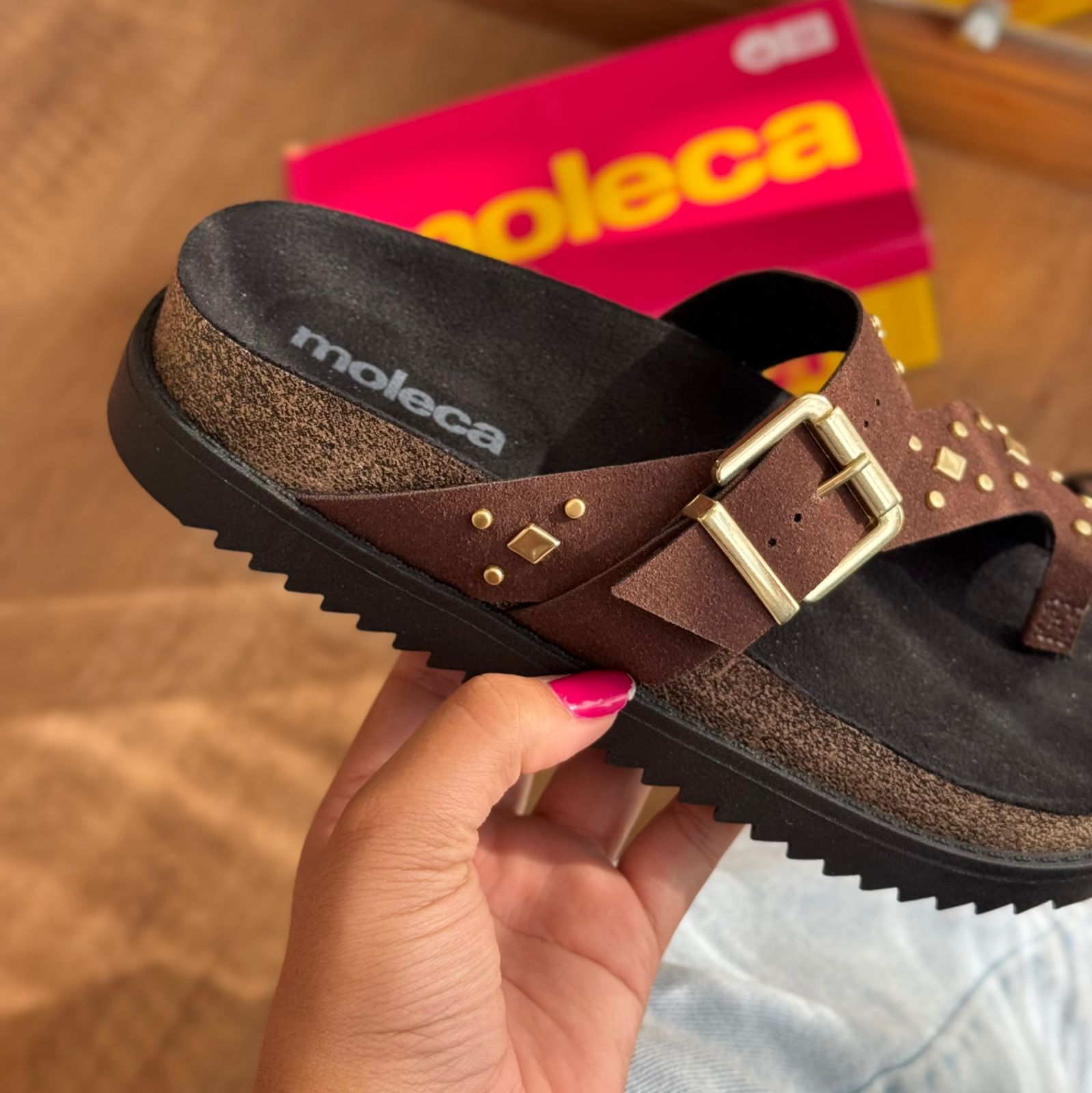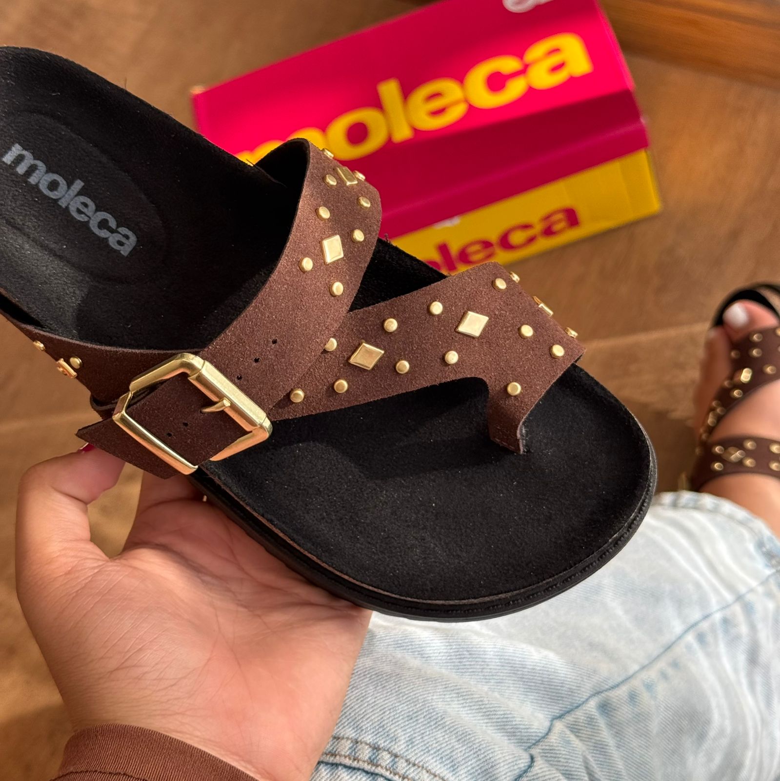 Sandália Moleca com acabamento em detalhe dourado que combina conforto e elegância. Modelo apresenta design versátil, ideal para o dia a dia ou ocasiões mais descontraídas. A marca Moleca é reconhecida pela qualidade e durabilidade de seus produtos, garantindo um calçado que acompanha você por muito tempo. Perfeita para quem busca praticidade sem abrir mão do estilo.