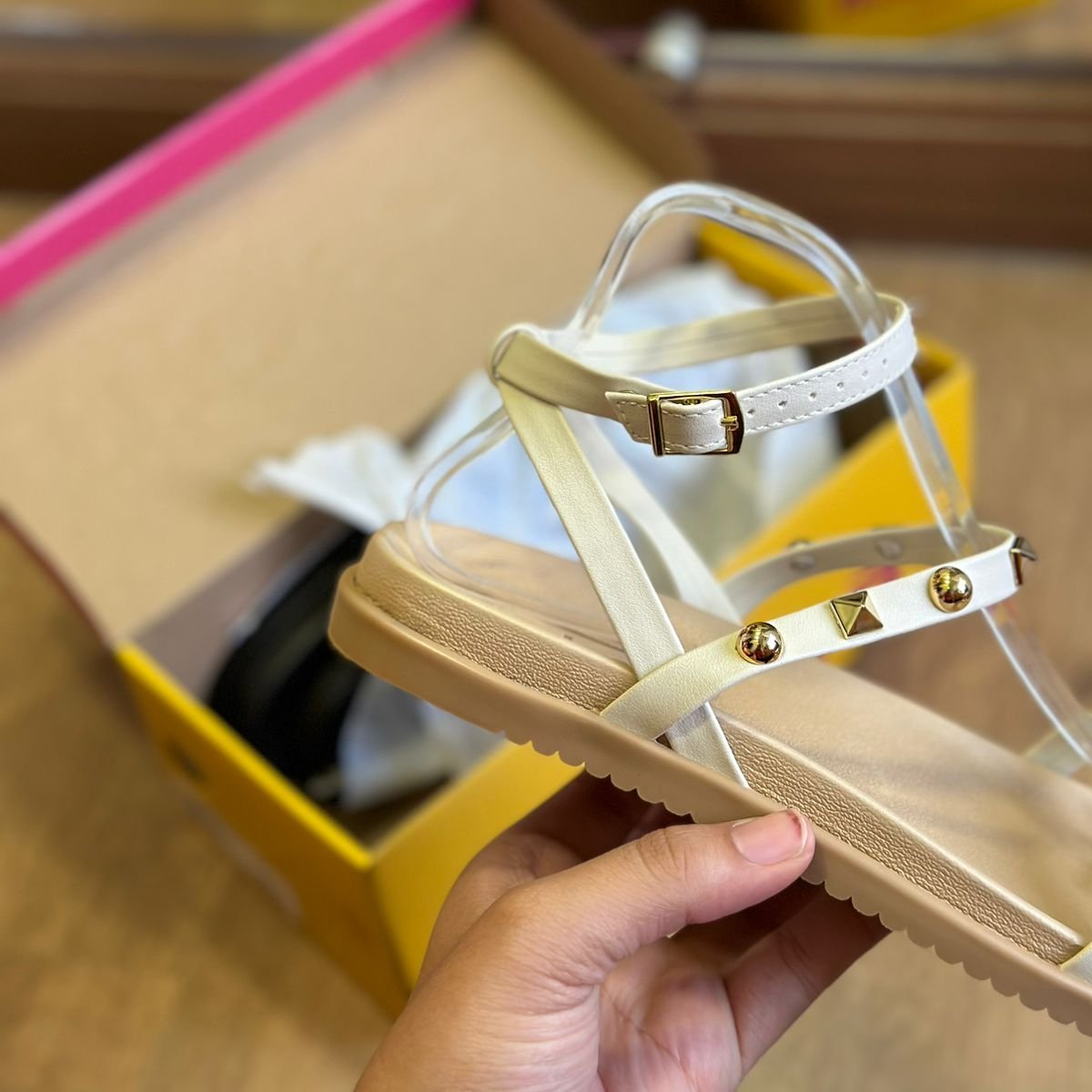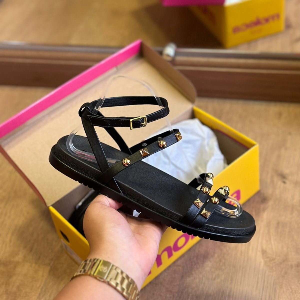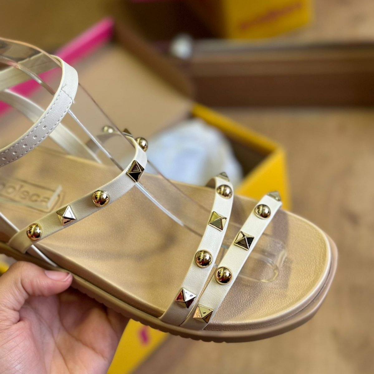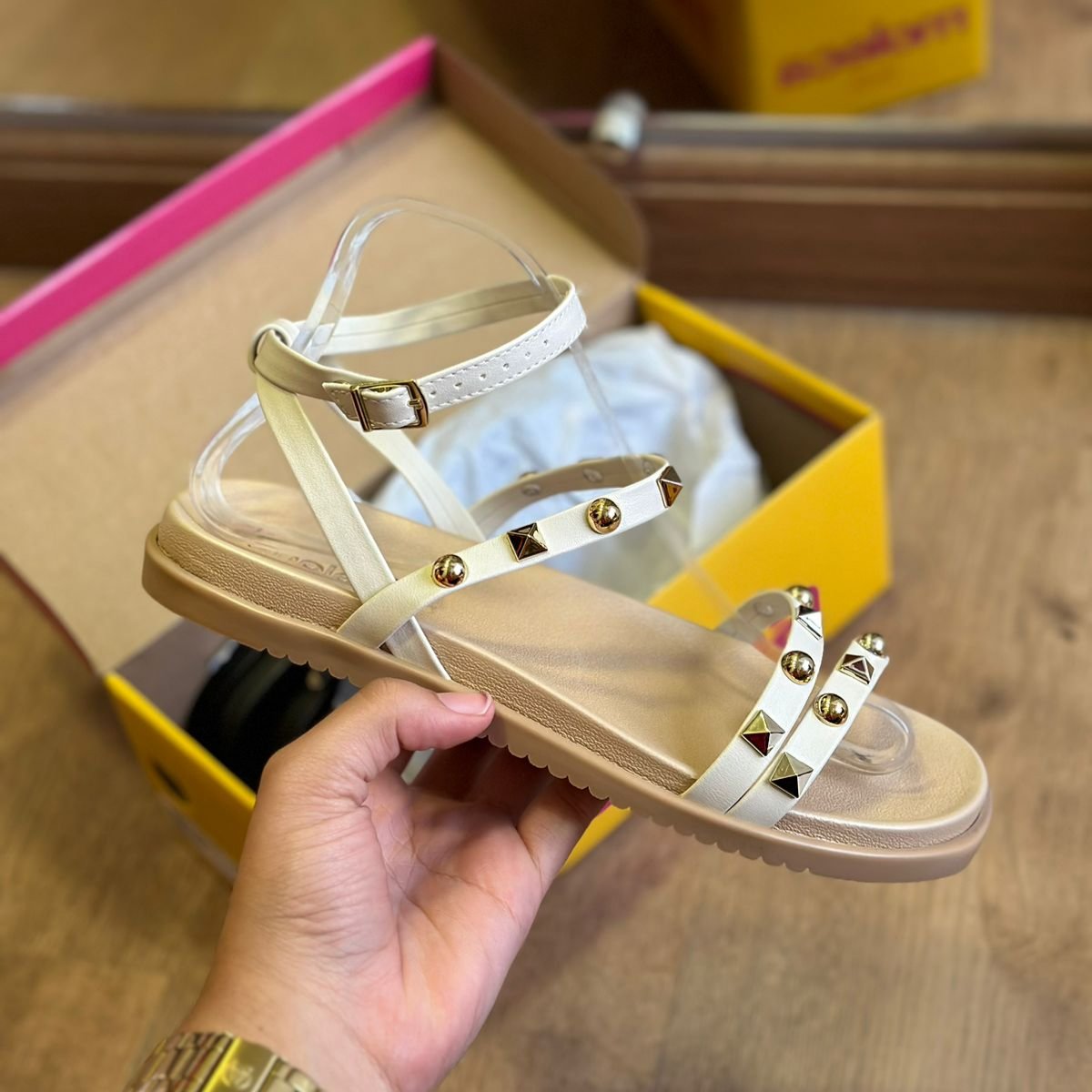 Eleve seu estilo com a Sandália Moleca Detalhe Pedrarias 5502.107! Com tiras delicadas adornadas com pedrinhas douradas, esta sandália acrescenta um toque de luxo e sofisticação ao seu look. As tiras que envolvem o tornozelo proporcionam um ajuste perfeito e elegante, garantindo conforto e segurança ao caminhar. Ideal para qualquer ocasião, esta sandália combina elegância e praticidade, sendo uma escolha irresistível para quem busca beleza e conforto em um só calçado.