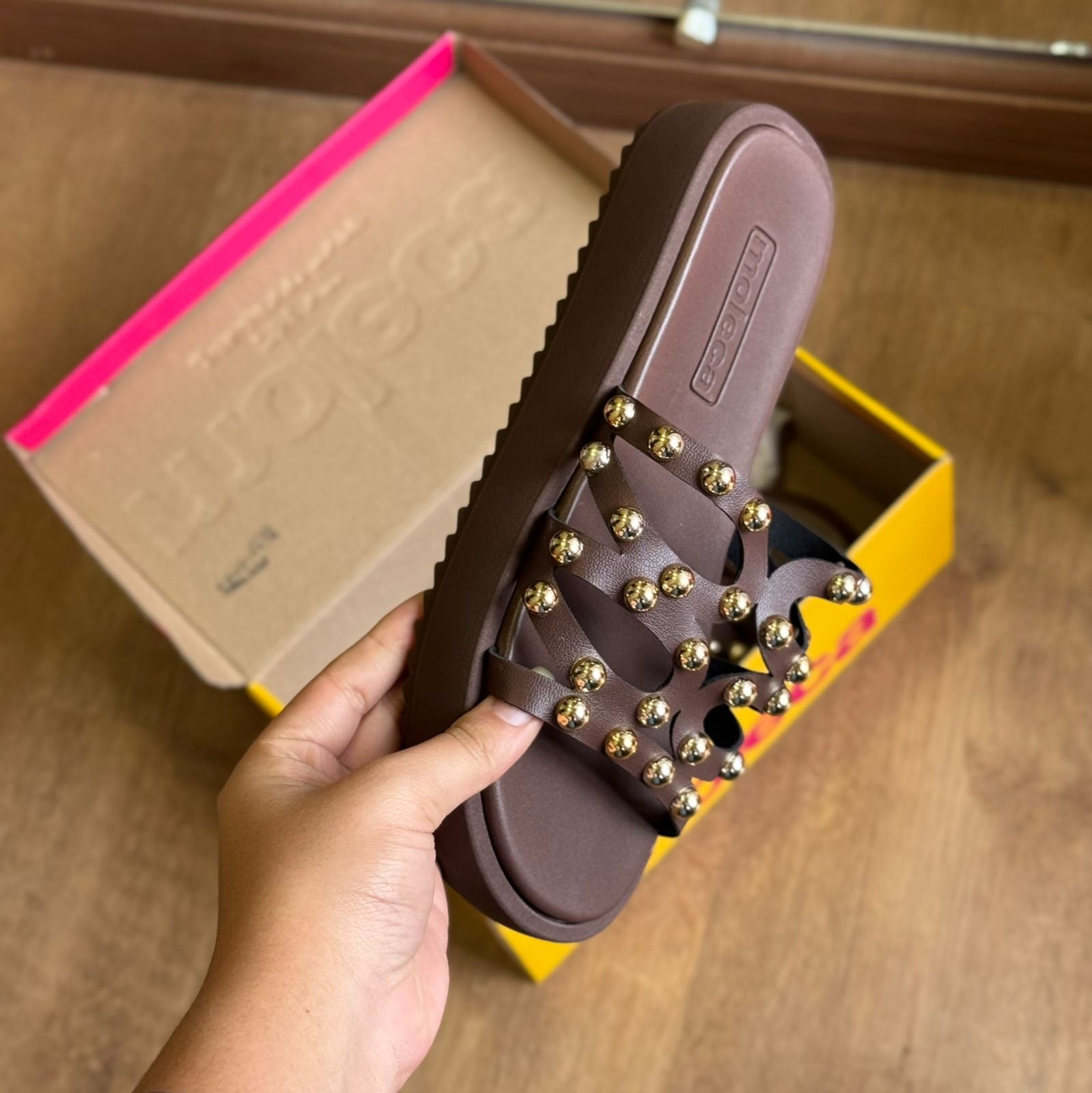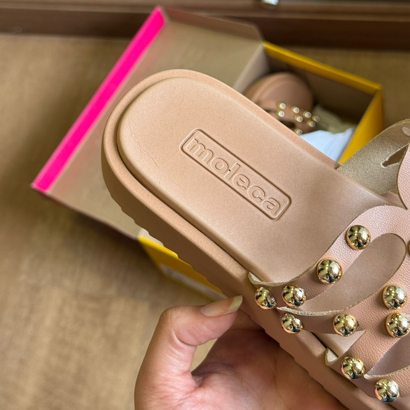 A Sandália Moleca Papete com Bolinhas Douradas 5489.121 traz um toque delicado e moderno ao visual. Seu design leve e confortável é perfeito para o dia a dia, enquanto as bolinhas douradas nas tiras garantem um charme especial e sofisticado. Com solado anatômico e tiras ajustáveis, proporciona conforto prolongado e um ajuste ideal aos pés. Versátil e estilosa, é a escolha certa para quem quer praticidade com um toque de brilho.