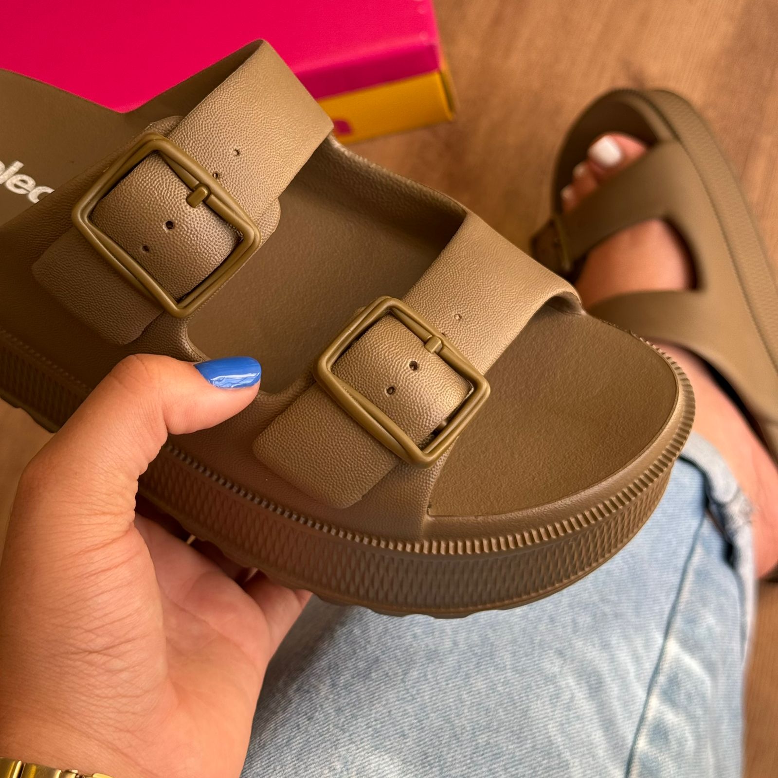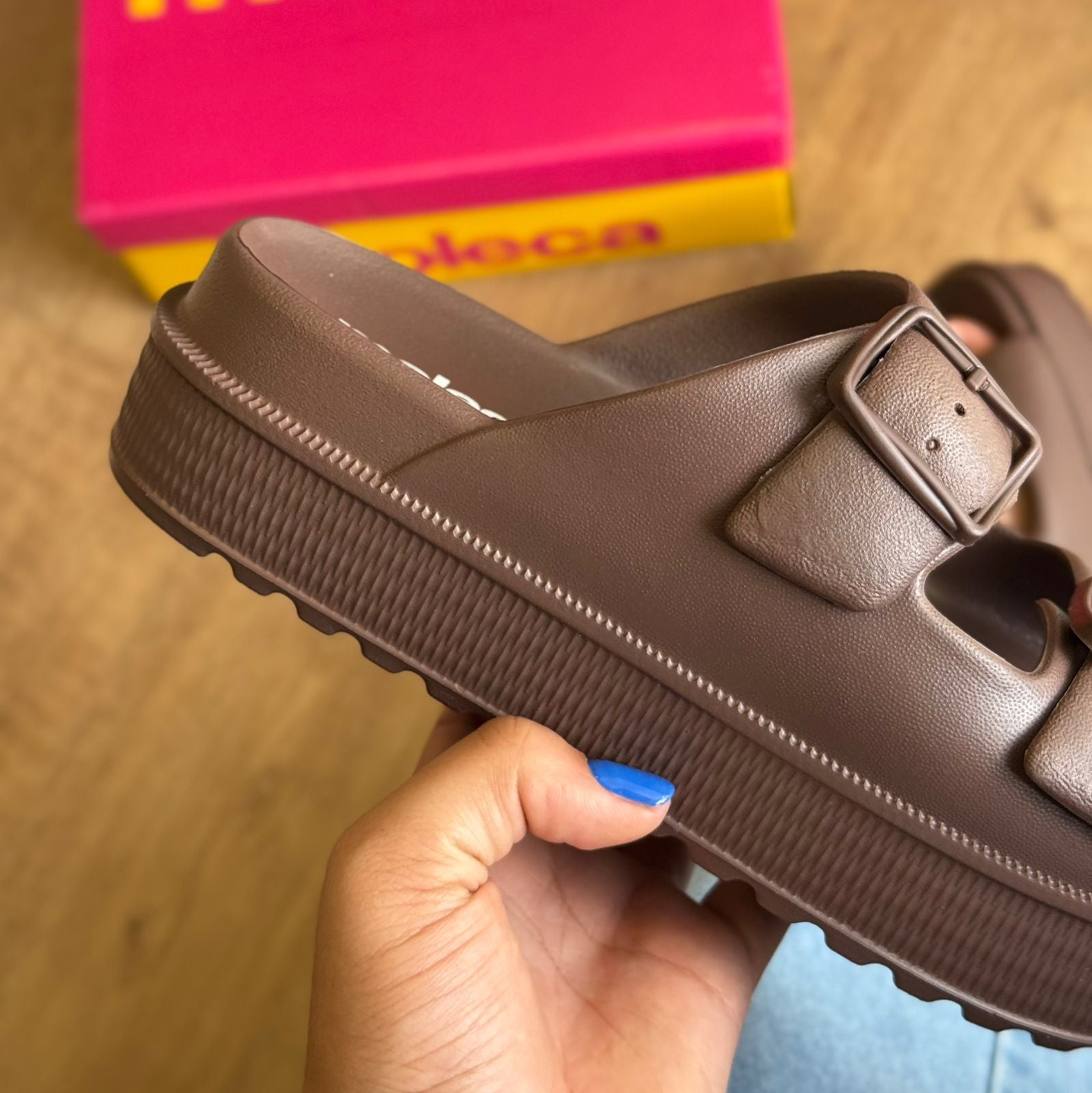 Uma sandália prática e estilosa que acompanha sua rotina com conforto e elegância.