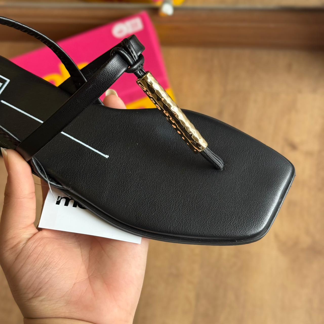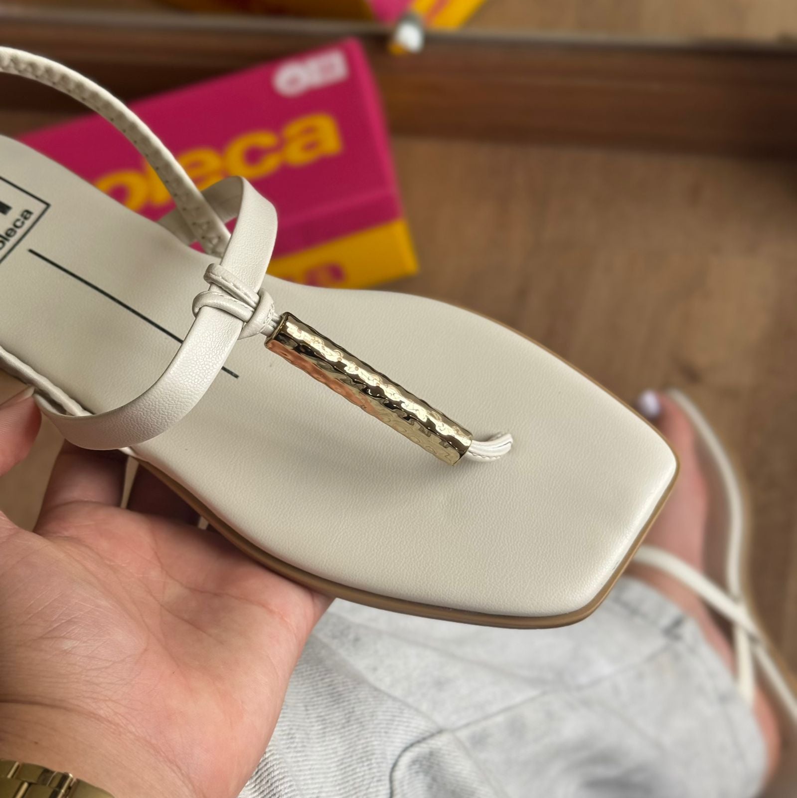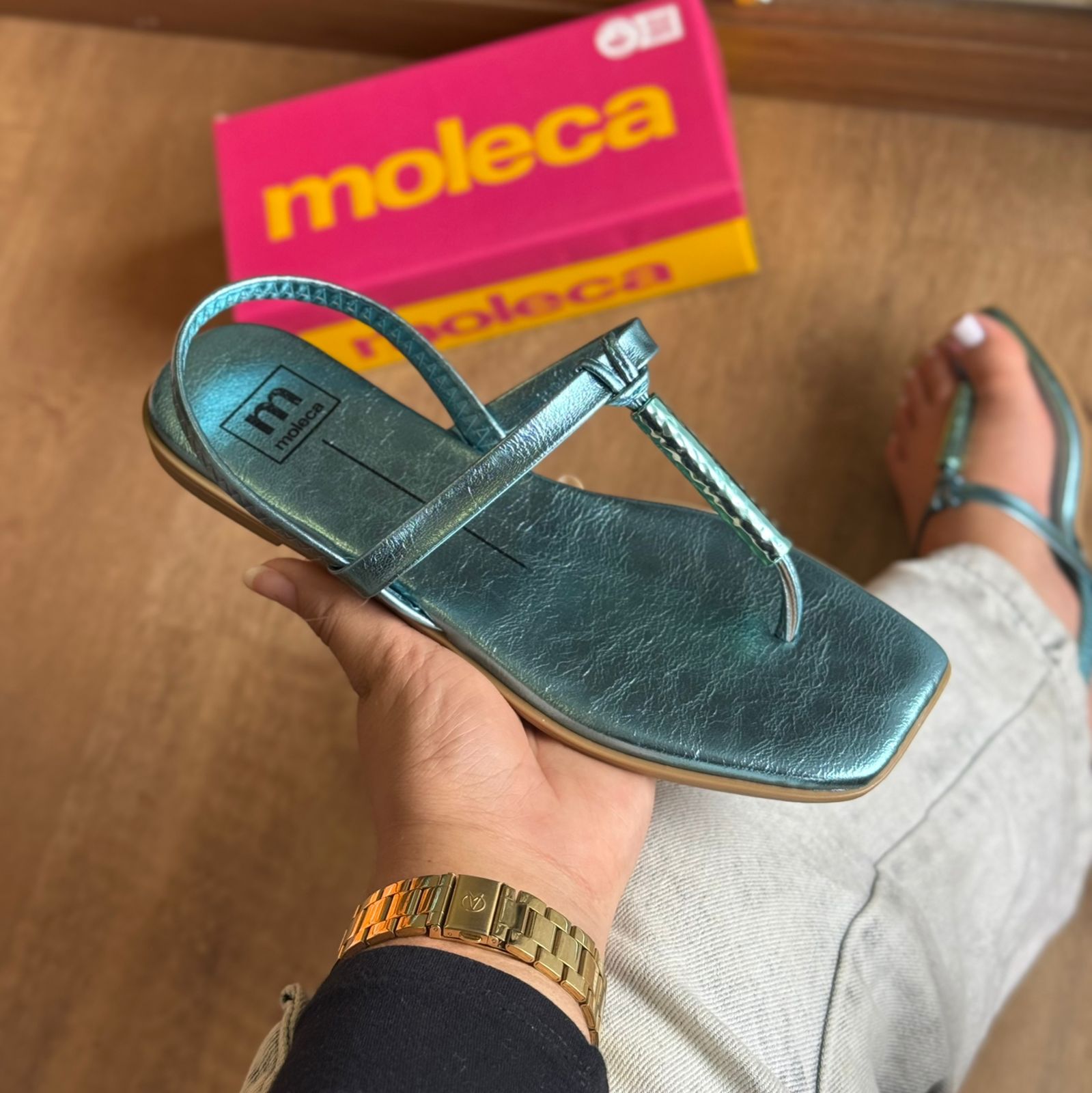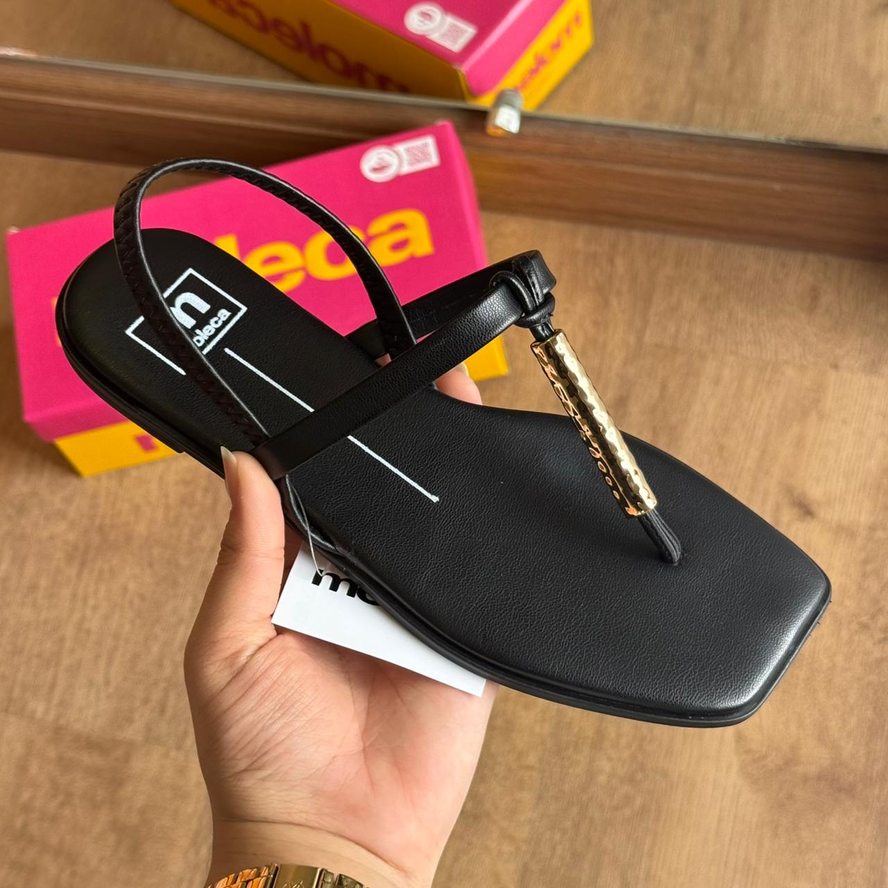 Sandália rasteirinha Moleca com acabamento sofisticado. O detalhe metálico na frente adiciona um toque de elegância ao design minimalista, tornando-a versátil para looks casuais e semi-formais. Construída com materiais de qualidade, oferece conforto o dia todo. Ideal para quem busca uma peça clássica que combina com praticamente qualquer guarda-roupa.