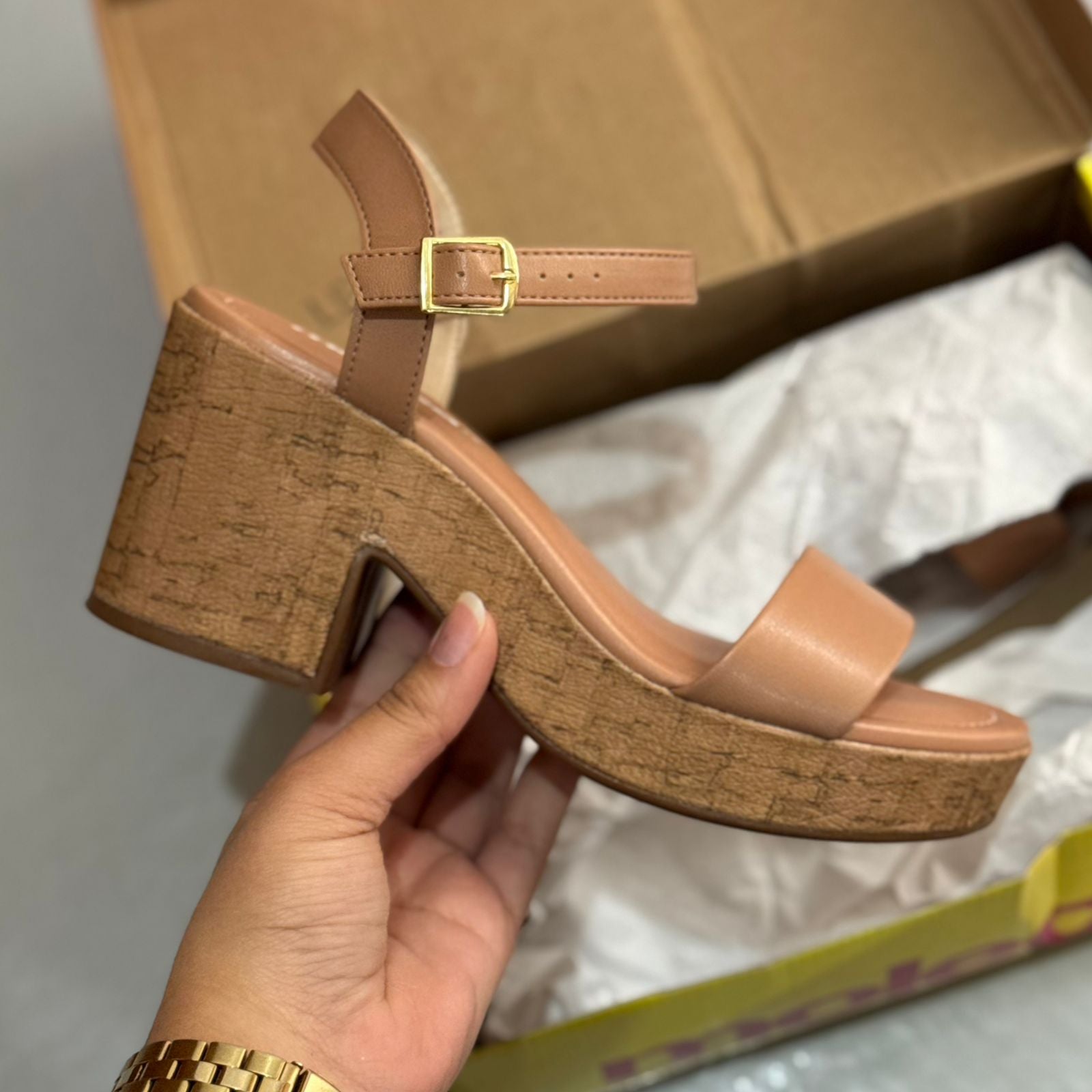 As tiras com acabamento delicado valorizam os pés, enquanto o ajuste prático oferece segurança e firmeza no uso.