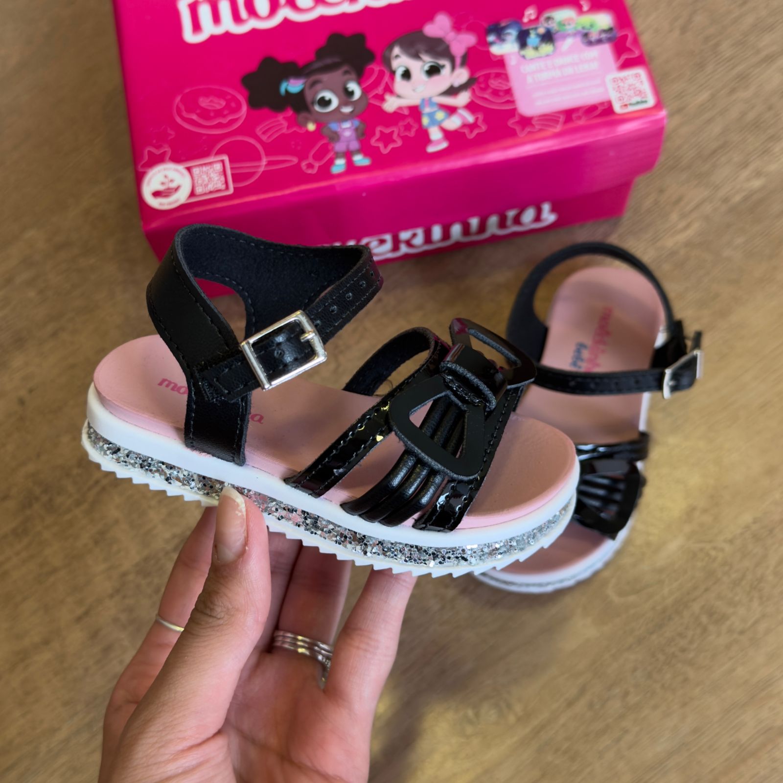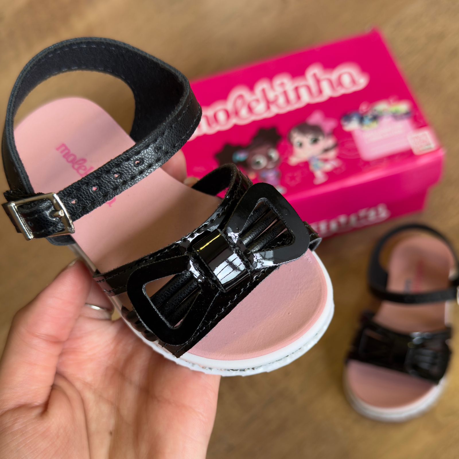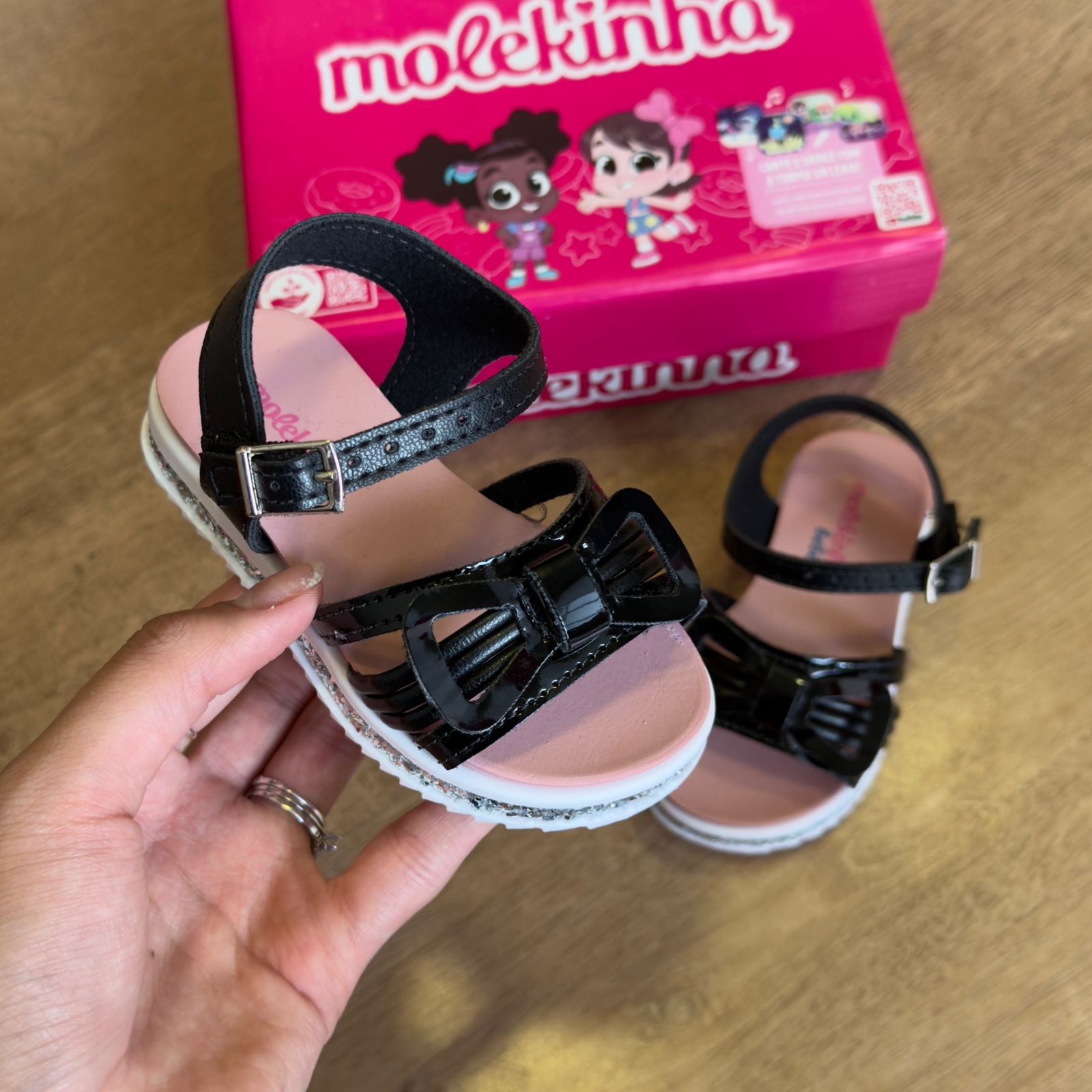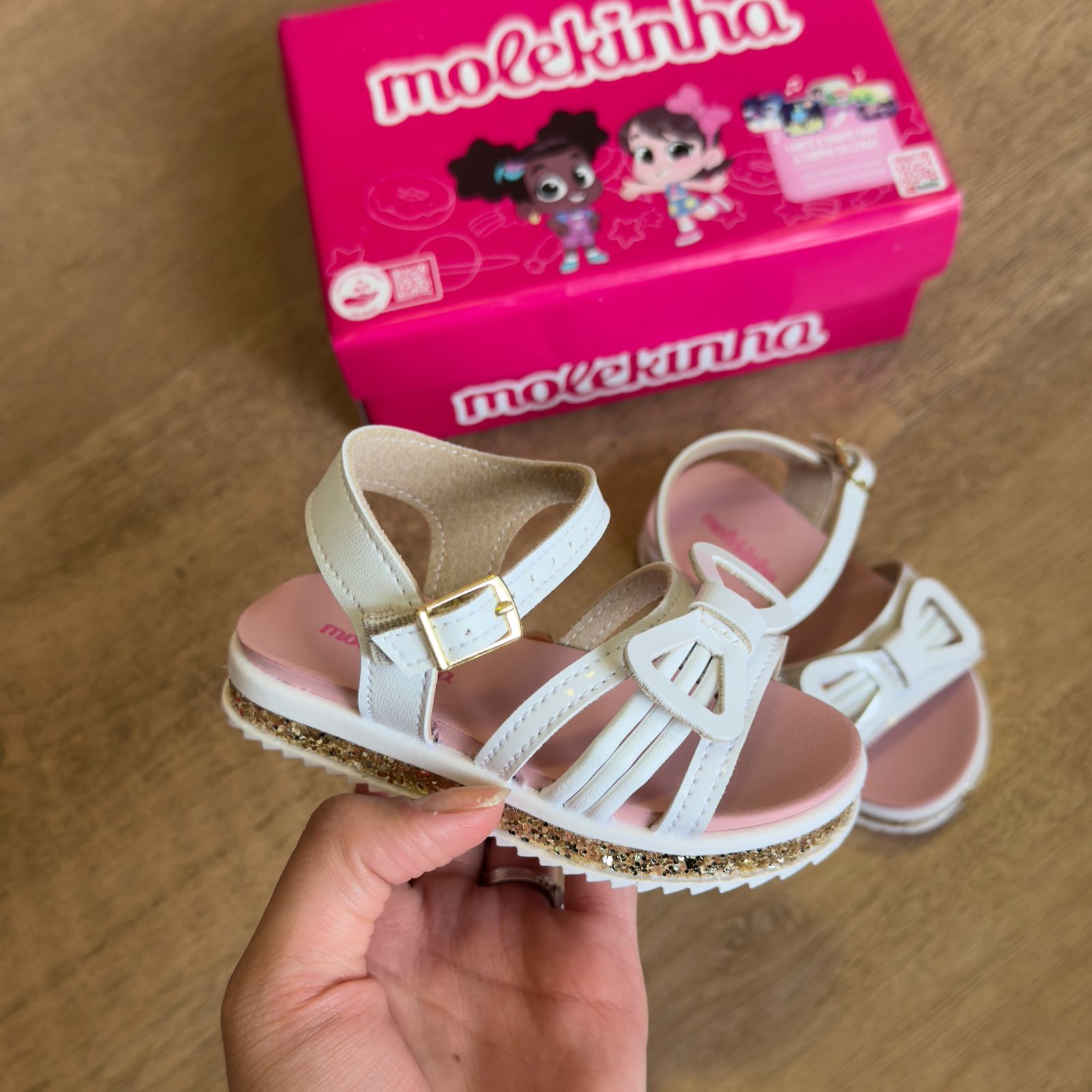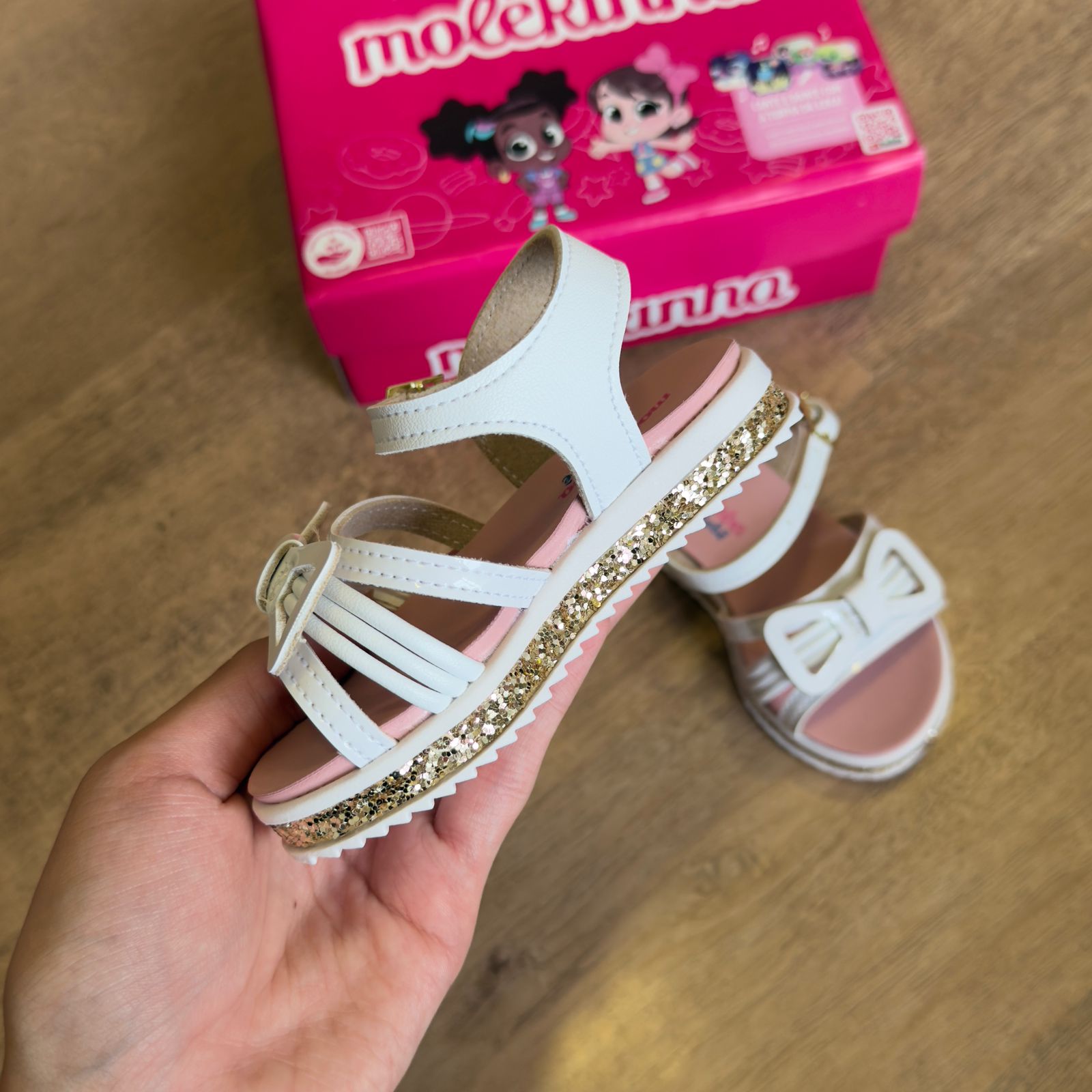 A Sandália Molekinha traz um toque de brilho e estilo para os pés das meninas com seu detalhe de laço e glitter lateral. Feita com materiais de qualidade e design moderno, é perfeita para completar o look de forma otimista e confortável.