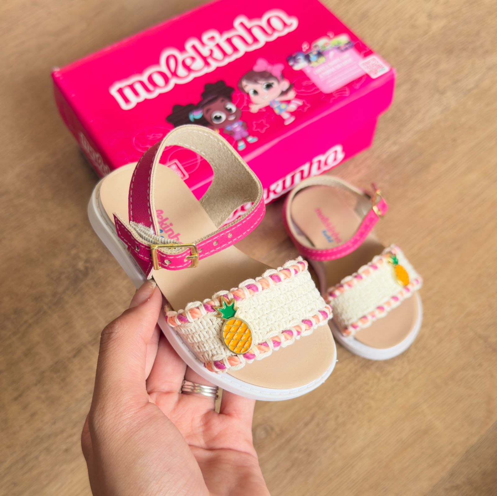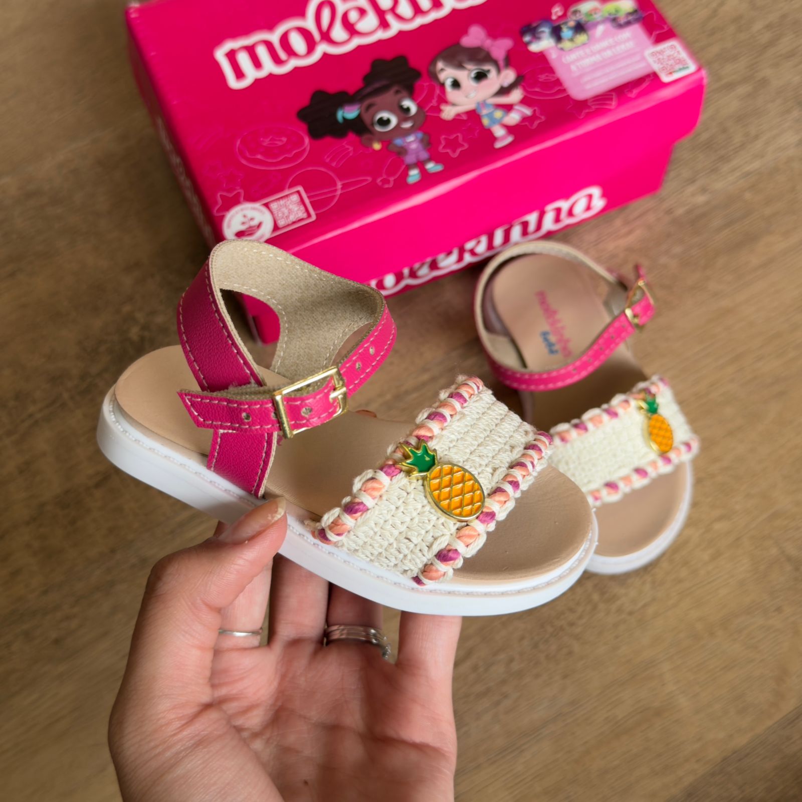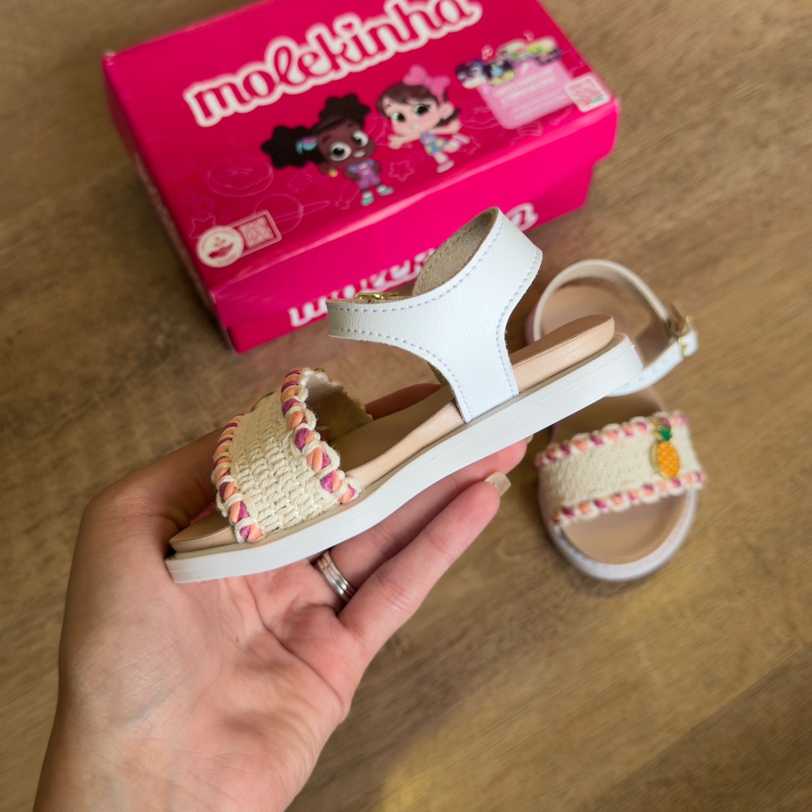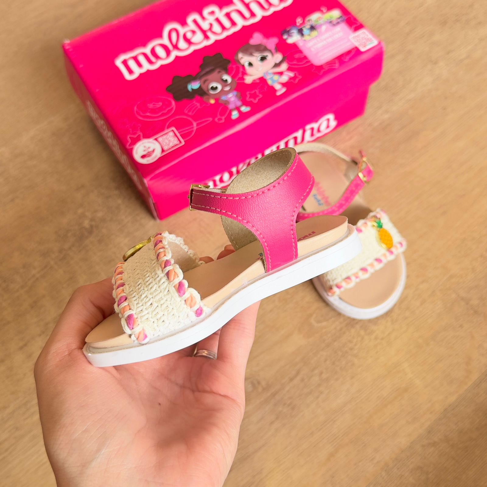 Sandália infantil Molekinha com estampa divertida de frutas que traz alegria aos pés das crianças. Confeccionada em material resistente e confortável, oferece suporte adequado para as atividades do dia a dia. O design colorido e lúdico estimula a imaginação, enquanto o ajuste seguro garante que o pequeno possa brincar e explorar sem preocupações. Perfeita para passeios, praia ou momentos de lazer em família.