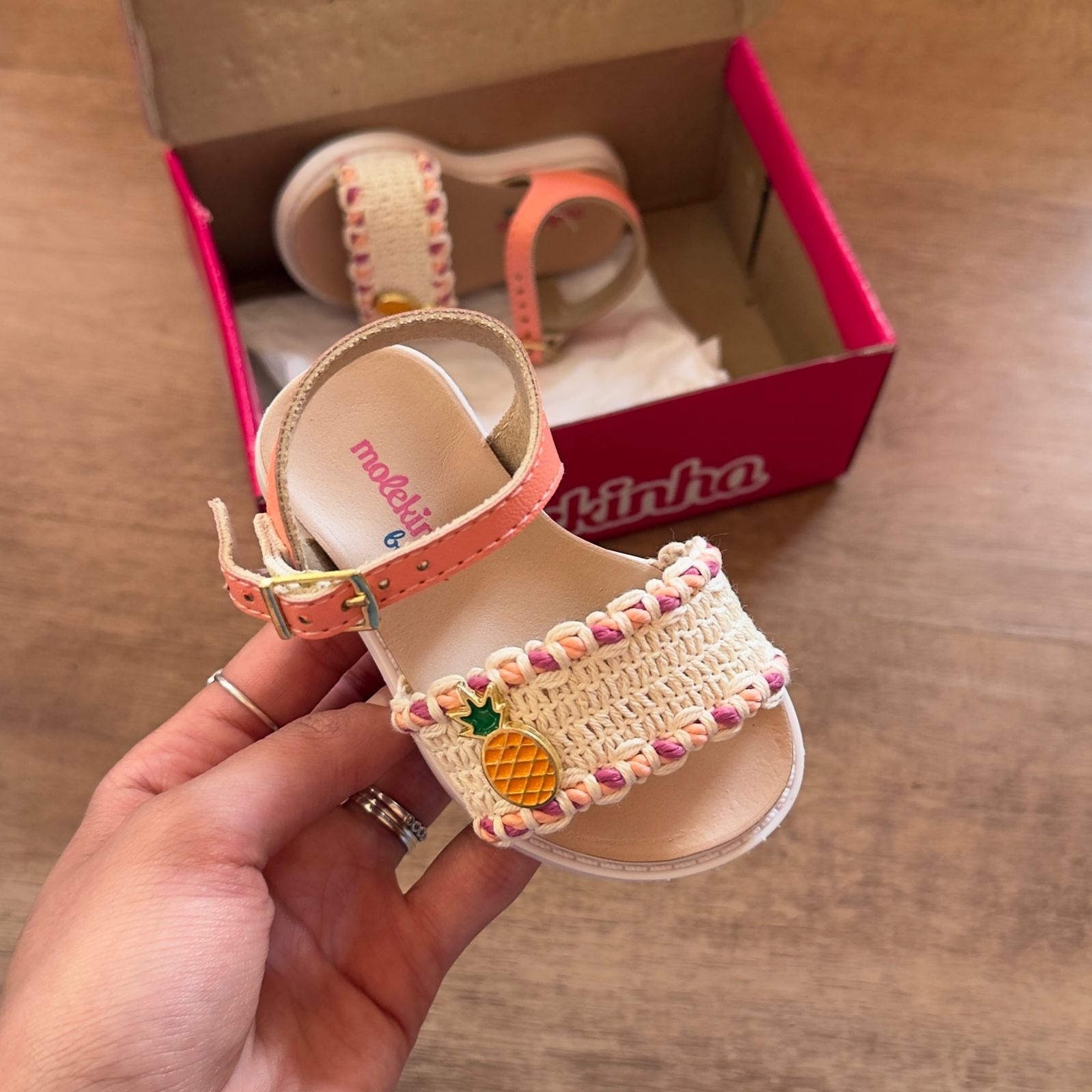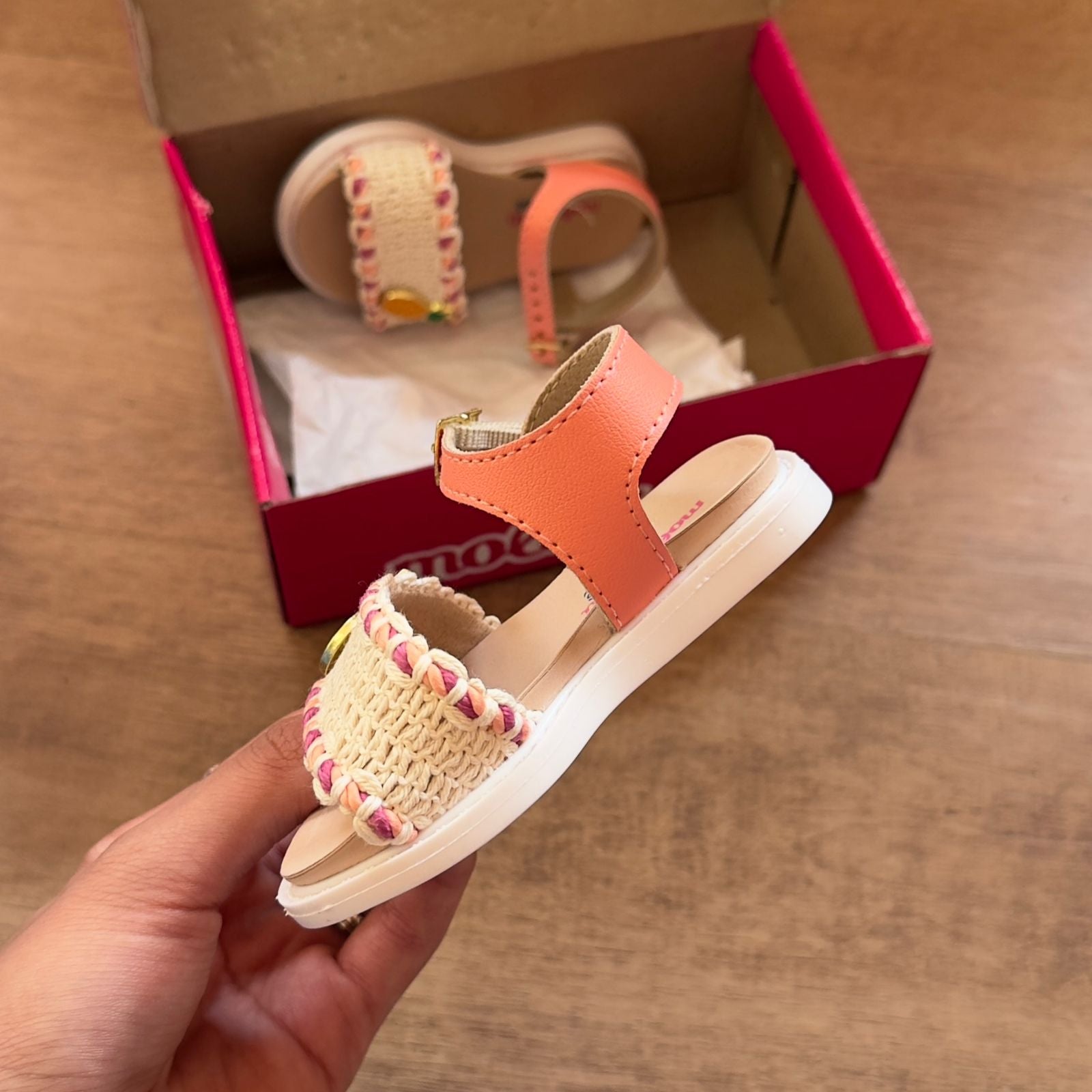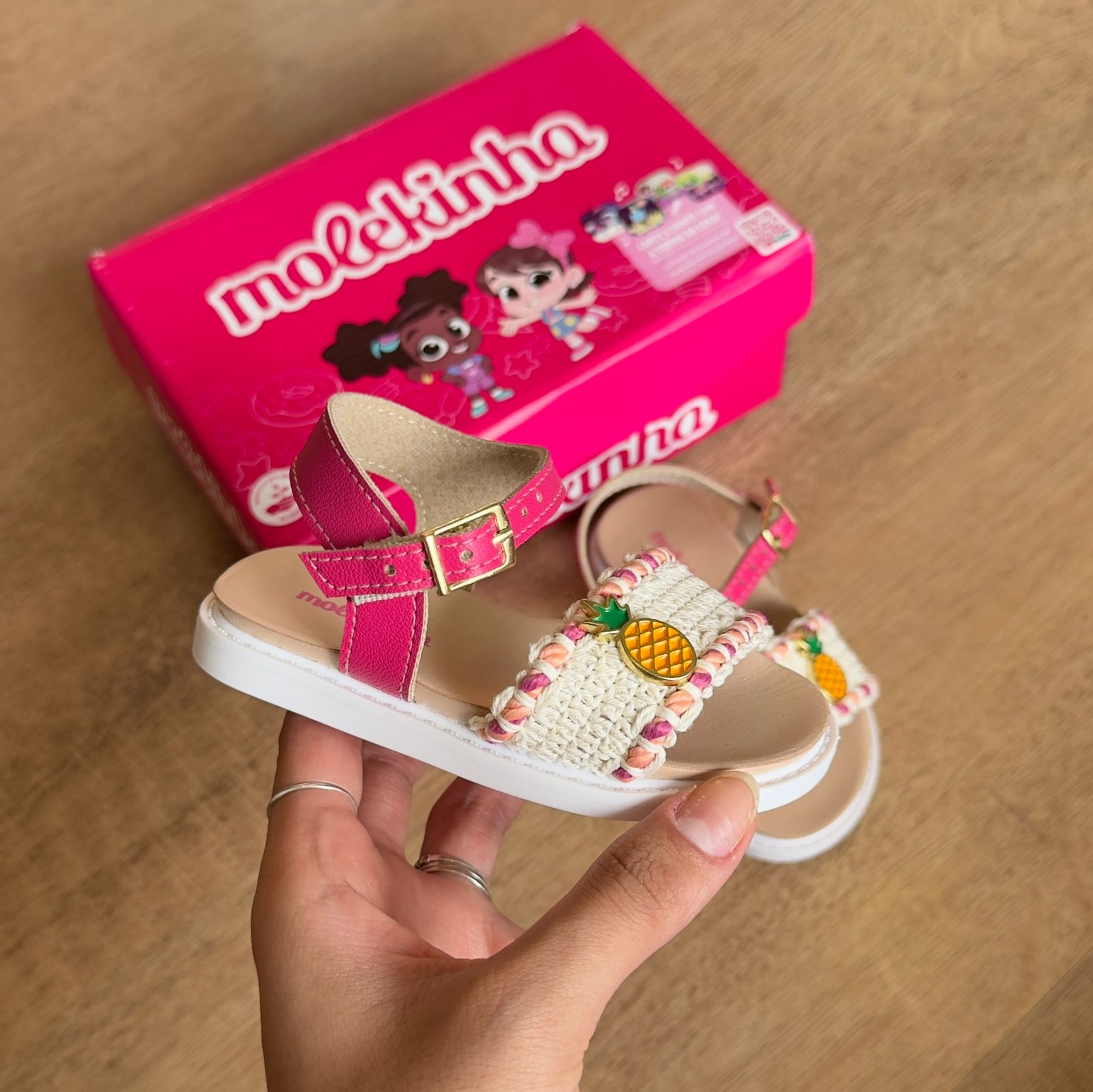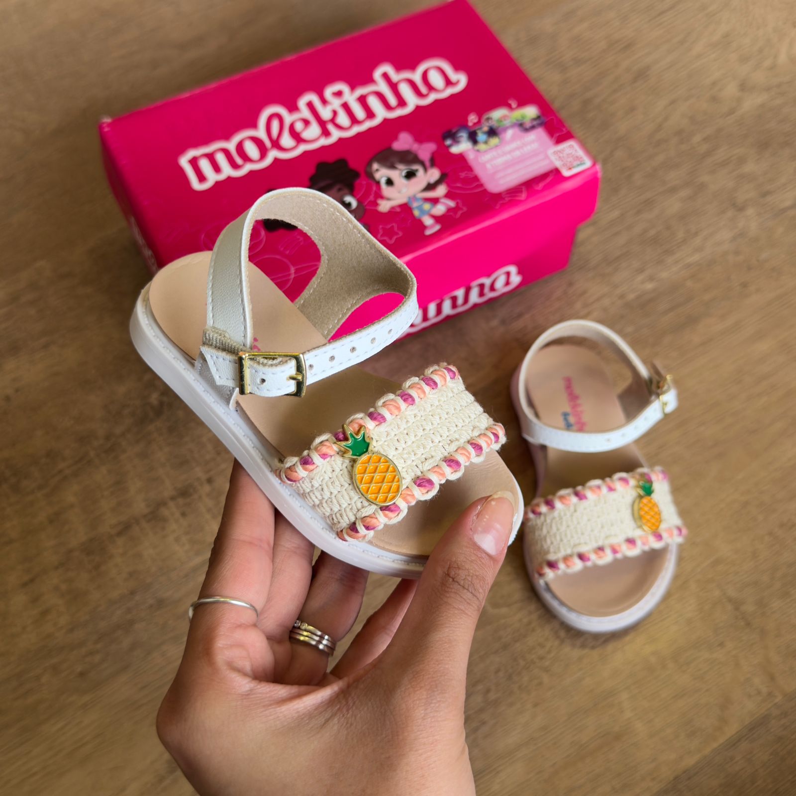 Sandália infantil Molekinha com estampa divertida de frutas que traz alegria aos pés das crianças. Confeccionada em material resistente e confortável, oferece suporte adequado para as atividades do dia a dia. O design colorido e lúdico estimula a imaginação, enquanto o ajuste seguro garante que o pequeno possa brincar e explorar sem preocupações. Perfeita para passeios, praia ou momentos de lazer em família.
