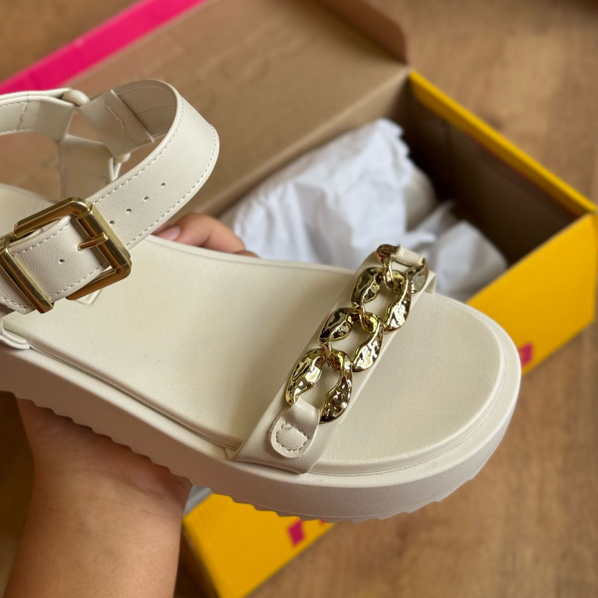 Sandália Papete Moleca Detalhes Dourados 5489.118