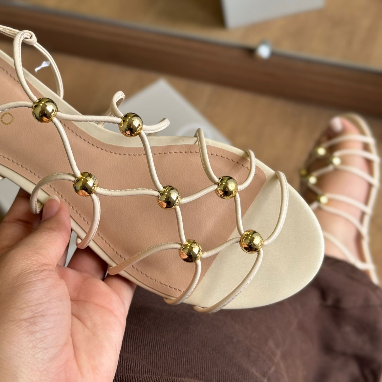 Sandália Rasteira Arezzo Tiras Esferas A044850512