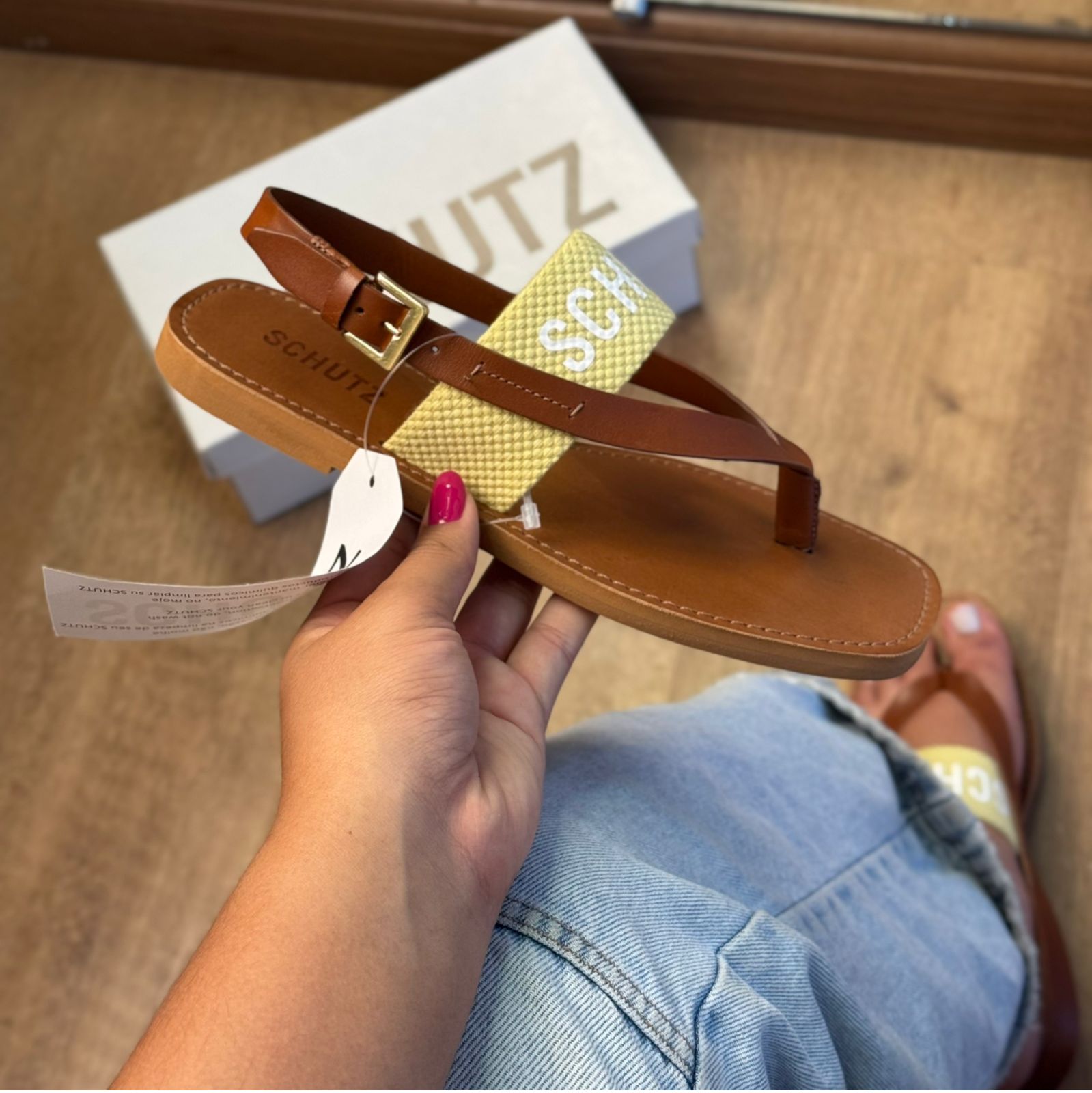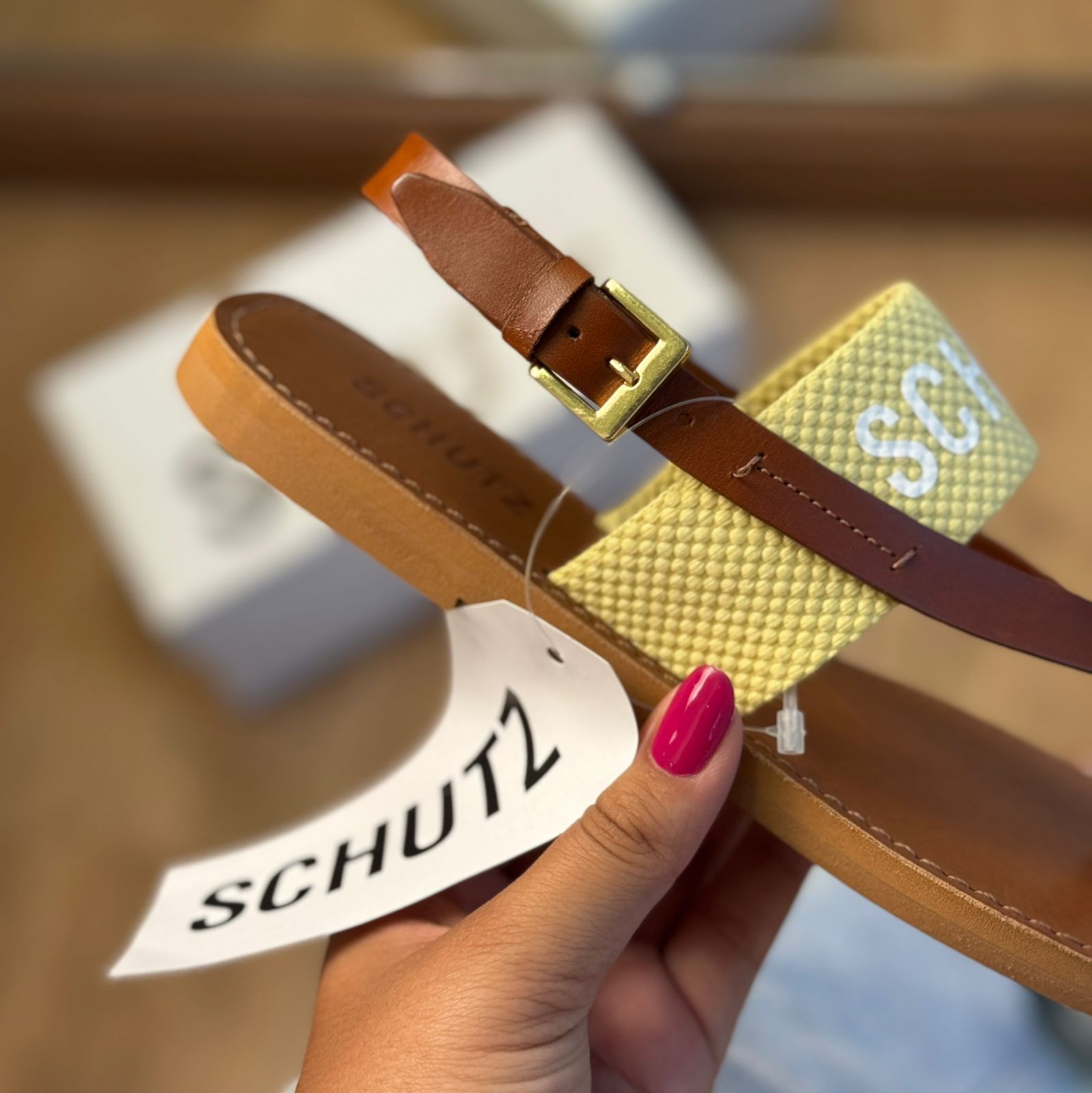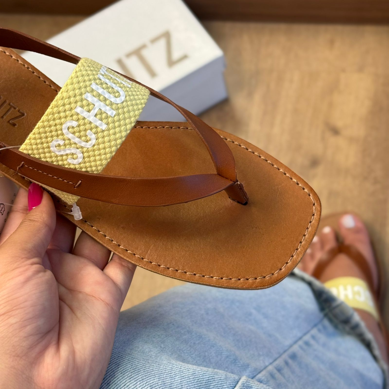 Sandália rasteira de dedo Schutz que combina conforto e elegância para o dia a dia. Confeccionada com materiais de qualidade, apresenta design minimalista e versátil que se adapta a diferentes ocasiões. O modelo de dedo oferece suporte adequado e facilita o calçado rápido. Ideal para quem busca uma opção prática sem abrir mão do estilo. Perfeita para compor looks casuais e descontraídos com sofisticação.