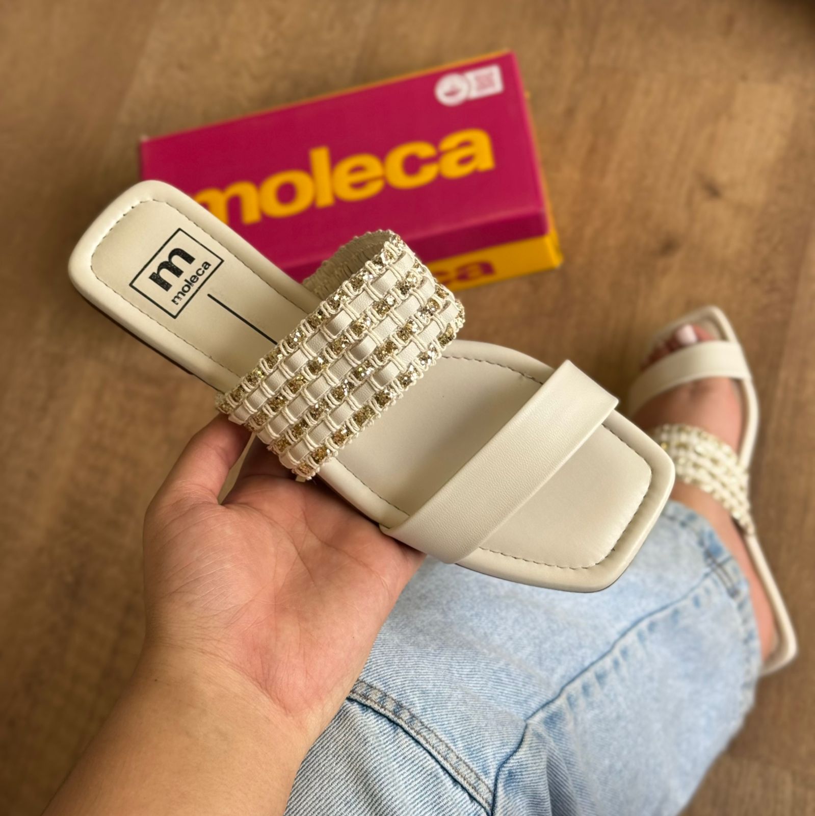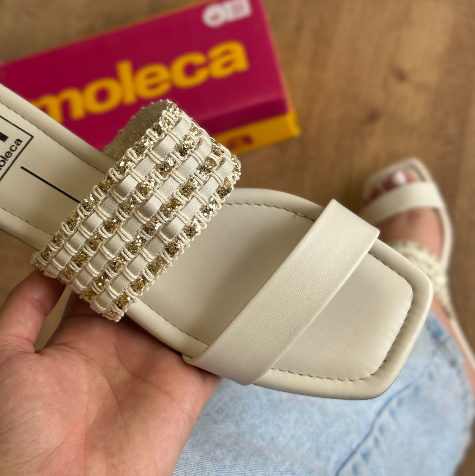 Sandália Rasteira Moleca Brilho Dourado 5462.146