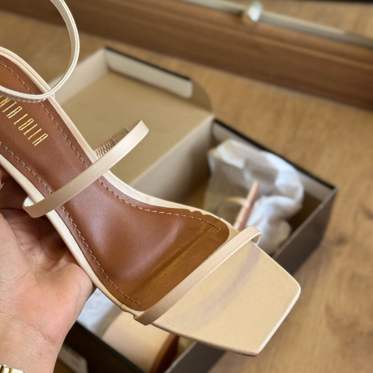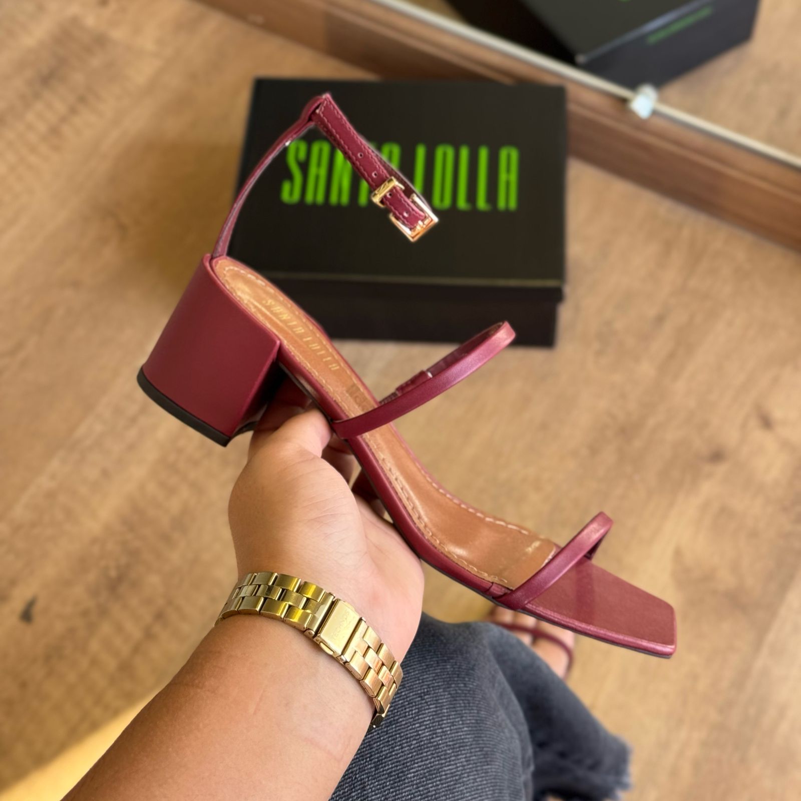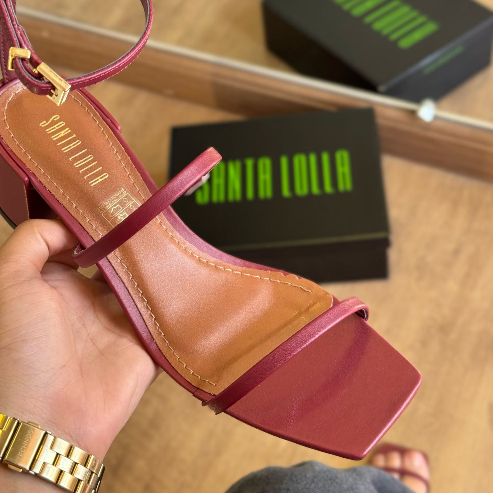 A sandália confeccionada em couro confort é um modelo que combina estilo e praticidade. Com bico quadrado e salto médio bloco, design inclui tiras finas e uma tira adicional que contorna o tornozelo, com fechamento em fivela proporcionando ajuste elegante.