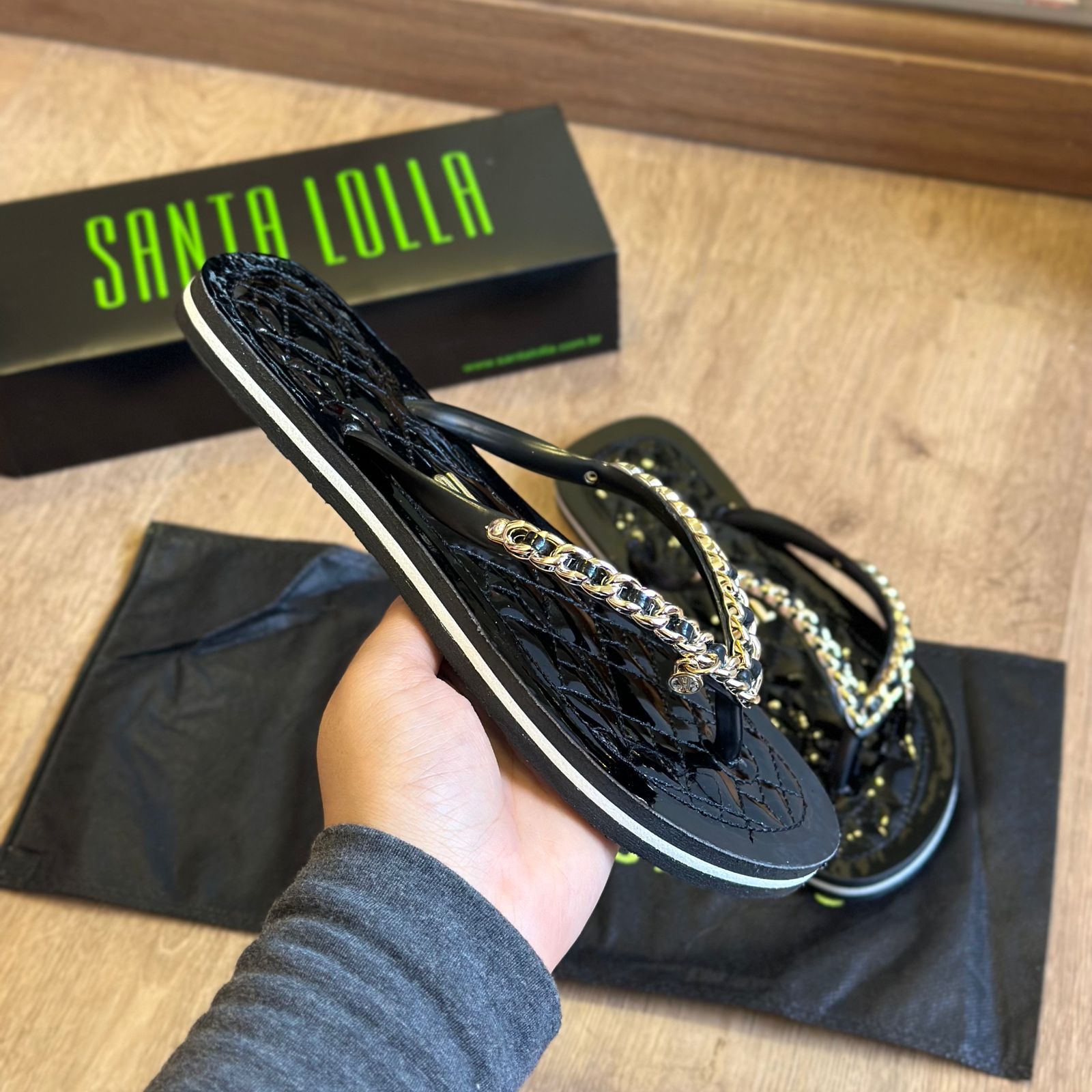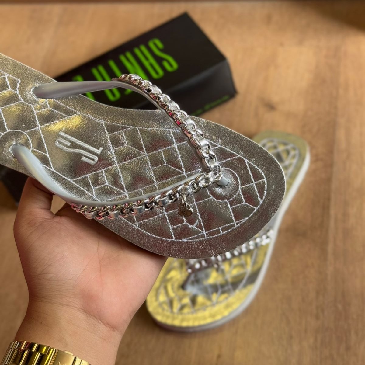 Sandália Santa Lolla Flip Flop Corrente Dourada 0106.0D67