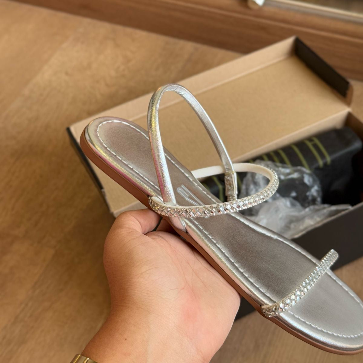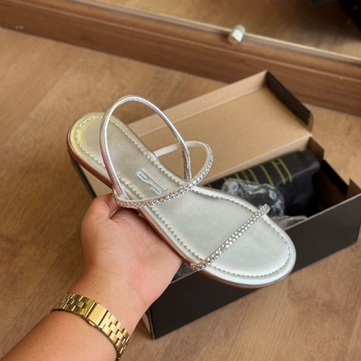 A rasteira flat, oferece conforto e durabilidade excepcionais. Possui strass cintilantes, que adicionam um toque de glamour a cada passo, enquanto as tiras proporcionam suporte e estabilidade. Versátil e elegante, esta rasteira é perfeita para qualquer ocasião, desde passeios ensolarados até eventos noturnos.