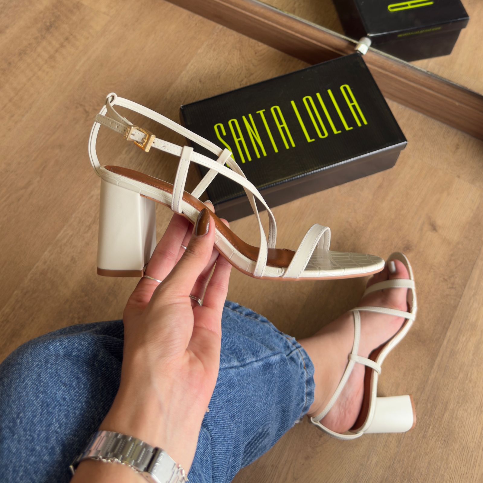 Sinta-se confiante e elegante com a Sandália Santa Lolla! Seu salto bloco médio garante conforto e estabilidade, enquanto seu design ousado e versátil adiciona um toque de estilo a qualquer look. Ideal para todas as ocasiões.