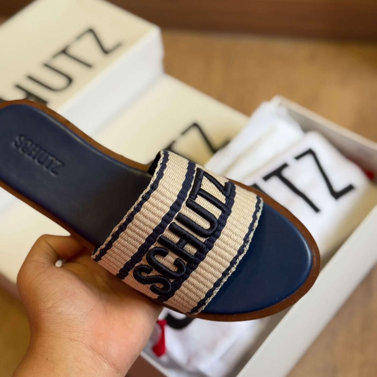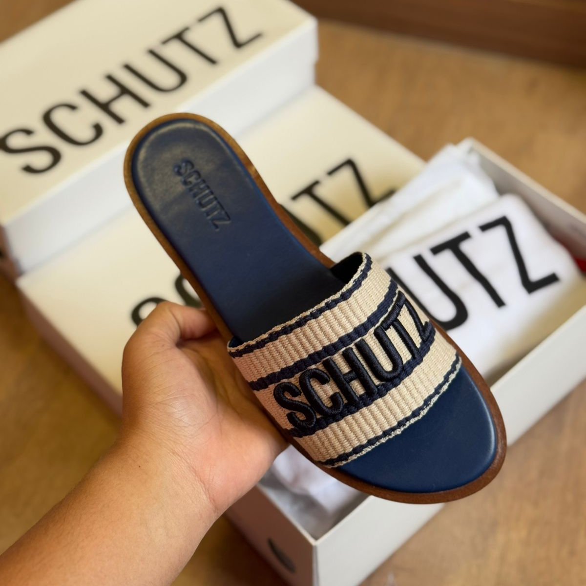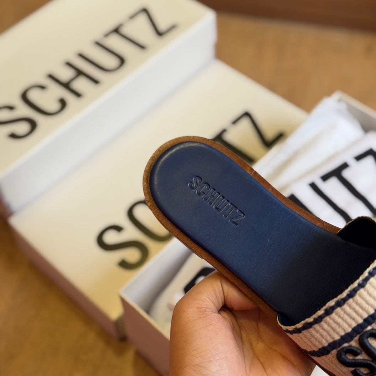 - Cabedal: Tecido bordado com o logo Schutz em destaque, oferecendo um toque de exclusividade e estilo.