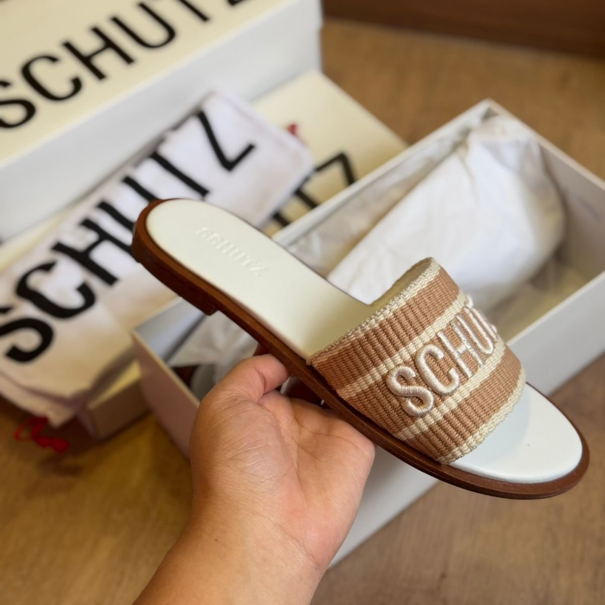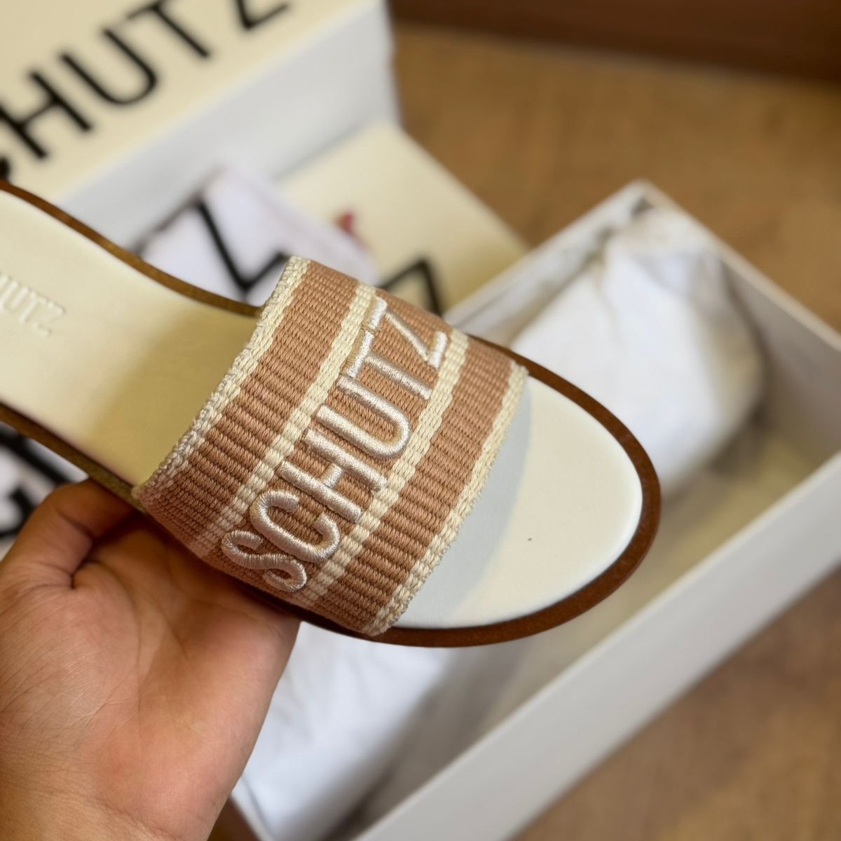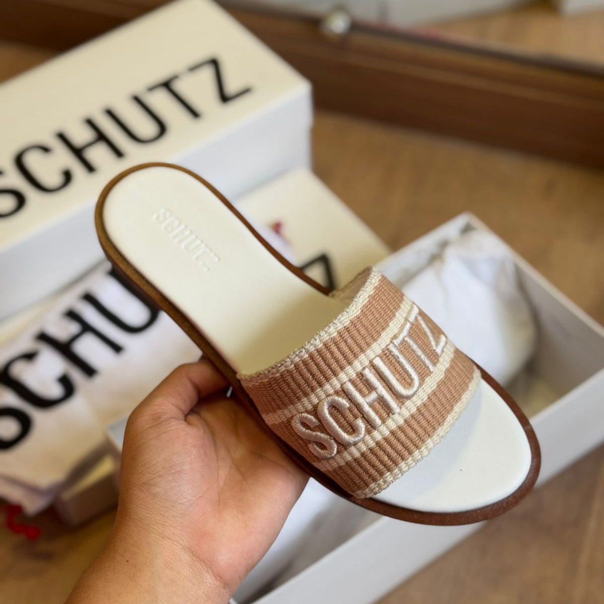 - Cabedal: Tecido bordado com o logo Schutz em destaque, oferecendo um toque de exclusividade e estilo.