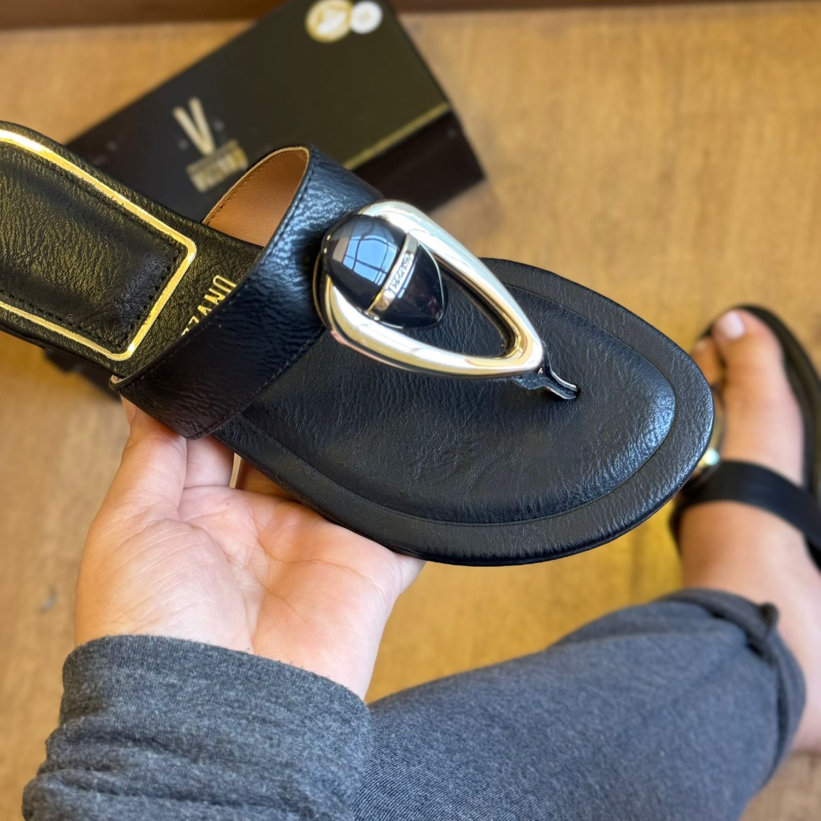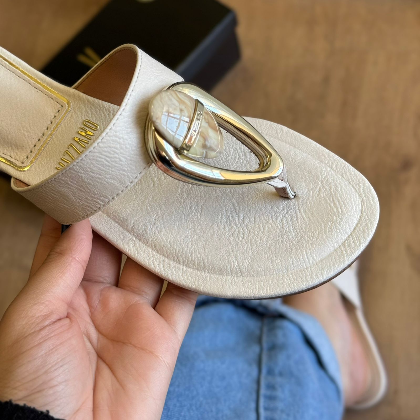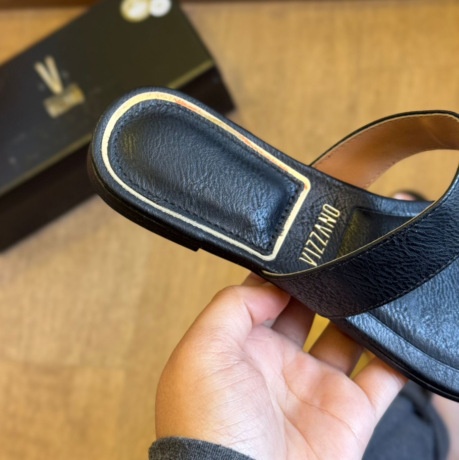 A Sandália Vizzano Mercúrio 6528.111 combina estilo e sofisticação em um design moderno e imponente. Com acabamento texturizado, tira larga e aplique metálico central em formato de gota, ela entrega personalidade e elegância em cada detalhe. A palmilha macia com detalhe dourado proporciona conforto e um toque refinado. Ideal para compor looks urbanos com charme e atitude nos dias mais quentes.