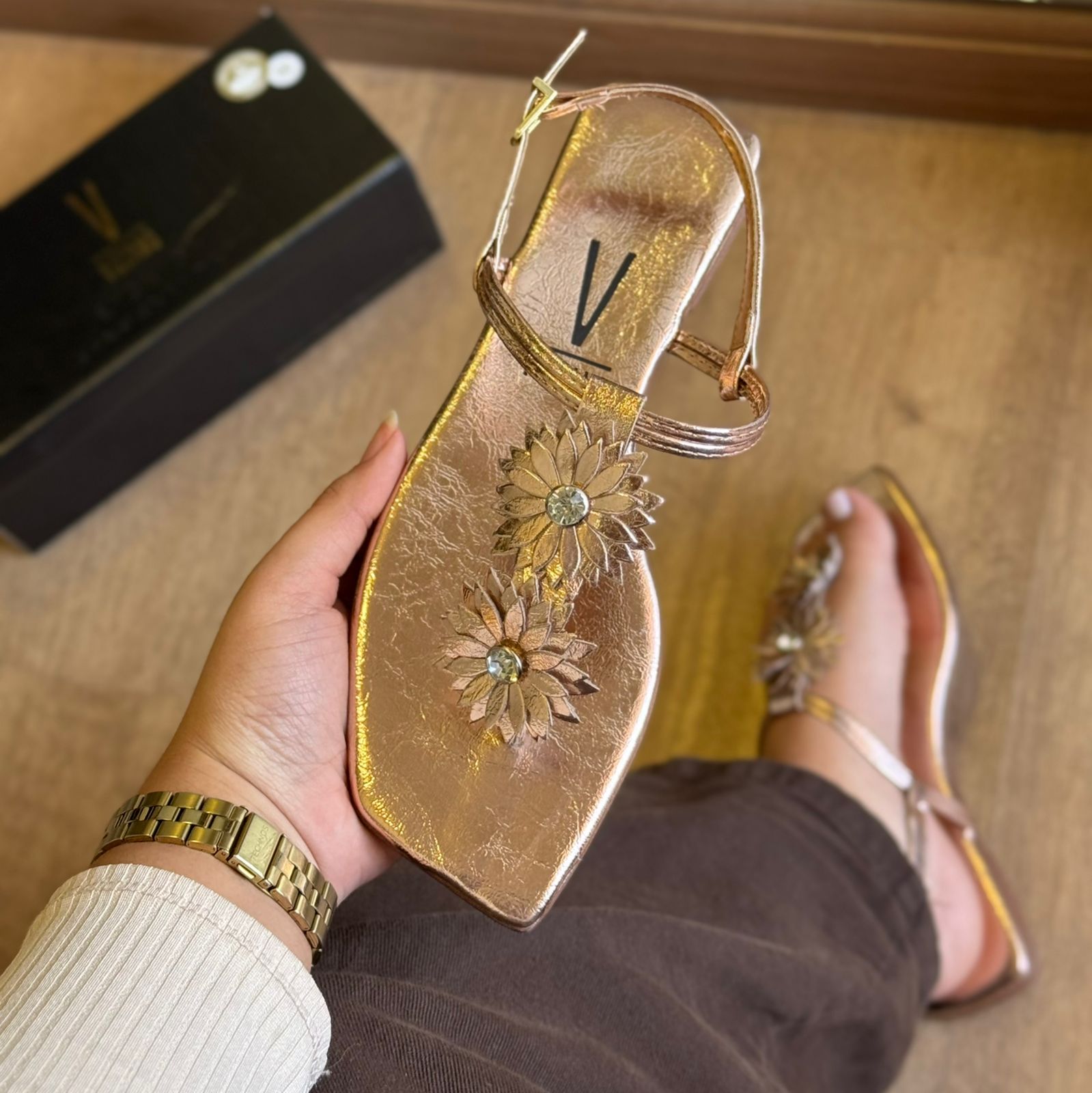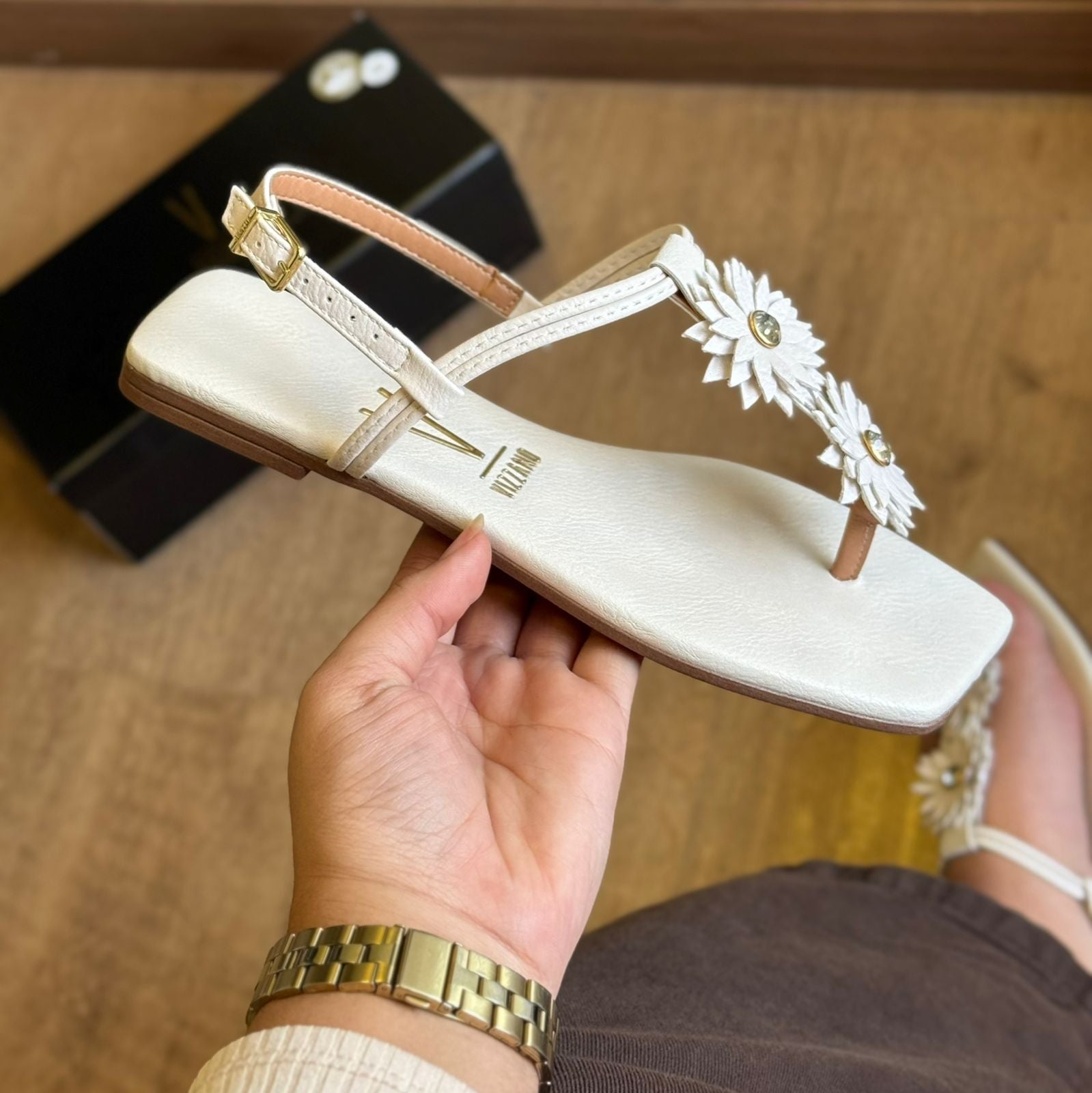 A Sandália Vizzano Rasteira Detalhe de Flor 6553.205 é puro charme e feminilidade! Com tiras delicadas e aplicação de flor no cabedal, ela adiciona um toque romântico e elegante ao look. Perfeita para os dias quentes, combina com vestidos leves, saias ou aquele jeans descomplicado. O design confortável e a palmilha macia garantem bem-estar o dia todo. Ideal para quem quer praticidade sem abrir mão do estilo nos detalhes.