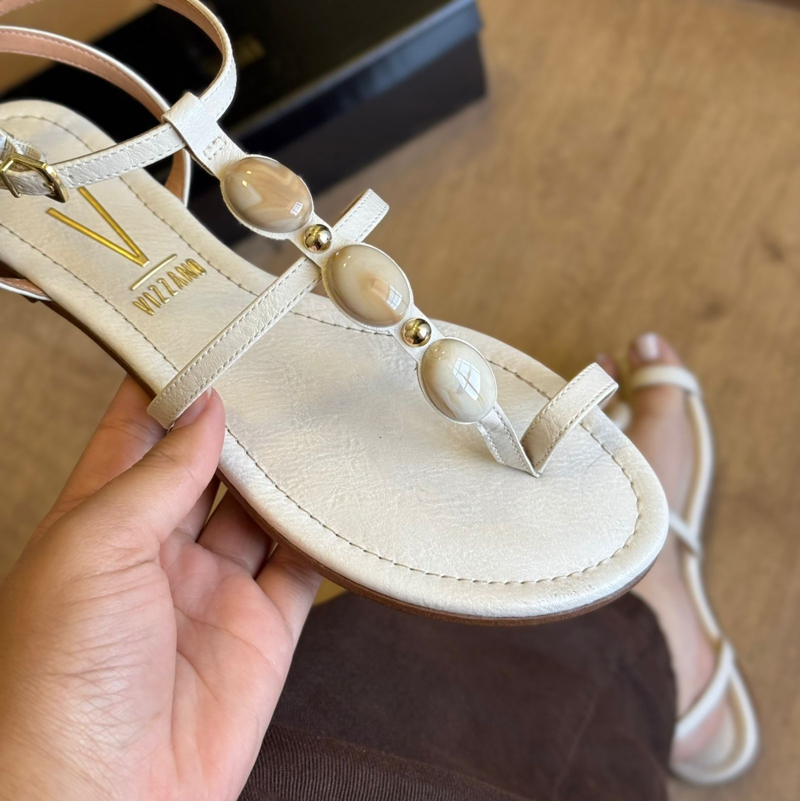 Sandália rasteira Vizzano com tiras finas que combinam conforto e elegância para o dia a dia. O design minimalista das tiras proporciona leveza visual, enquanto a sola rasteira oferece estabilidade e facilidade de uso. Ideal para quem busca um calçado versátil que transita entre looks casuais e mais refinados. Perfeita para primavera e verão, esta sandália é um essencial do guarda-roupa feminino.