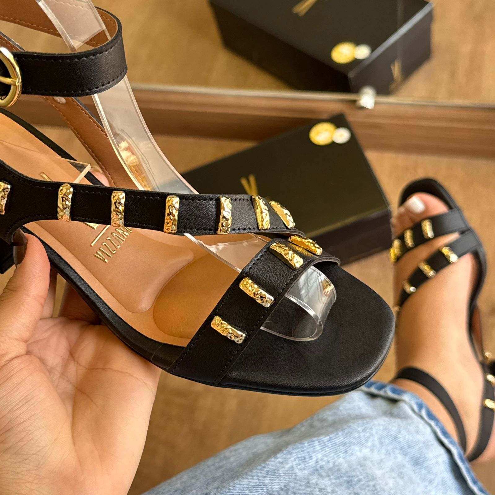 A sandália Vizzano é a escolha perfeita para quem busca unir elegância, conforto e versatilidade em um único calçado. Com design moderno e sofisticado, o modelo se destaca pelos delicados detalhes dourados que adicionam um toque de glamour e valorizam qualquer produção.