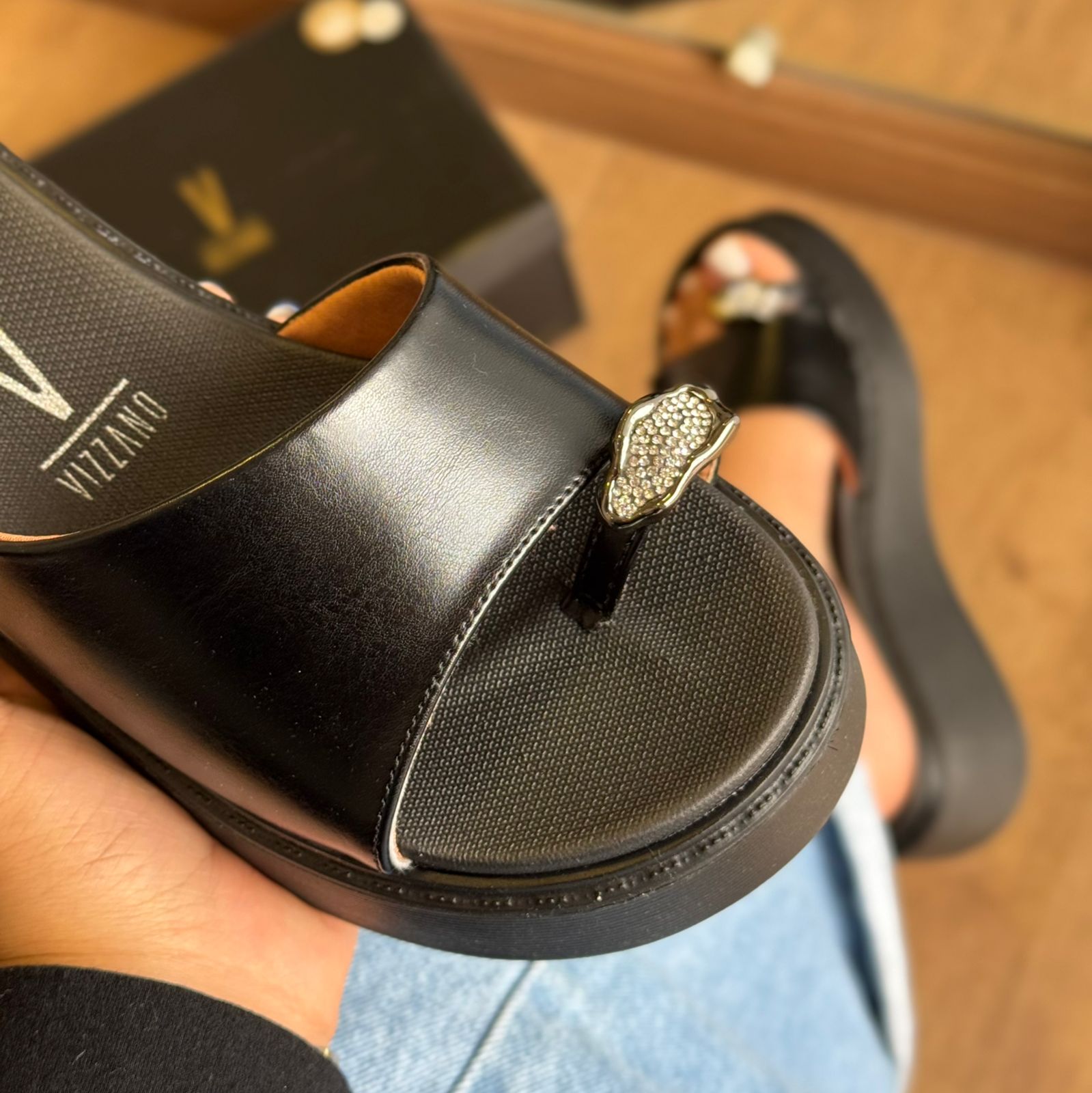 A tira de dedo (dedeira) contribui para um ajuste confortável aos pés e um visual delicado e moderno. O acabamento metalizado em prata adiciona um toque de brilho e sofisticação, ideal para compor produções elegantes em diversas ocasiões.