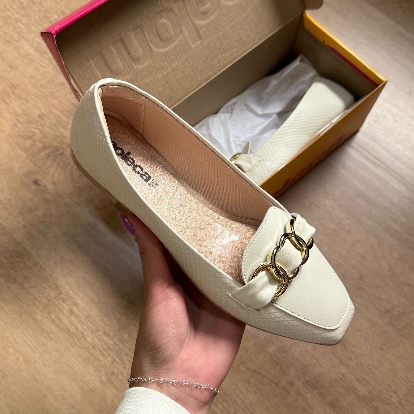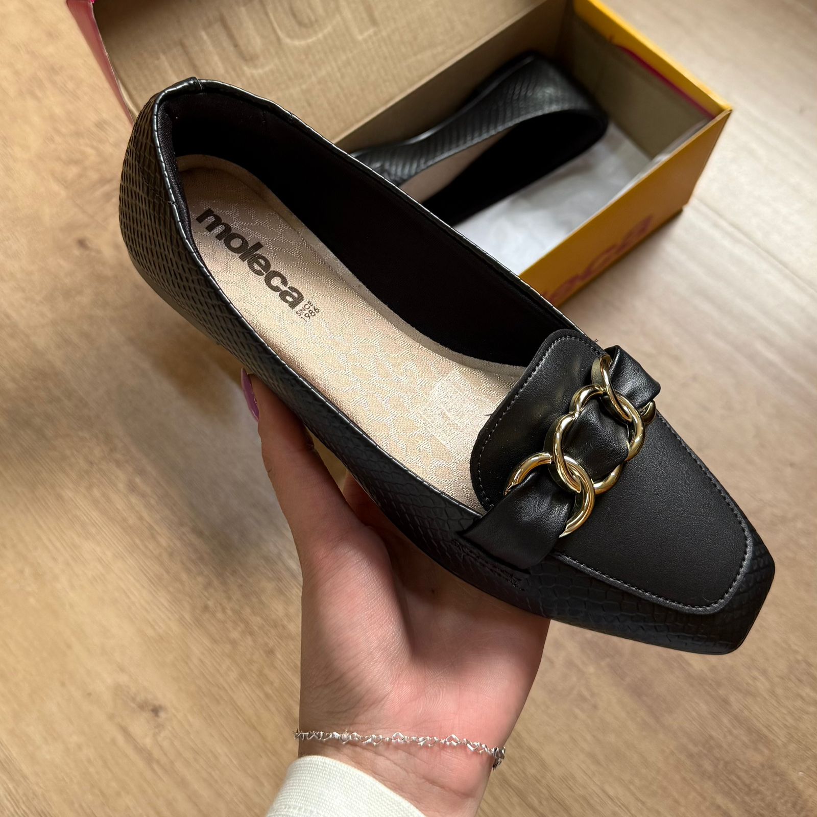 A Sapatilha Moleca Bico Quadrado 5824.106 é a escolha perfeita para quem busca praticidade sem abrir mão da elegância. Com bico quadrado moderno, ela traz um visual sofisticado e atual, ideal para o dia a dia ou produções mais arrumadinhas.