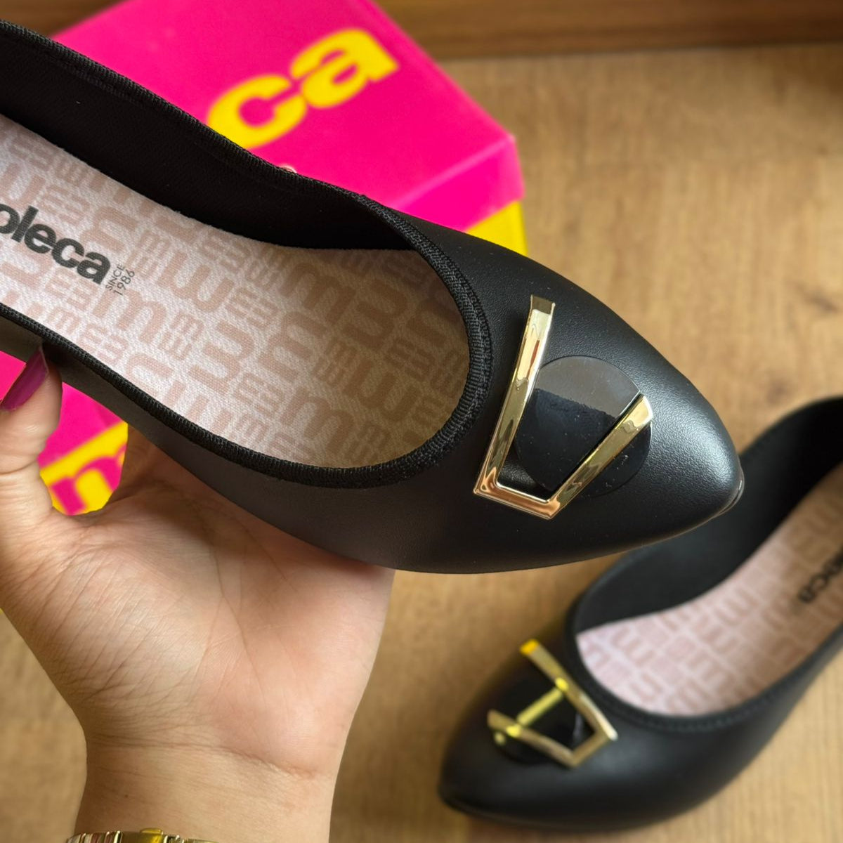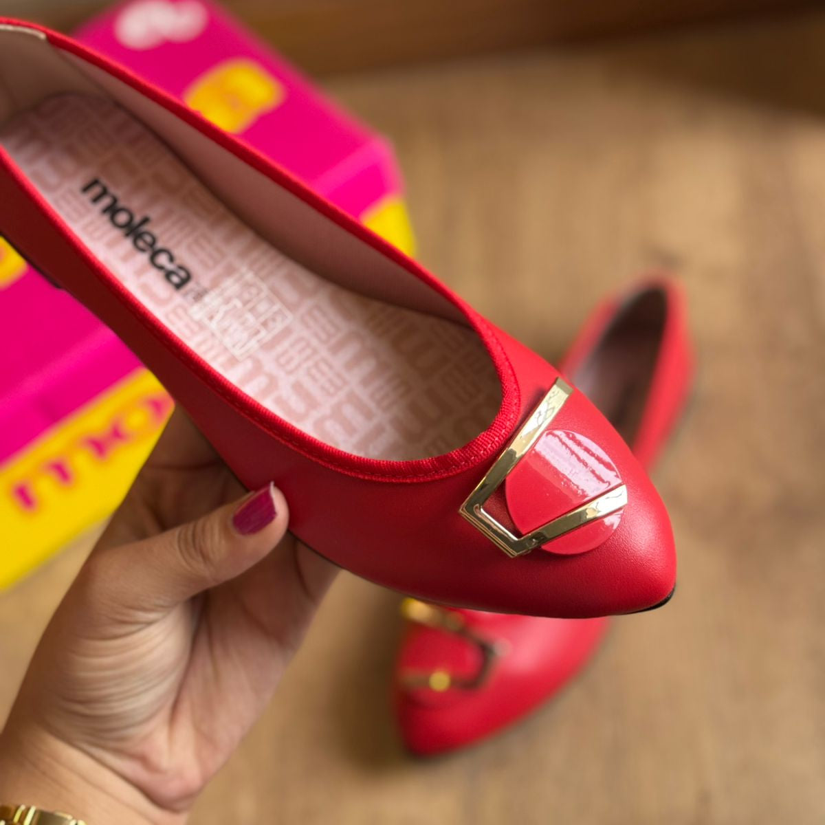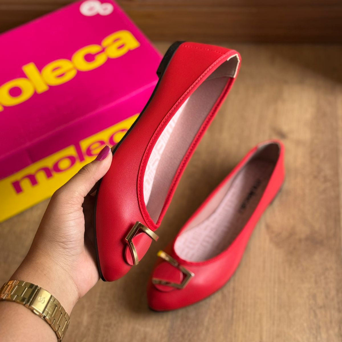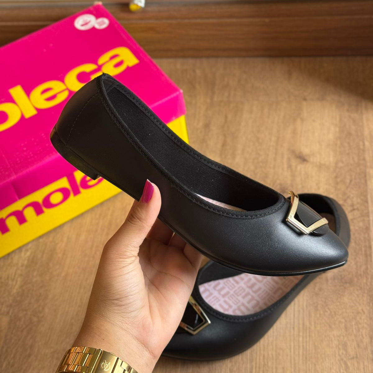 A Sapatilha Feminina Moleca é pura elegância e estilo, sendo o calçado ideal para qualquer ocasião. Apresenta bico fino e detalhe de fivela na parte superior, o que deixa o modelo mais clássico e elegante. Sua palmilha é super macia, dando conforto aos seus pés, e seu solado tem 1 cm de altura e possui frisos antiderrapantes.