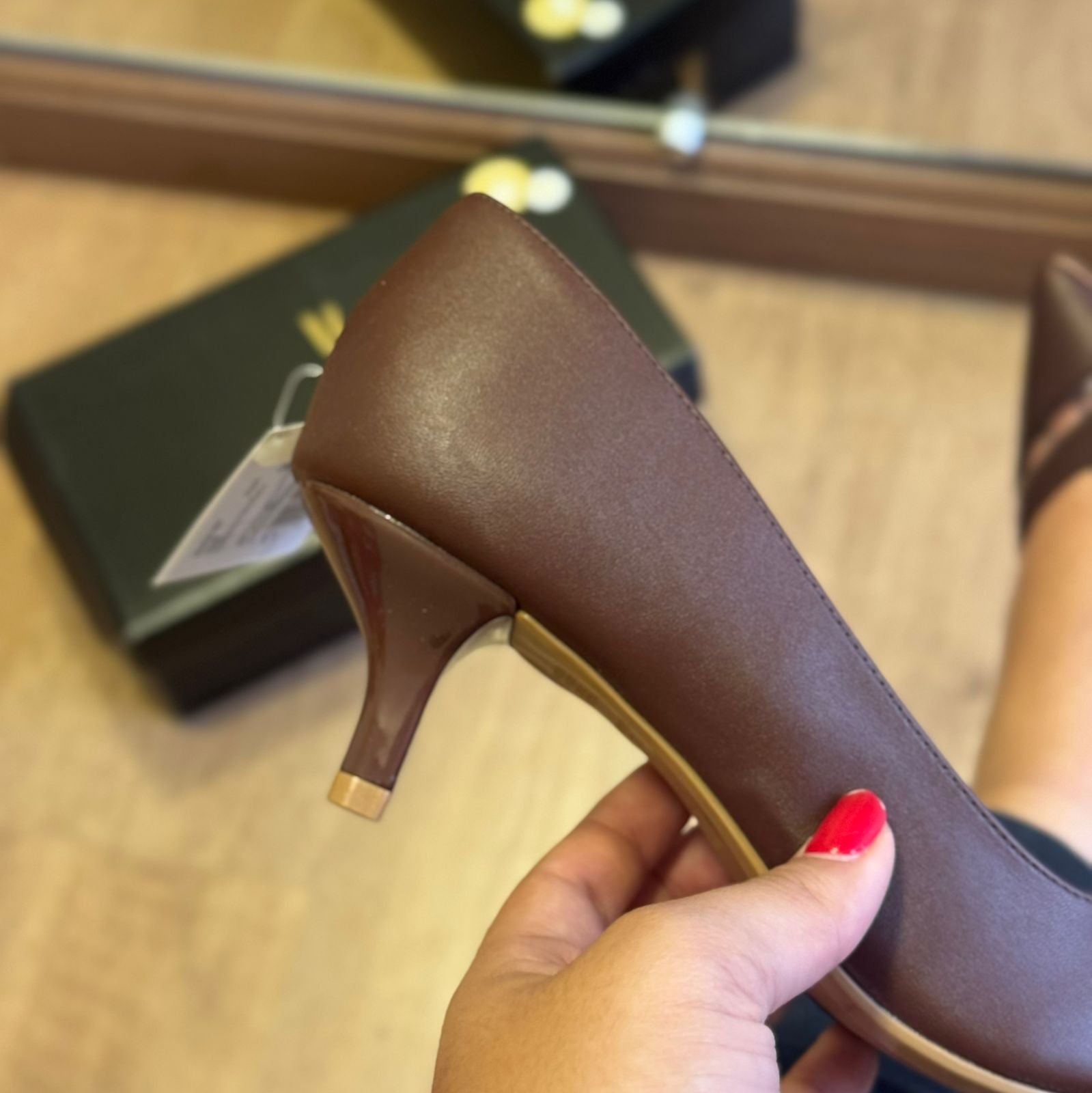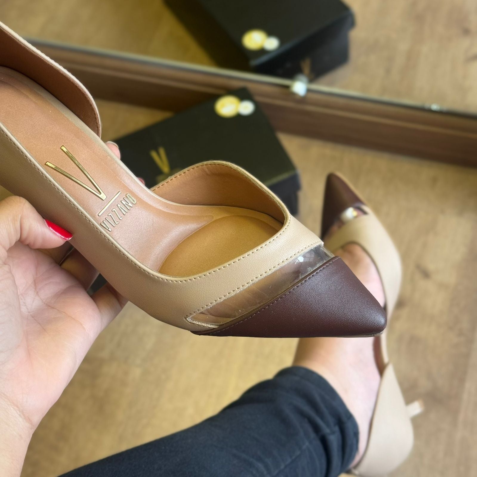 Scarpin Vizzano com salto baixo e tira transparente, modelo 1122.896 que combina sofisticação com versatilidade. A tira translúcida cria um efeito visual elegante, alongando visualmente a silhueta do pé. Com salto de aproximadamente 4cm, proporciona conforto para uso prolongado mantendo a postura adequada. Ideal para profissionais que desejam um calçado refinado e funcional para o dia a dia ou eventos especiais.
