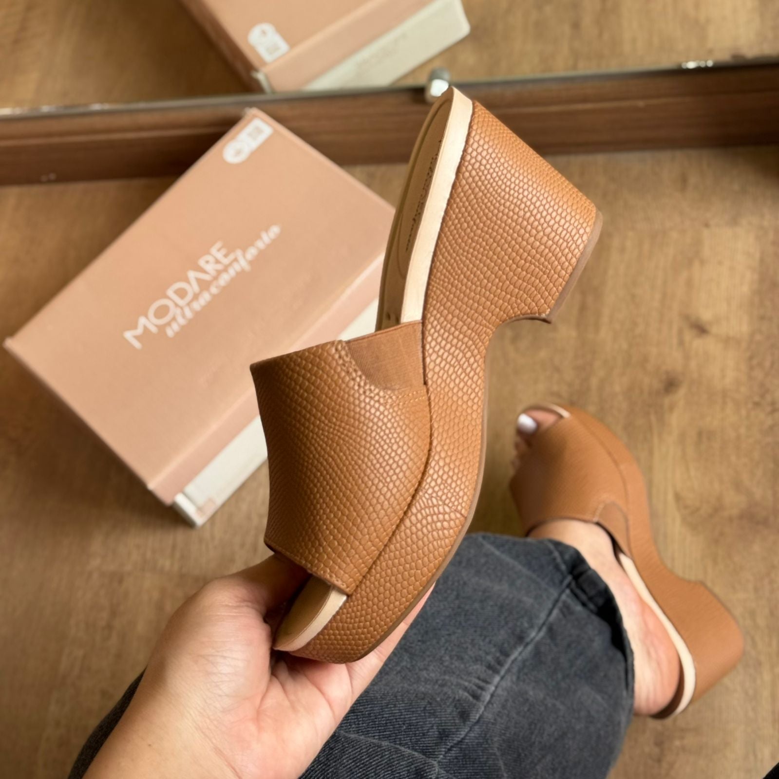 O Tamanco Modare MDF Moderno 7137.123 é a combinação perfeita entre conforto e estilo. Com salto anabela que imita cortiça, proporciona um visual contemporâneo e leve. O cabedal fechado garante mais segurança aos pés, enquanto a palmilha macia com tecnologia Modare entrega bem-estar durante todo o dia. Ideal para compor looks casuais com um toque moderno e elegante.