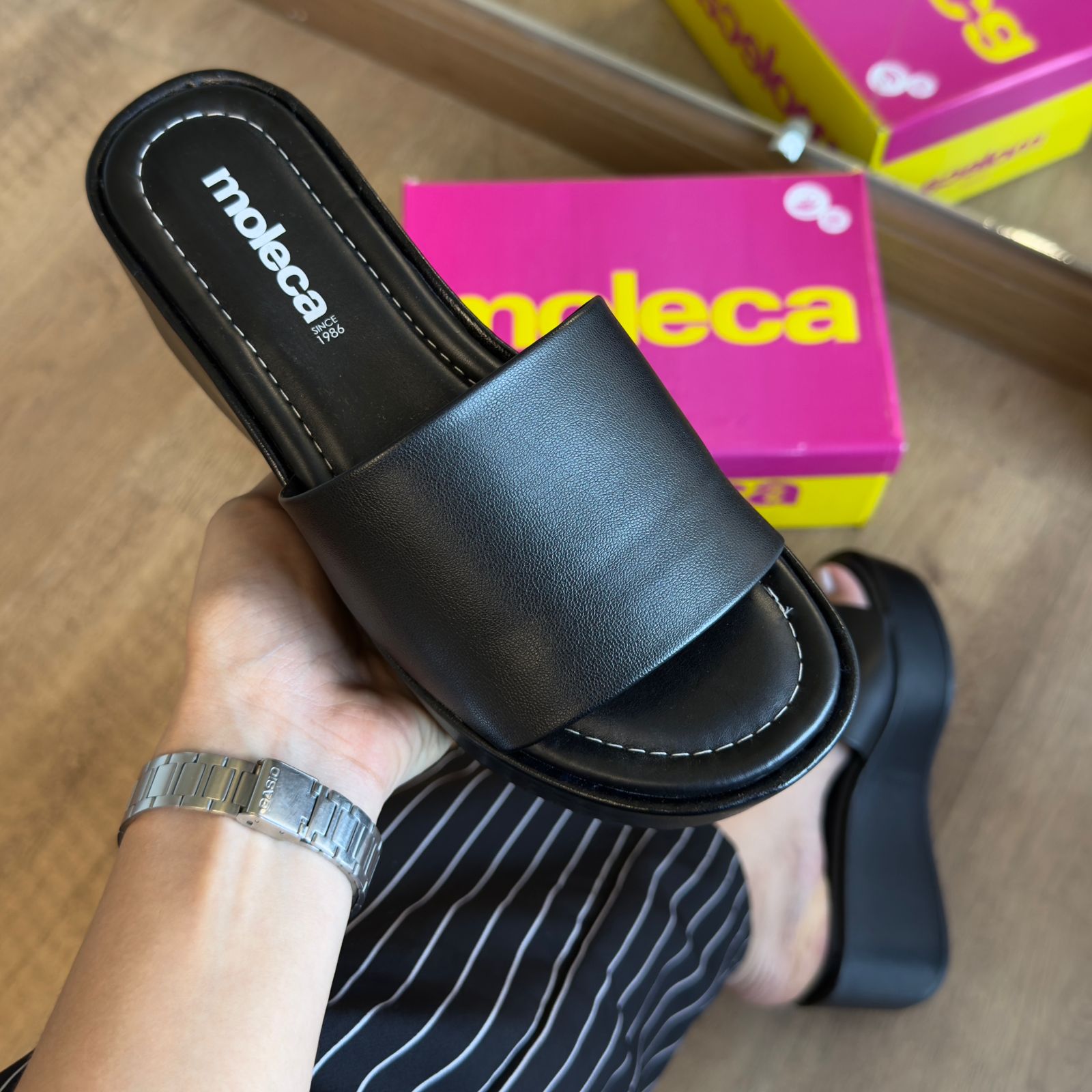 O Tamanco Moleca Anabela é a escolha perfeita para mulheres que buscam unir conforto, praticidade e um toque moderno no visual. Com design atual e versátil, ele é ideal para compor looks casuais com muito charme.