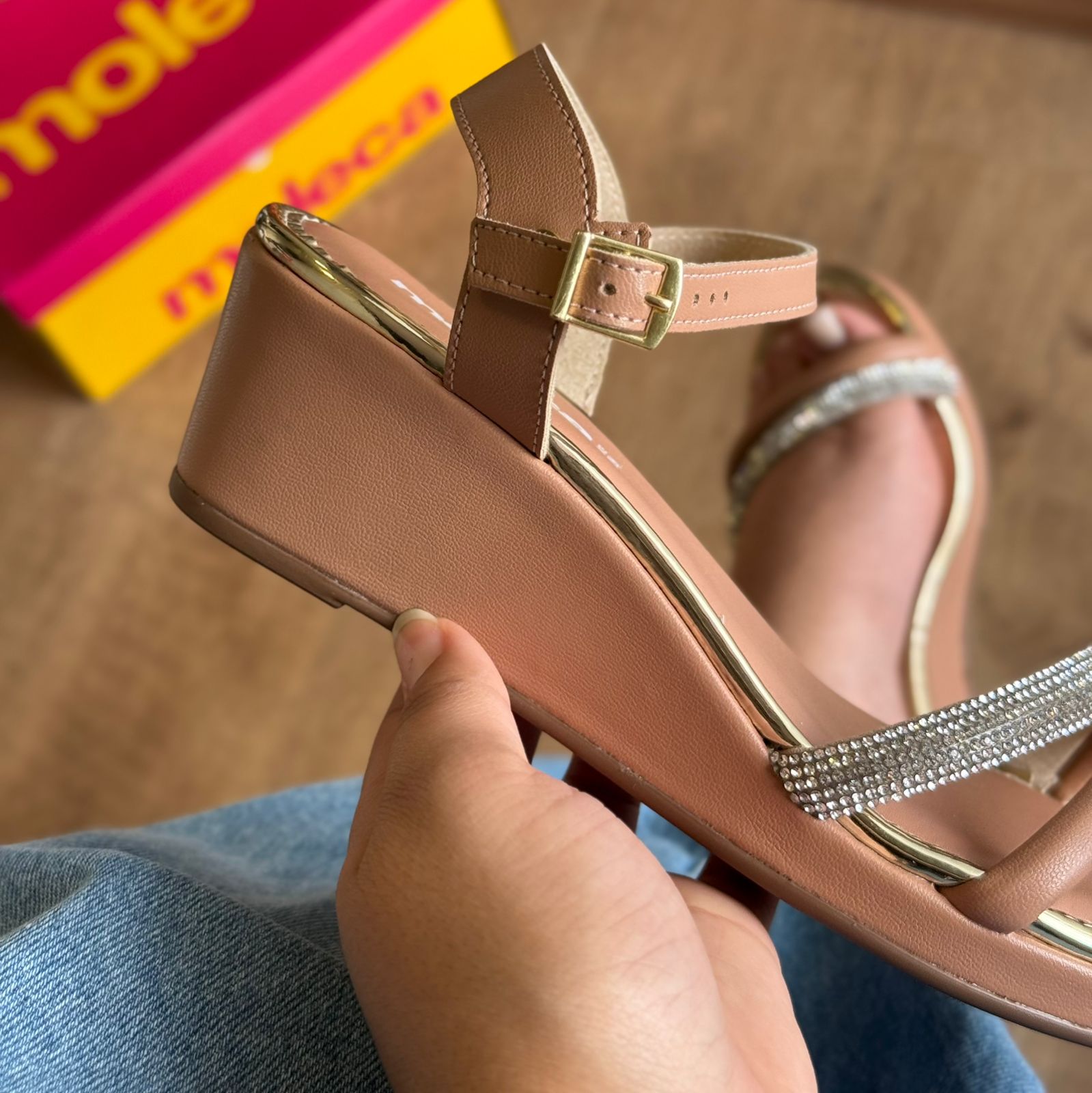 Tamanco Moleca com tira em strass que combina conforto e elegância. O design sofisticado dos cristais brilhantes transforma um clássico em peça de destaque, perfeita para quem busca estilo sem abrir mão da praticidade. Ideal para o dia a dia com um toque de glamour que faz toda a diferença.