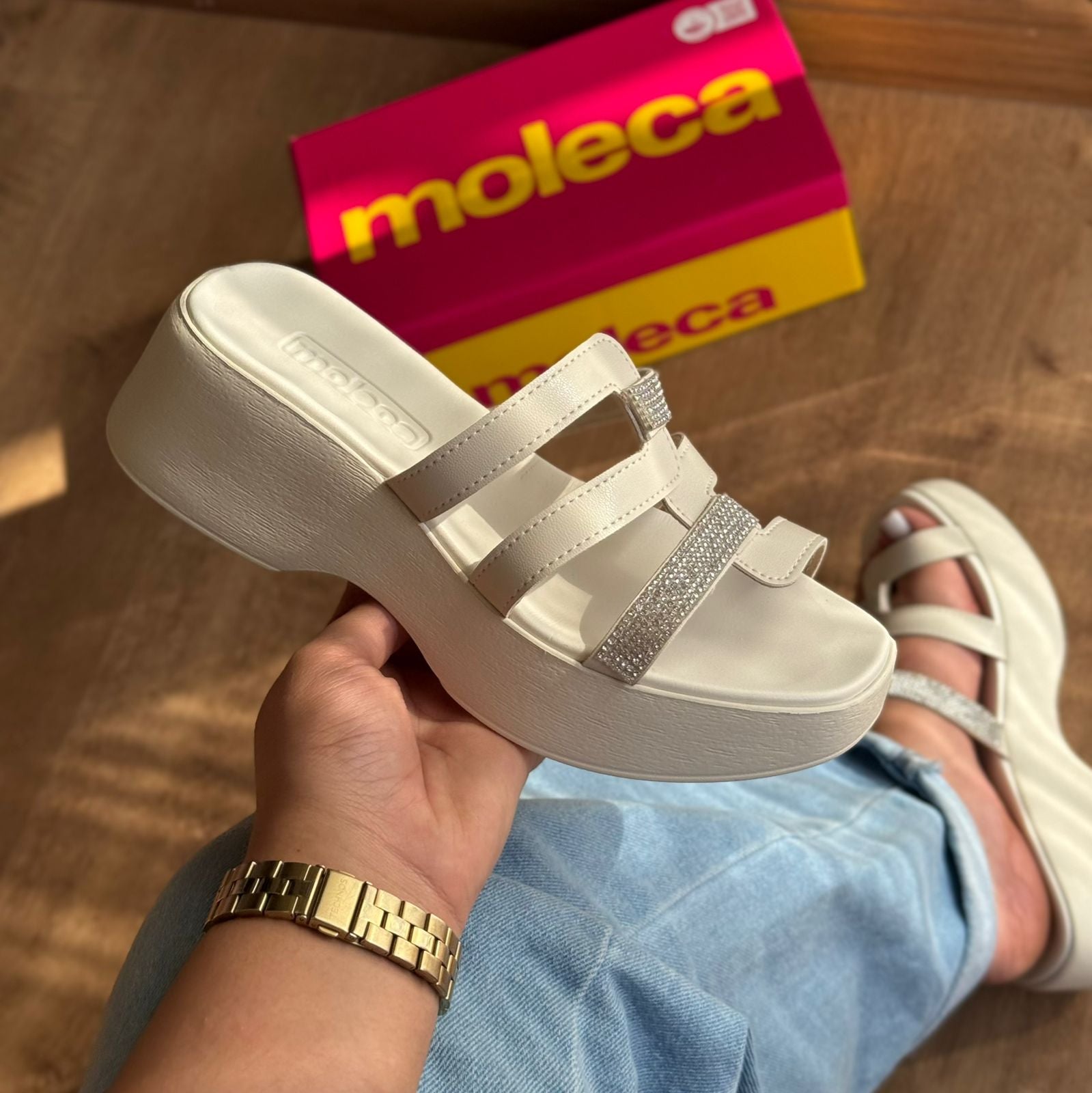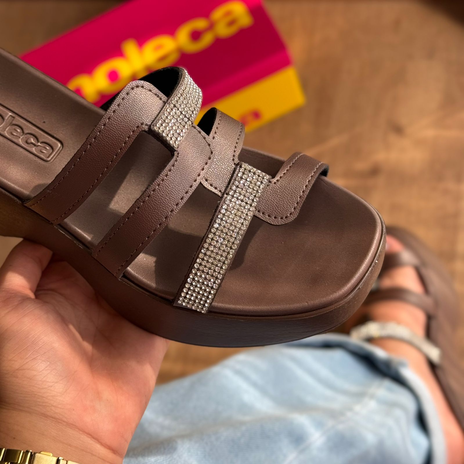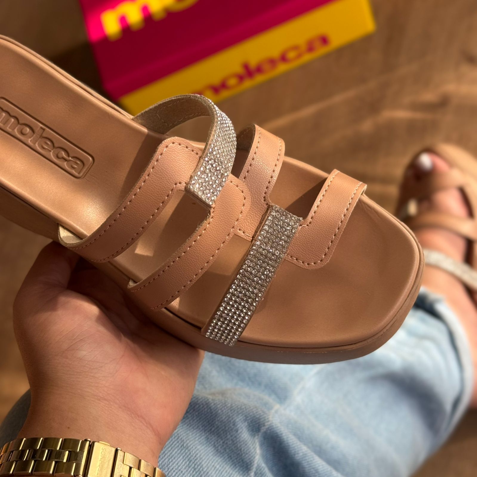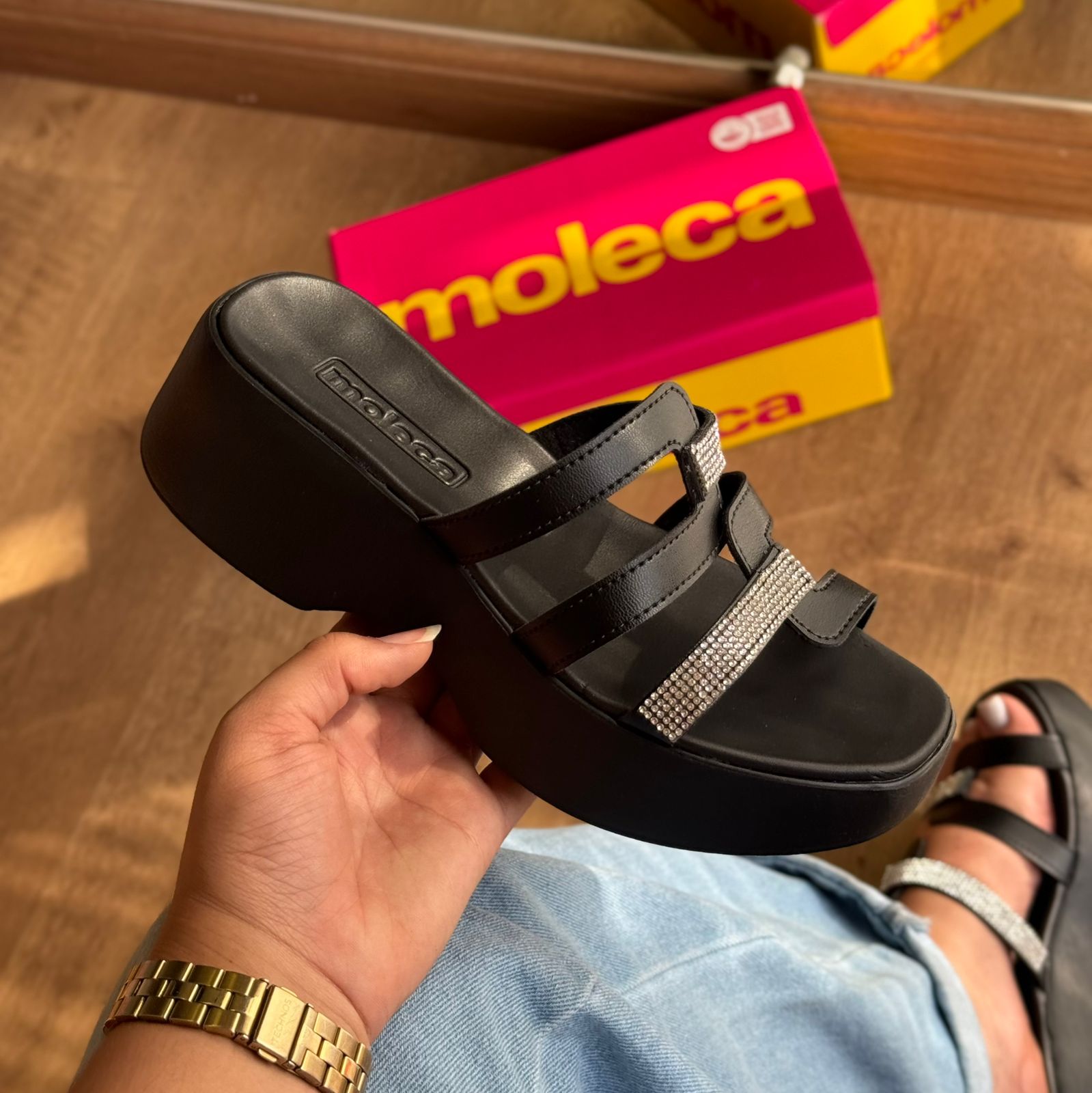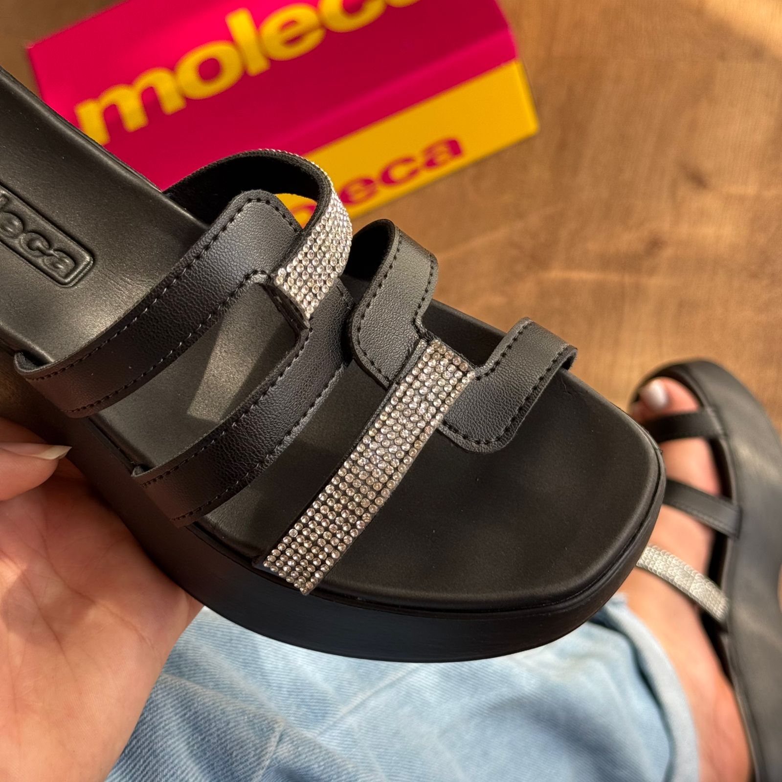 Sofisticado e confortável, o Tamanco Moleca Tiras Em Strass é perfeito para mulheres que não abrem mão do estilo. Com acabamento em strass e tira única, garante um toque de brilho e praticidade ao seu dia a dia. Adicione elegância aos seus looks com esse sapato.