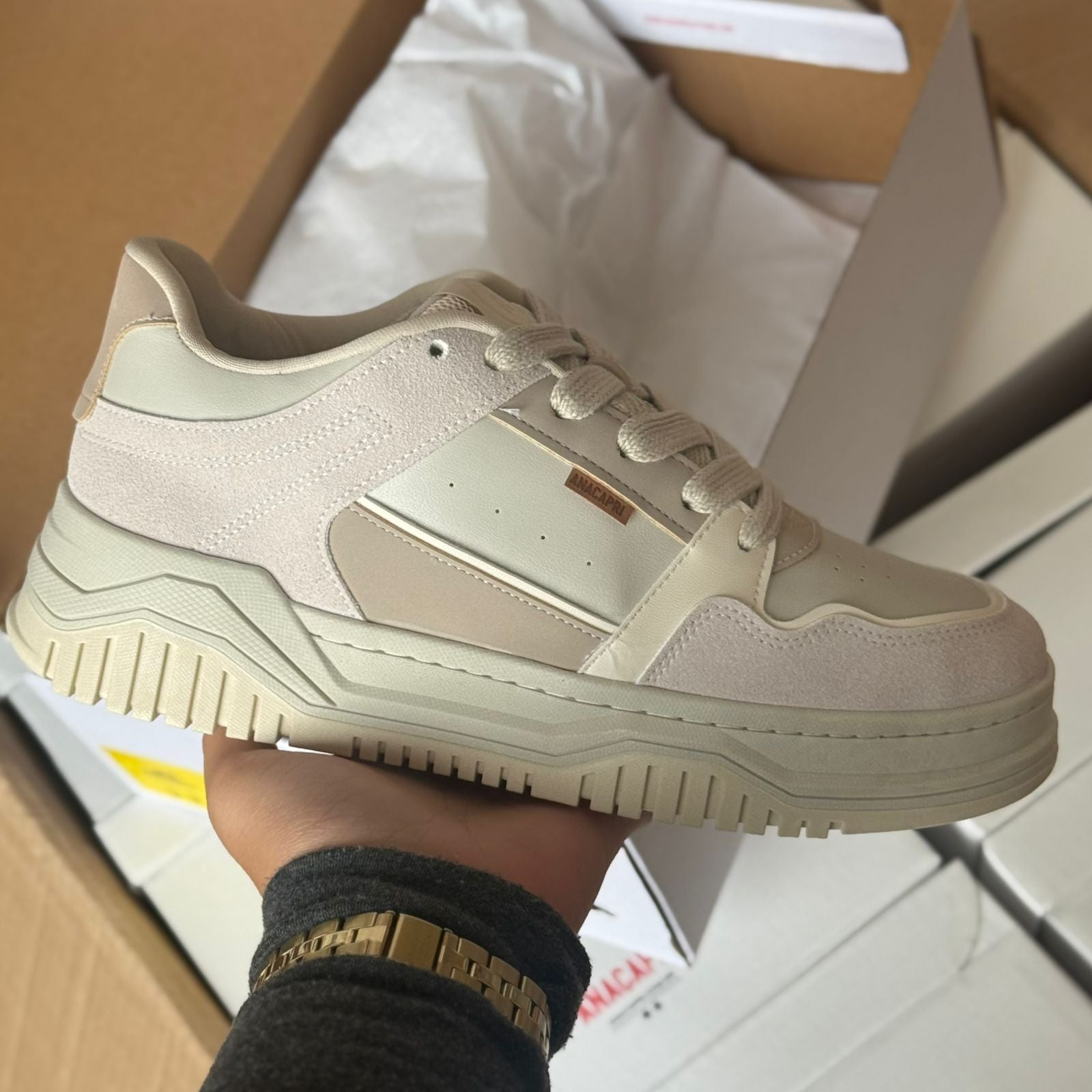 O Tênis Ana Capri Urban Explorer foi feito para quem busca estilo, conforto e versatilidade no dia a dia. Com design clean, costuras detalhadas e solado emborrachado de excelente aderência, é o acessório ideal para quem transita entre ambientes urbanos sem perder o charme. Sua estrutura leve e moderna se encaixa perfeitamente em produções casuais, sendo a escolha perfeita para quem valoriza autenticidade com um toque minimalista.