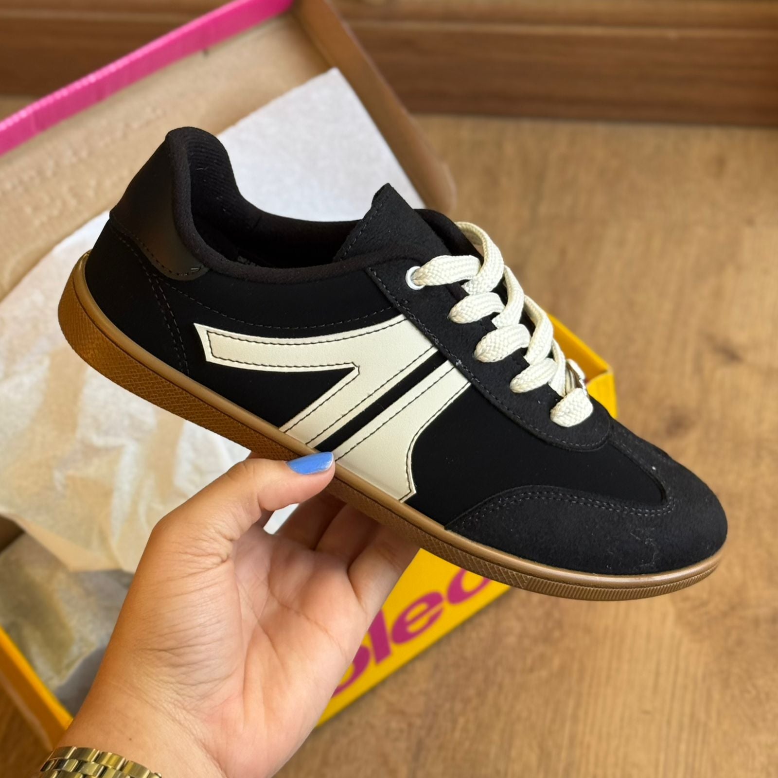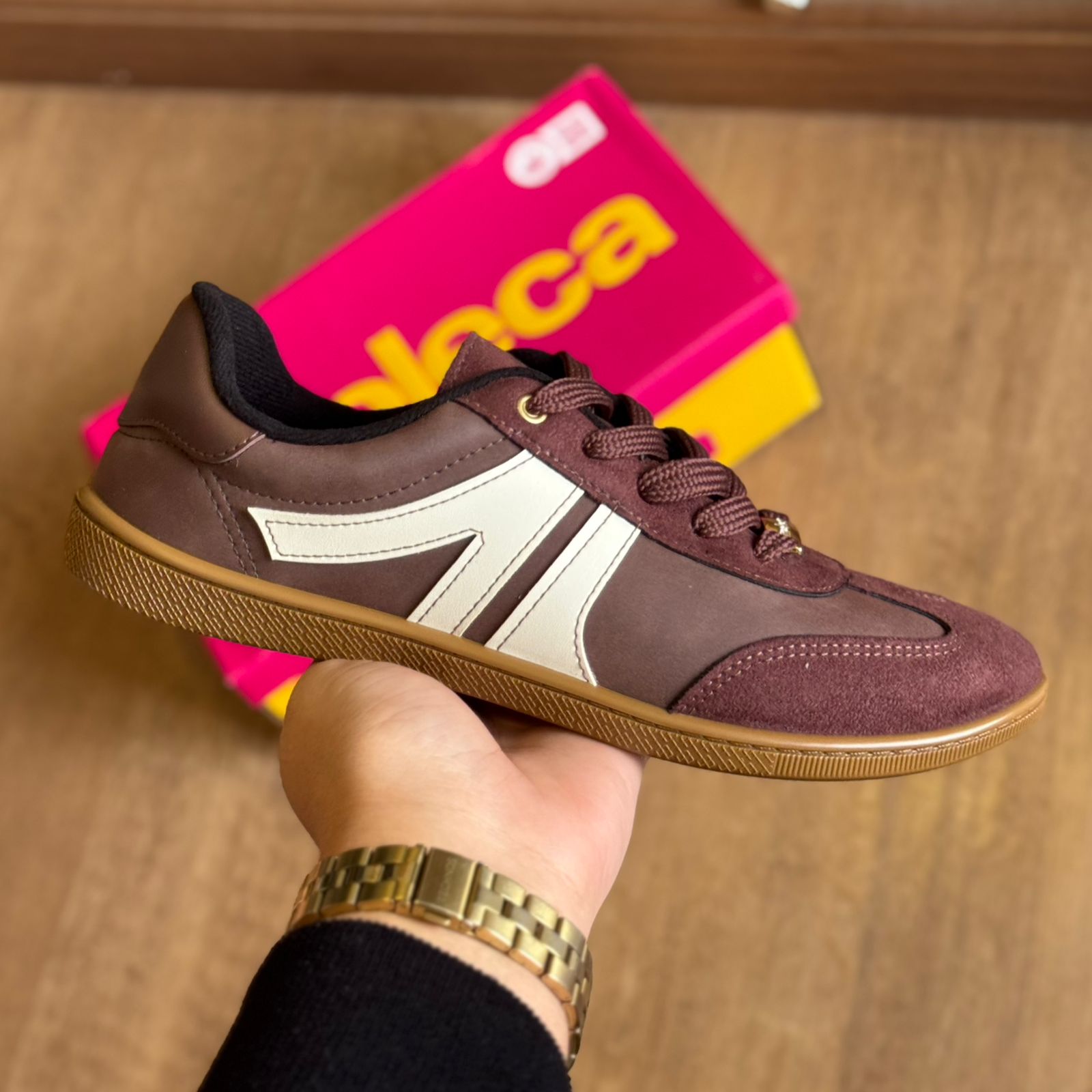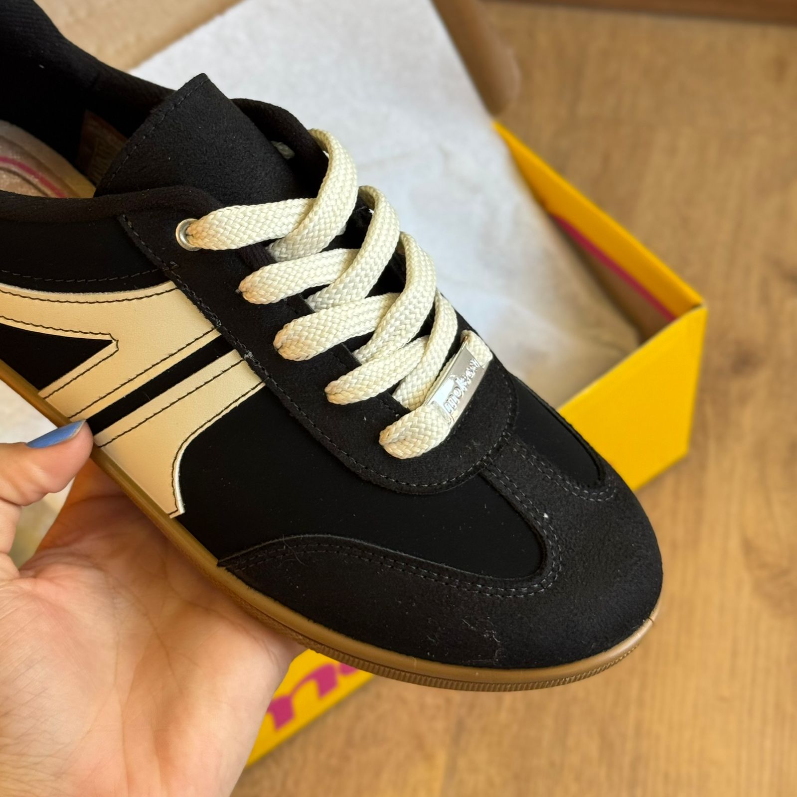 O Tênis Moleca Casual Parábola 5605.472 traz o equilíbrio perfeito entre estilo urbano e conforto. Com design minimalista e elegante, apresenta cabedal em tom neutro, com mistura de materiais que adiciona sofisticação ao visual. O detalhe de costuras aparentes e o solado em borracha caramelo proporcionam um toque retrô e despojado ao mesmo tempo. Ideal para acompanhar desde looks casuais até produções mais modernas, é o calçado certo para quem busca versatilidade, leveza e autenticidade no dia a dia.