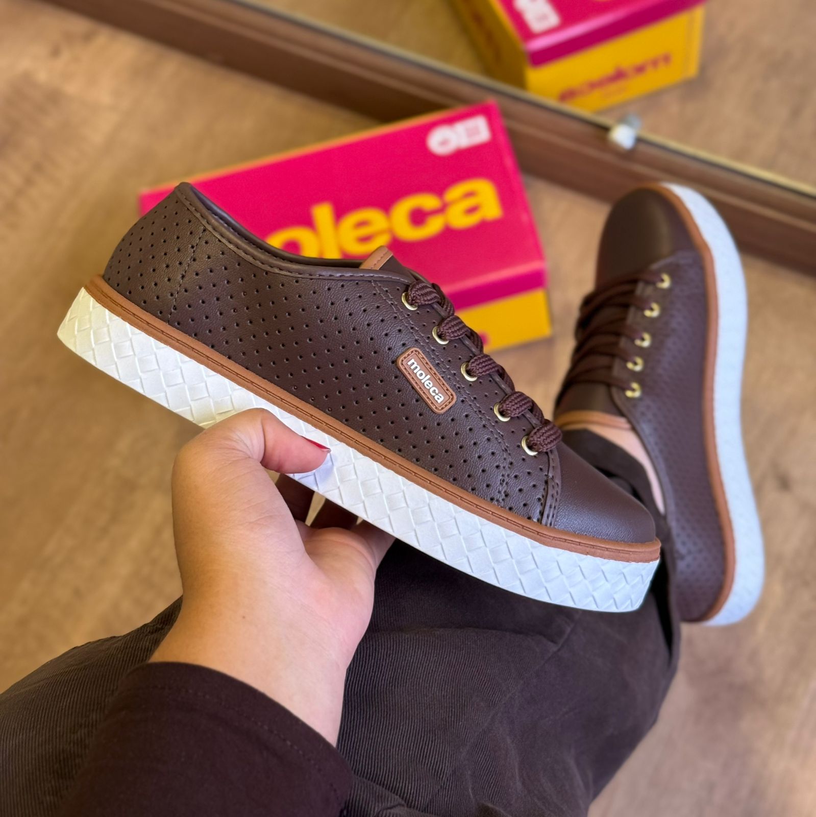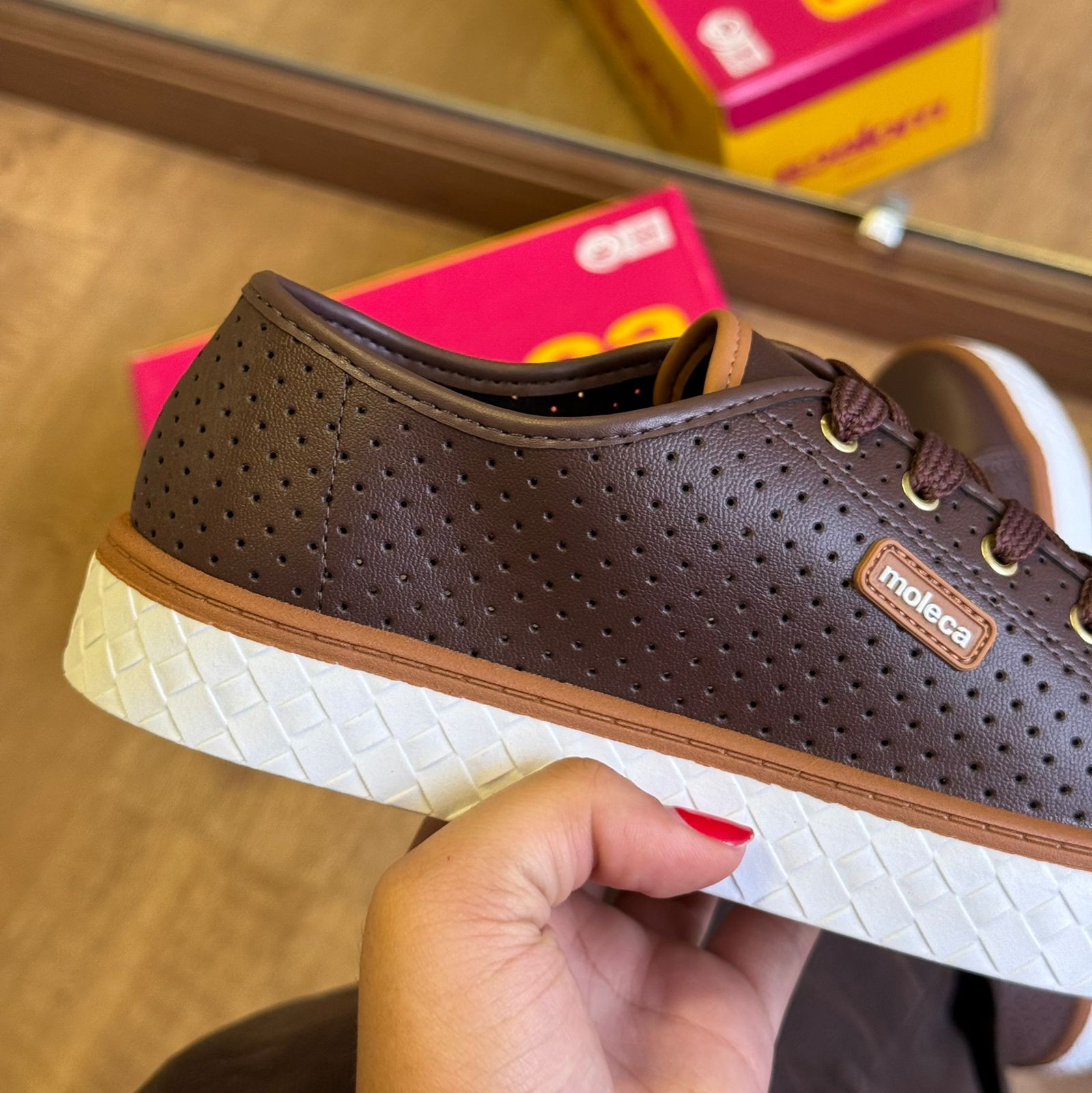 O Tênis Moleca Perfuros é a combinação perfeita de estilo e conforto. Com detalhes perfurados, ele garante maior respirabilidade para os seus pés enquanto você caminha com elegância. A palmilha macia e o solado flexível proporcionam o máximo de conforto e durabilidade. Adicione um toque de sofisticação ao seu look com o Tênis Moleca Perfuros.