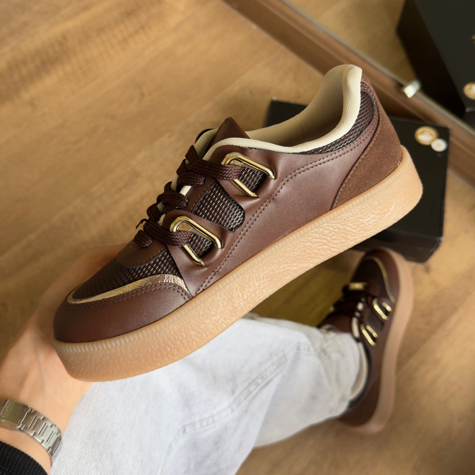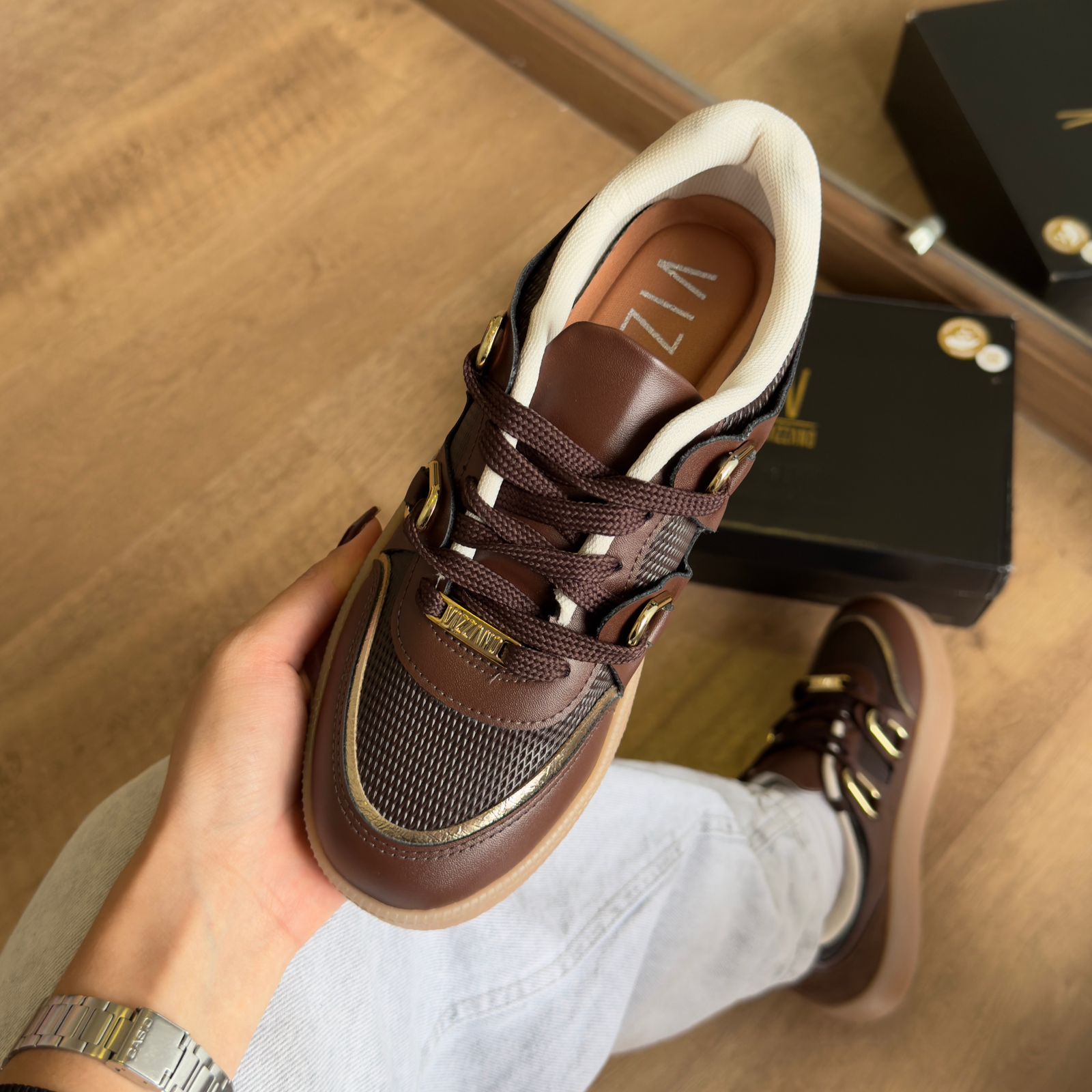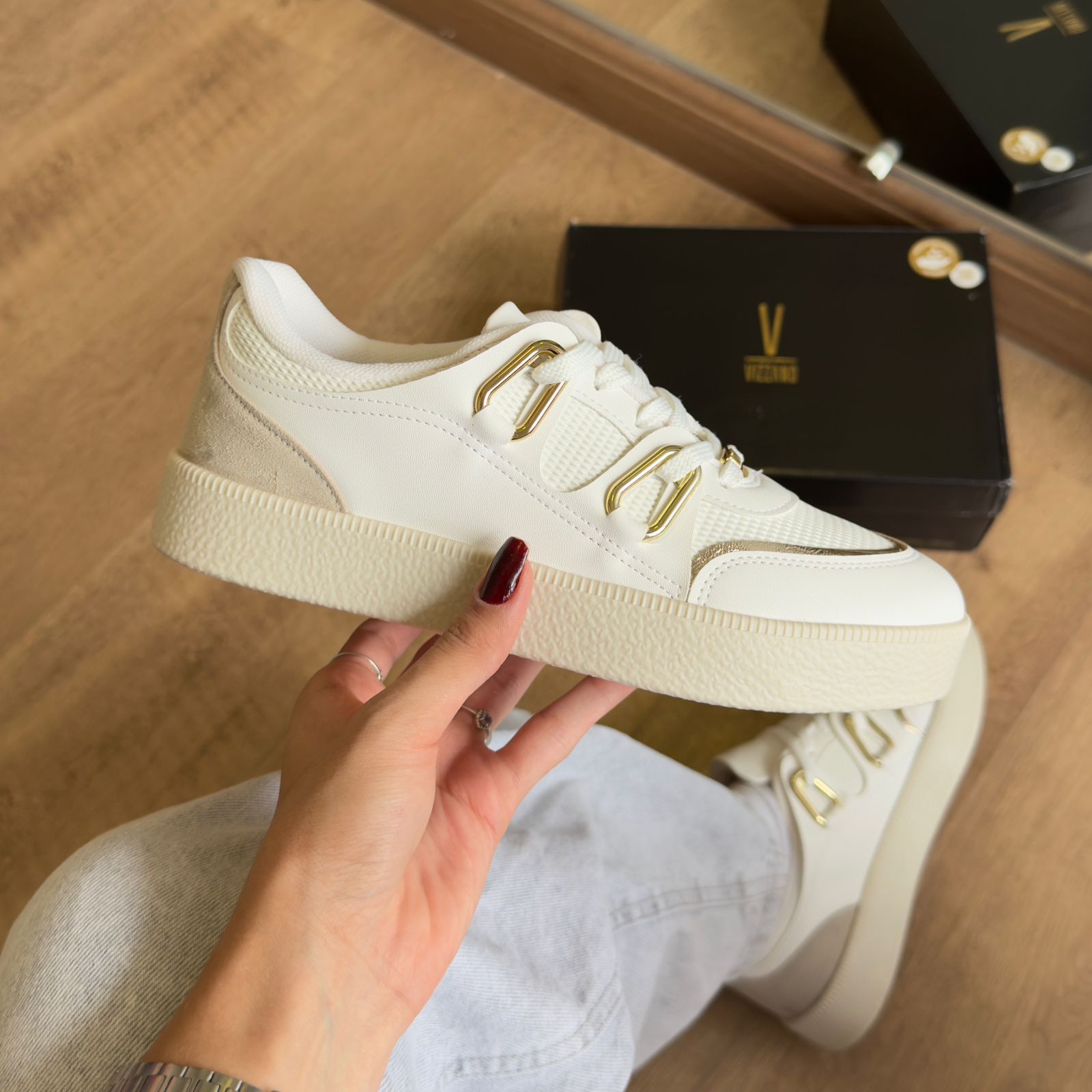 Tênis Vizzano com acabamento sofisticado em detalhe dourado. O modelo combinando estilo contemporâneo com conforto, este calçado é ideal para quem busca elegância no dia a dia. O detalhe dourado adiciona um toque de refinamento, tornando-o versátil para diferentes ocasiões. Perfeito para complementar looks casuais ou mais elaborados com personalidade e distinção.